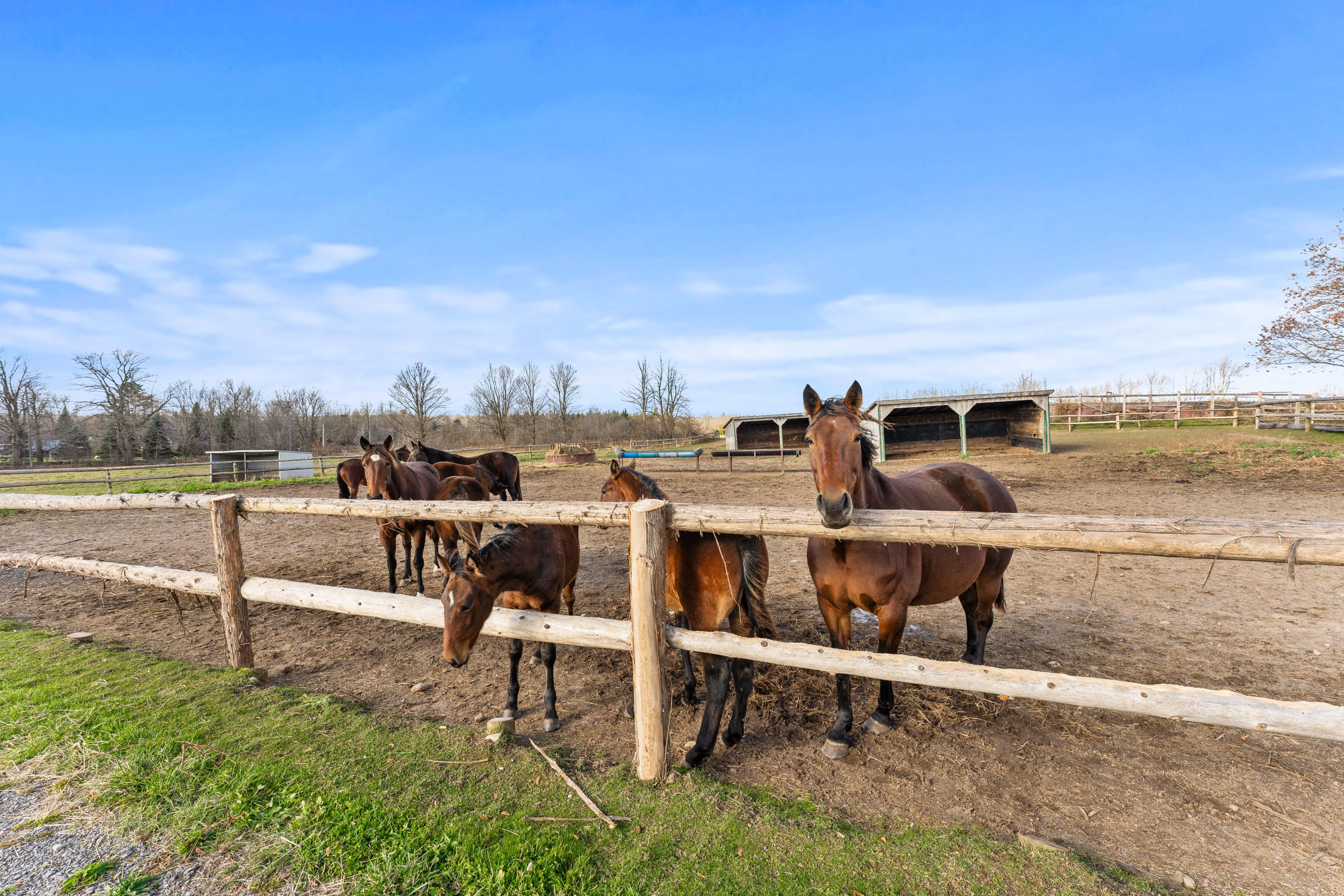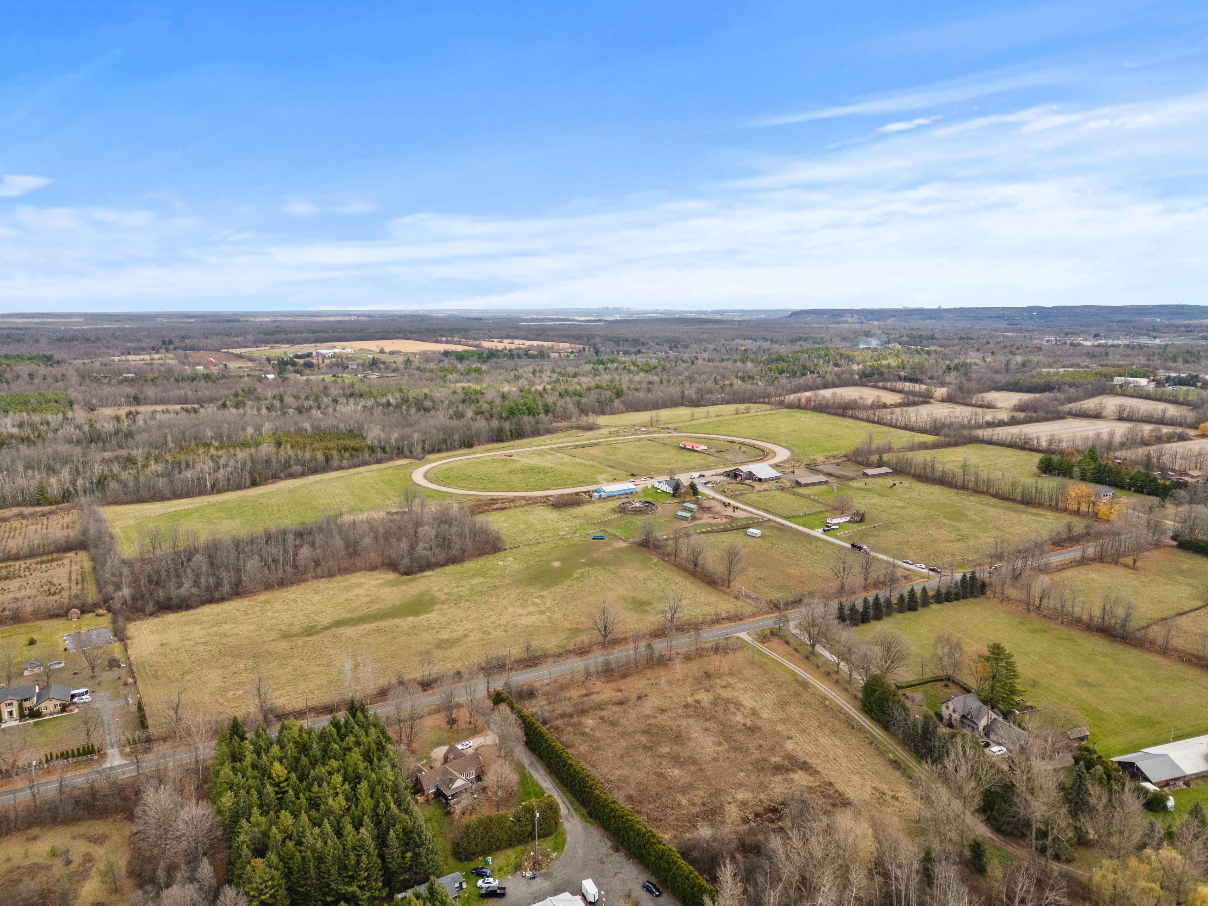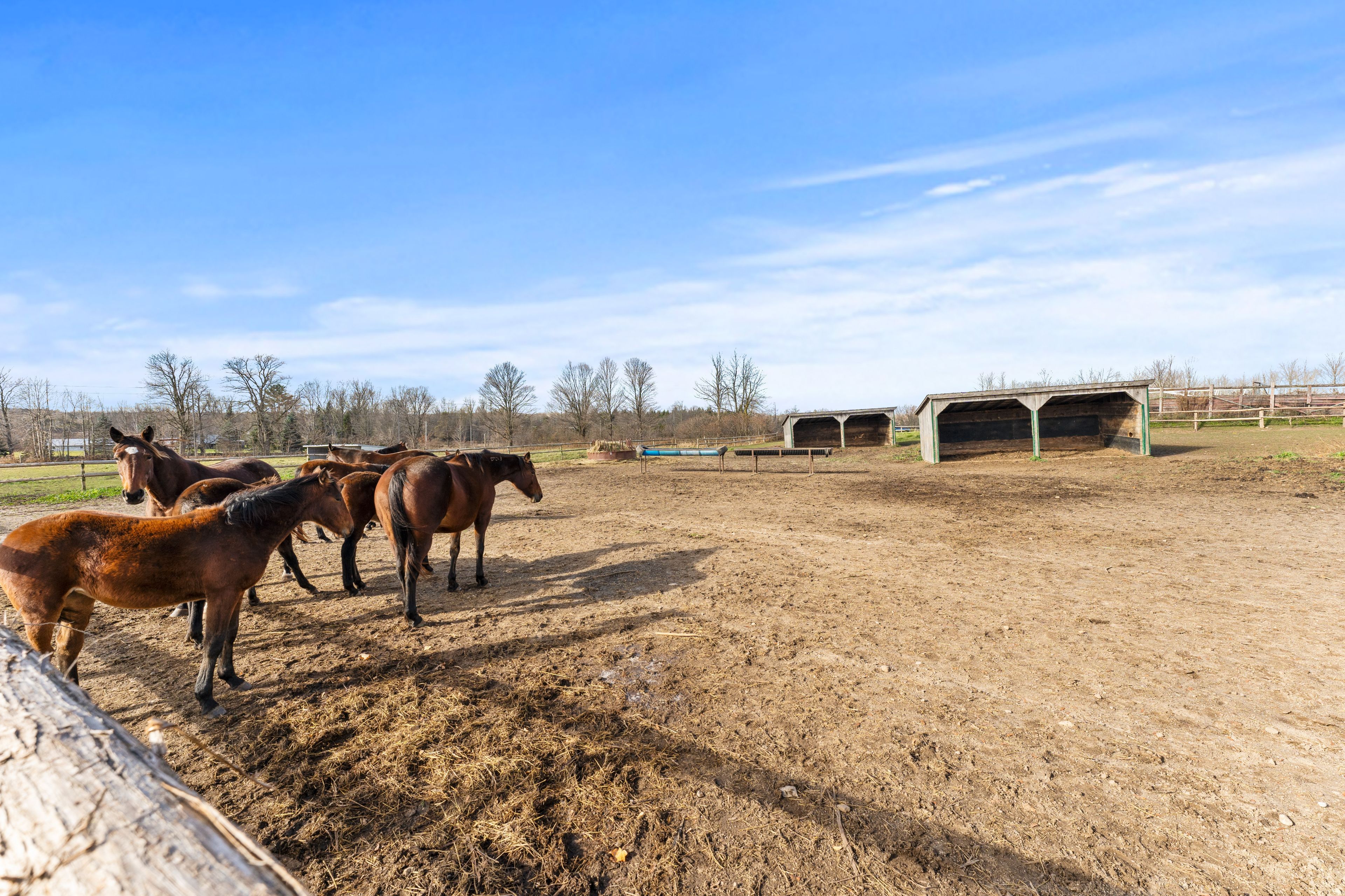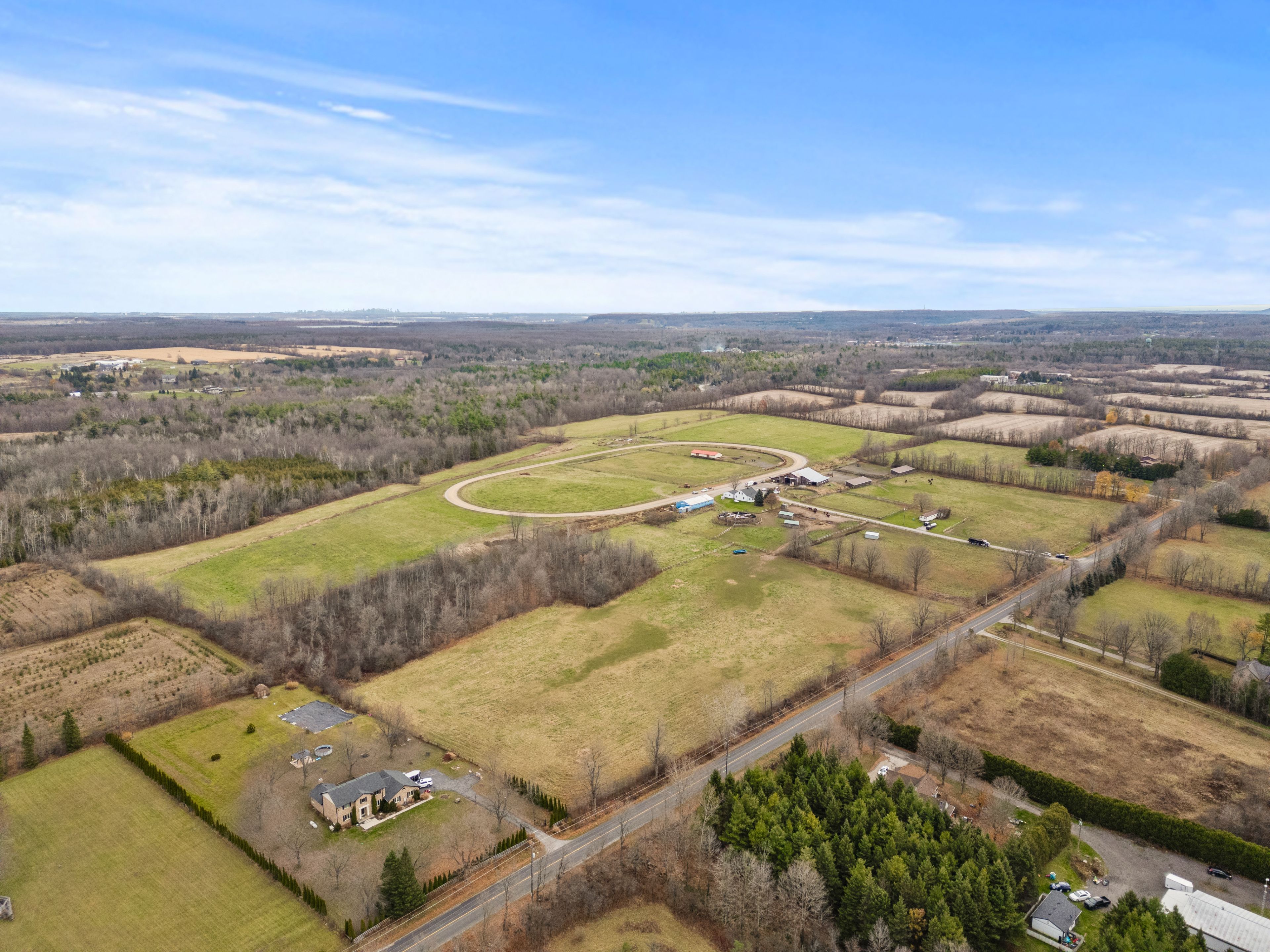 An unparalleled opportunity awaits you with this 96-acre equestrian farm, located just 5 mins from mohawk racetrack and hwy 401 in milton. This prime location is surrounded by multimillion-dollar estate homes, offering tremendous investment potential and maybe an opportunity in the future for severance, buyers to verify.. The property features a spacious 4-bedroom residence and a separate large 2-bedroom mobile home with 1. 5 baths perfect for staff or rental. Two barns include extensive equestrian facilities: the blue barn has 11stalls, an office, and a wash rack, while the brown barn offers 16 large stalls and equipment storage. The grounds are well-equipped for horse training and care, including multiple sheds, paddocks, and private horse track. A rare blend of tranquil country living and extraordinary investment opportunity.