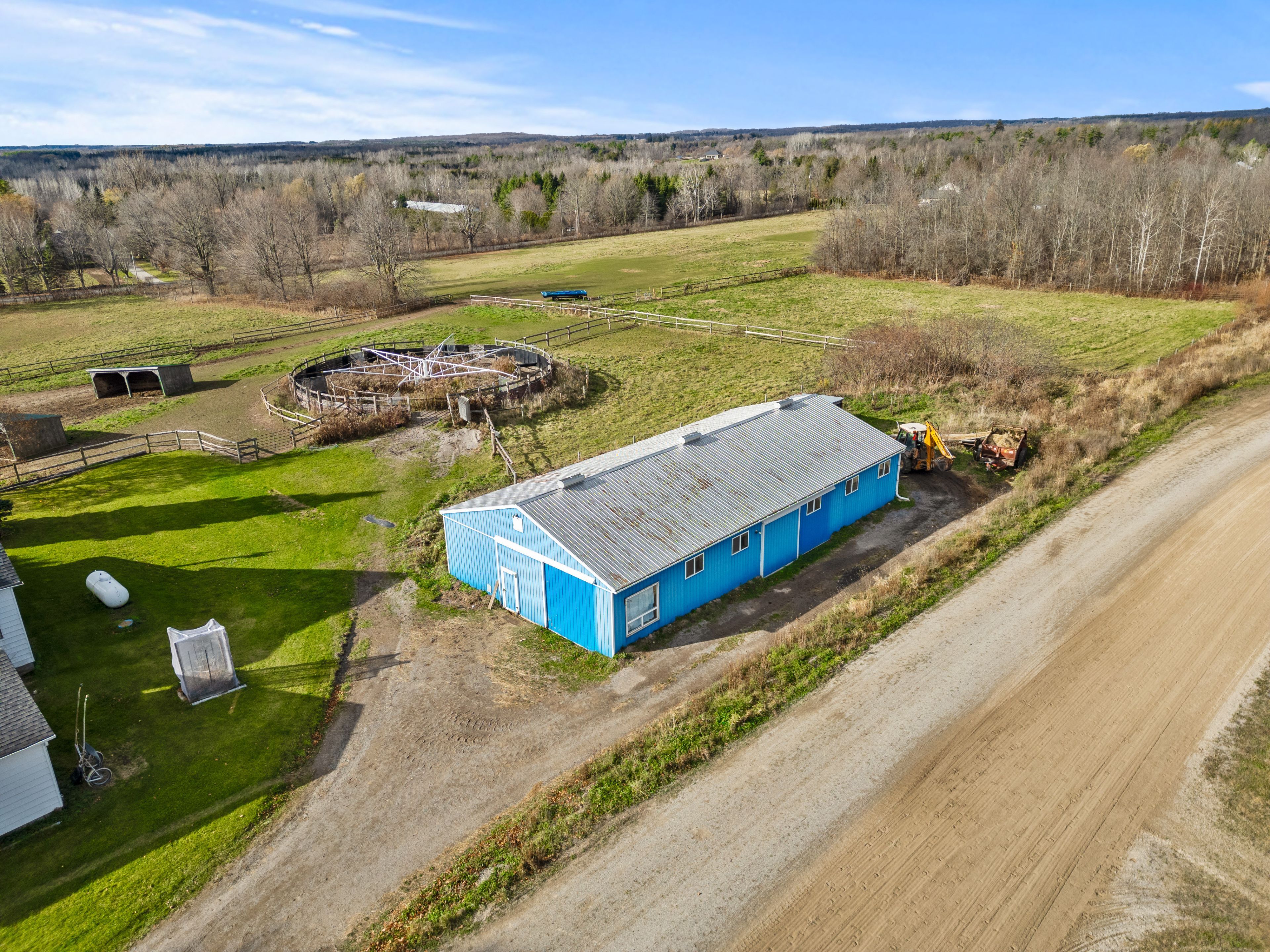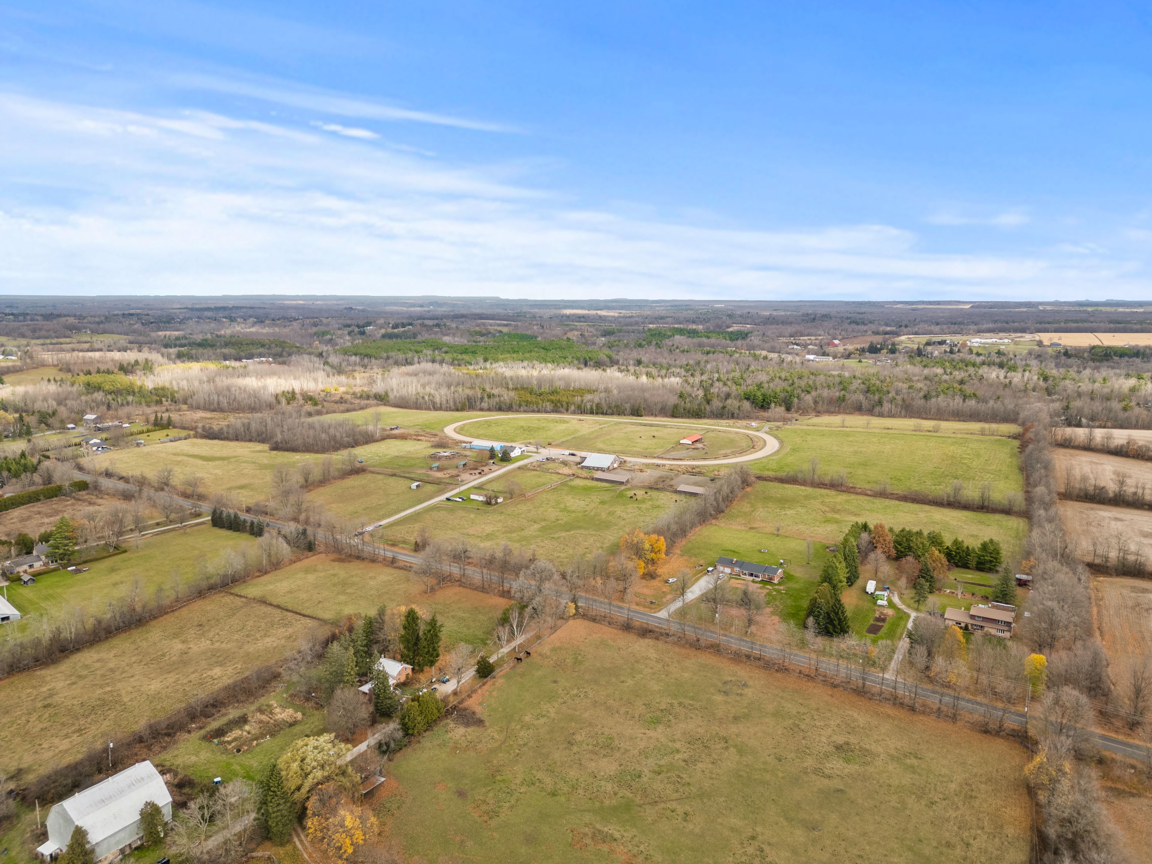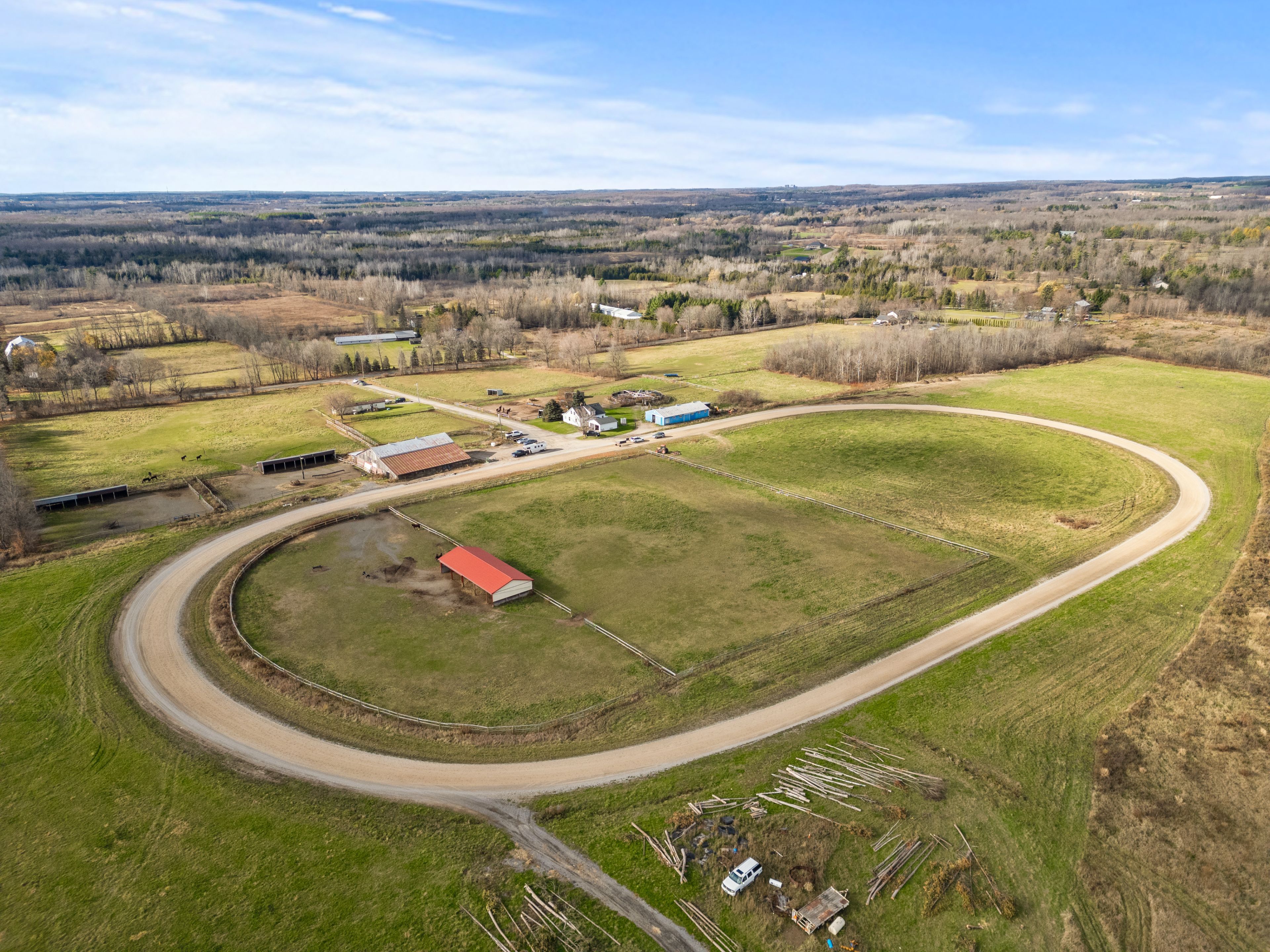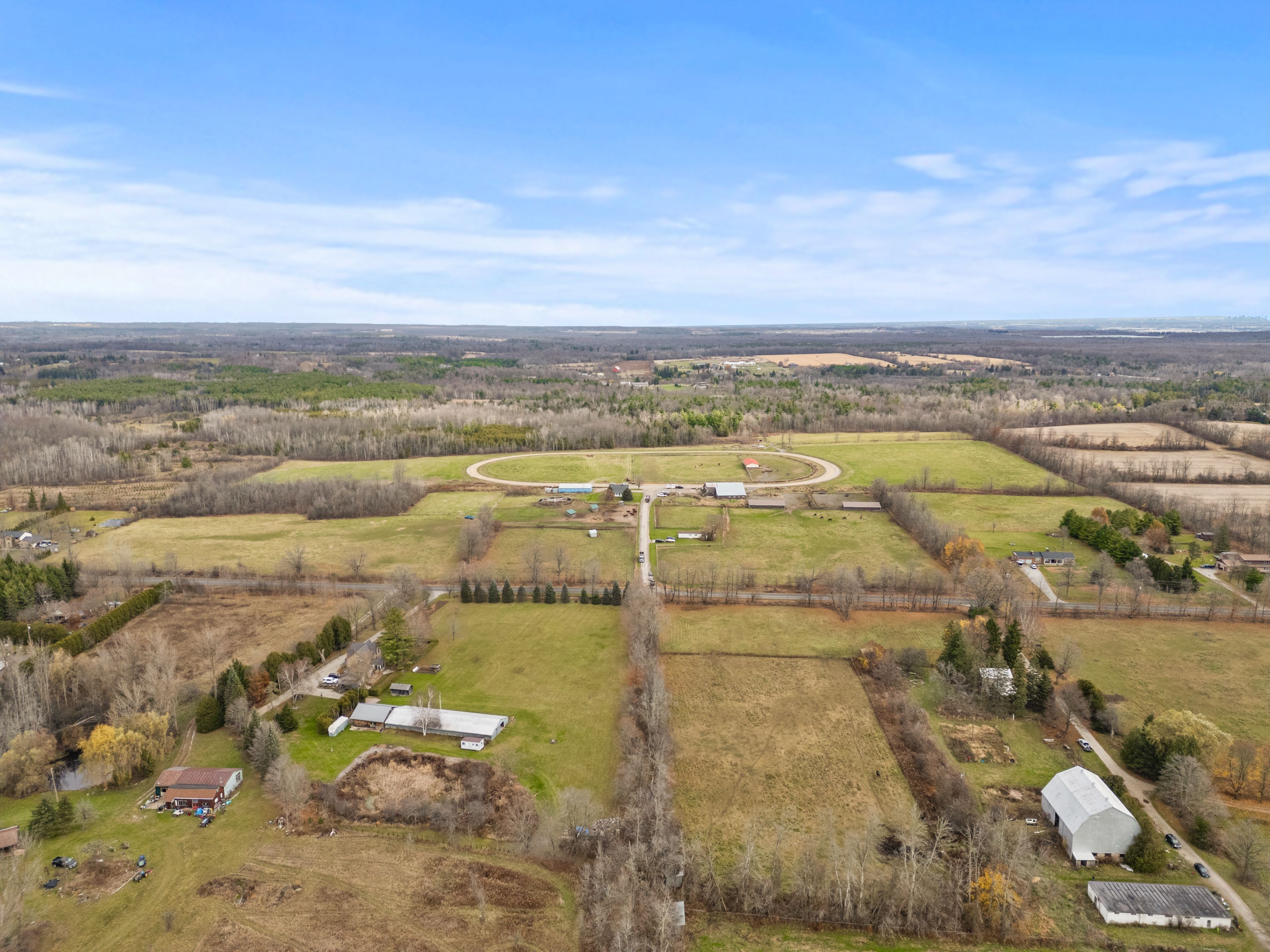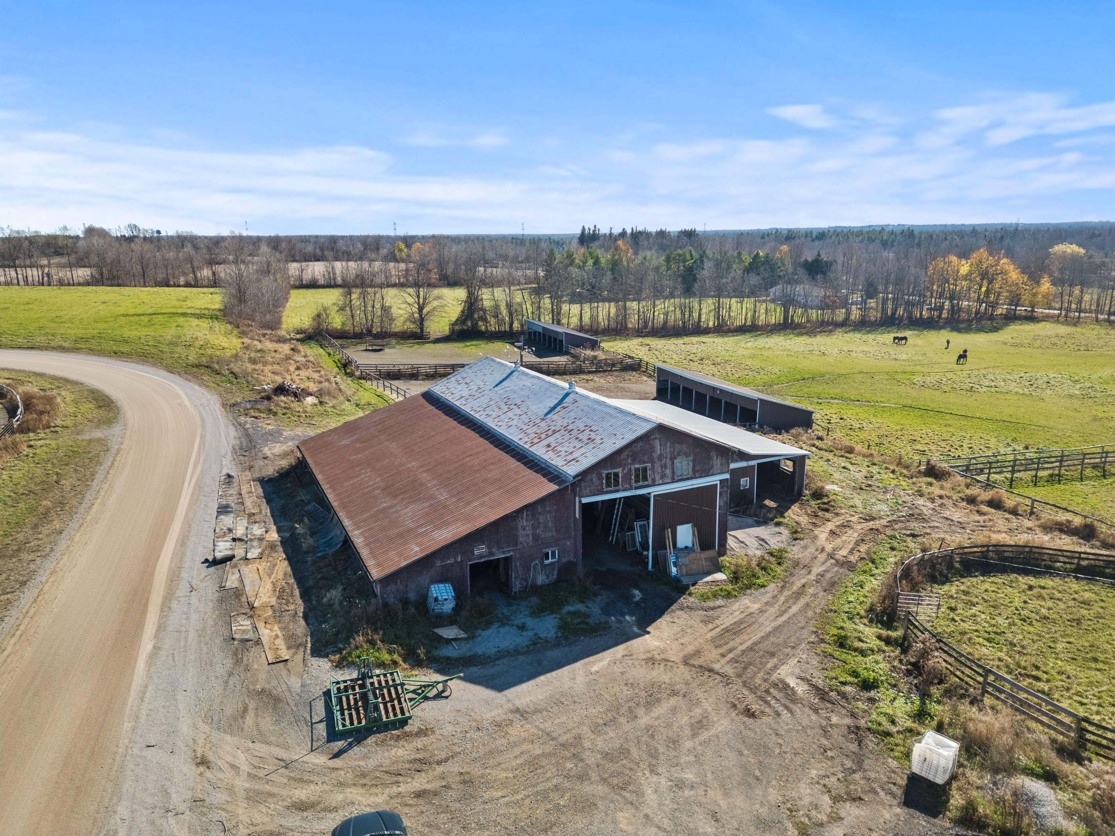 An unparalleled opportunity awaits you with this 96-acre equestrian farm, located just 5 mins from mohawk racetrack and hwy 401 in milton. This prime location is surrounded by multimillion-dollar estate homes, offering tremendous investment potential and maybe an opportunity in the future for severance, buyers to verify.. The property features a spacious 4-bedroom residence and a separate large 2-bedroom mobile home with 1. 5 baths perfect for staff or rental. Two barns include extensive equestrian facilities: the blue barn has 11stalls, an office, and a wash rack, while the brown barn offers 16 large stalls and equipment storage. The grounds are well-equipped for horse training and care, including multiple sheds, paddocks, and private horse track. A rare blend of tranquil country living and extraordinary investment opportunity.