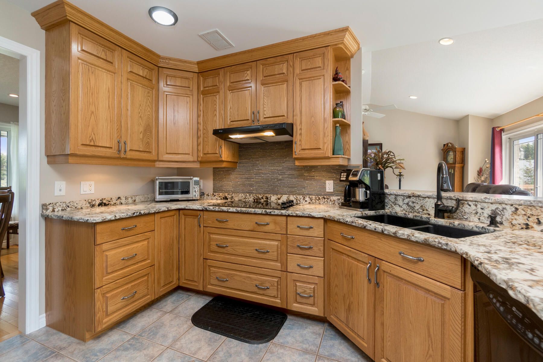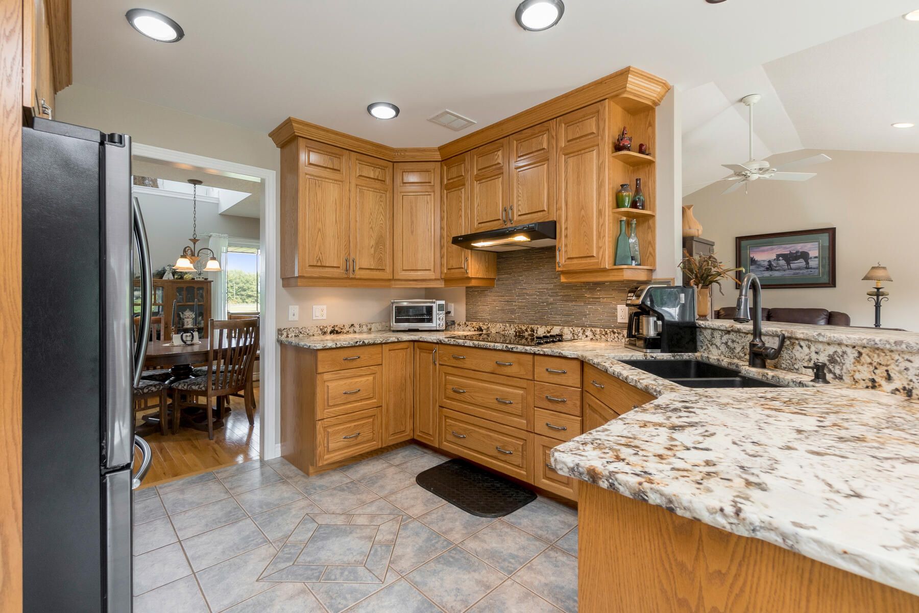 • Huge family room with wood burning fireplace and walk-out to patio and pool.