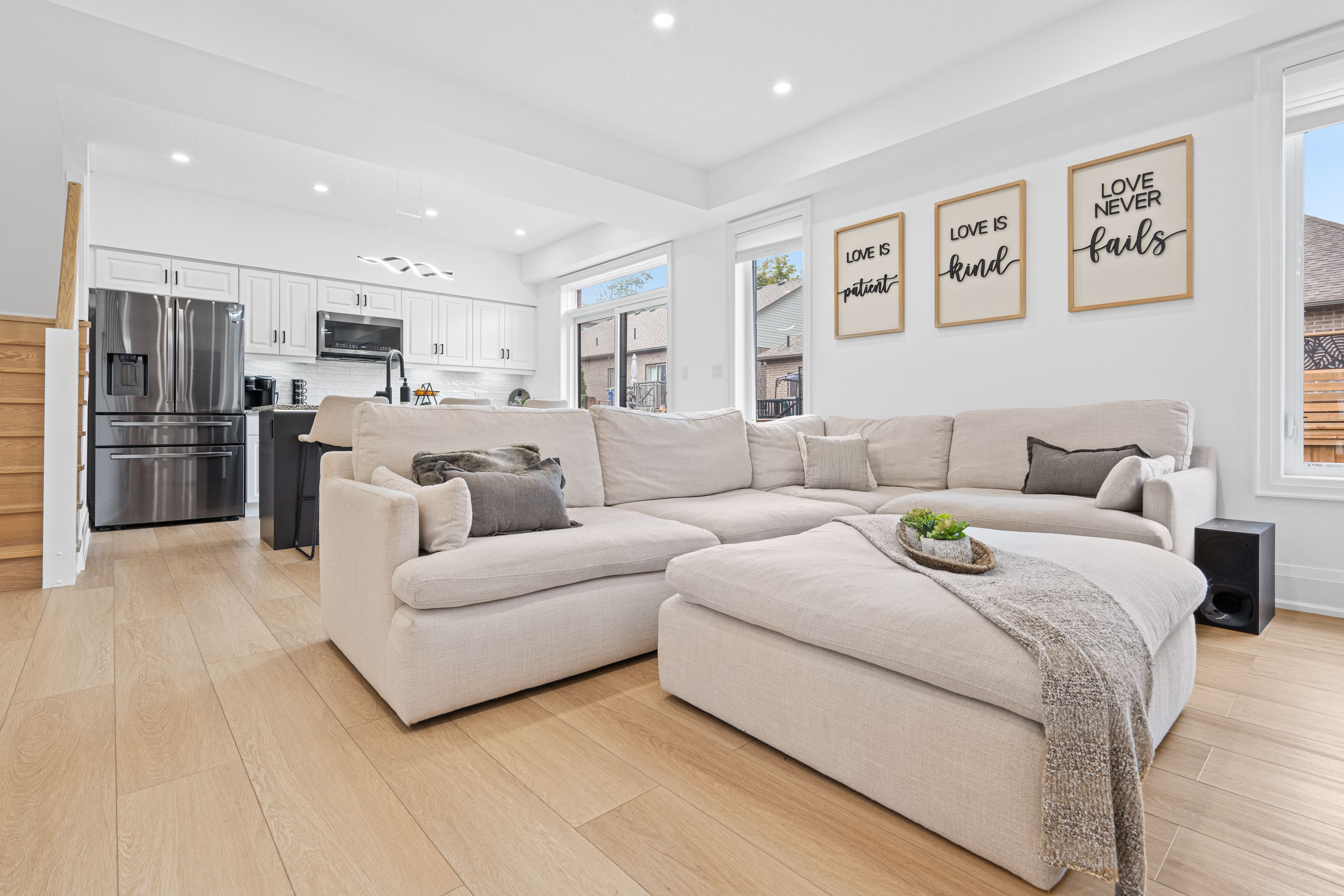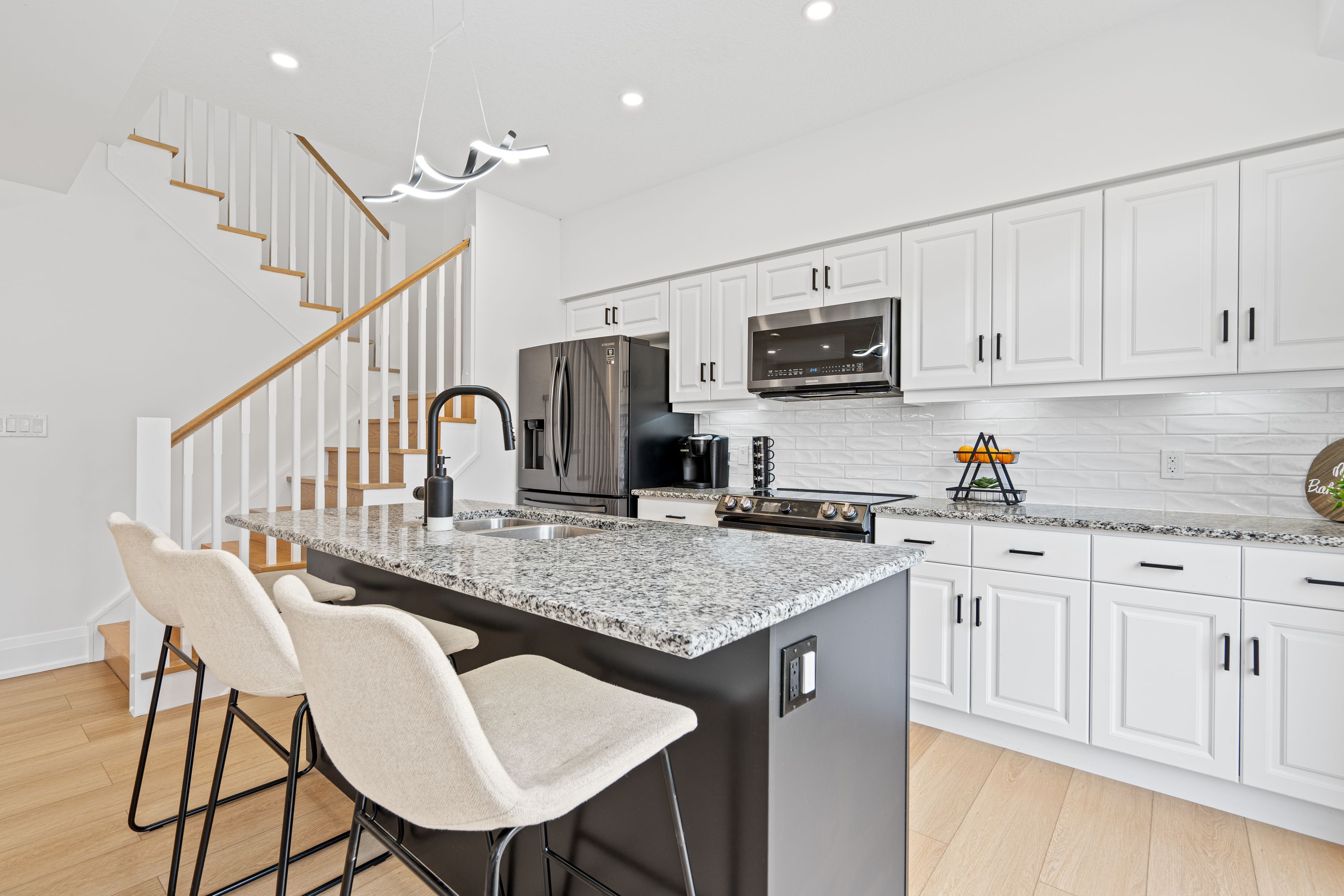 • Upgraded home with modern kitchen and smart appliances for convenience.