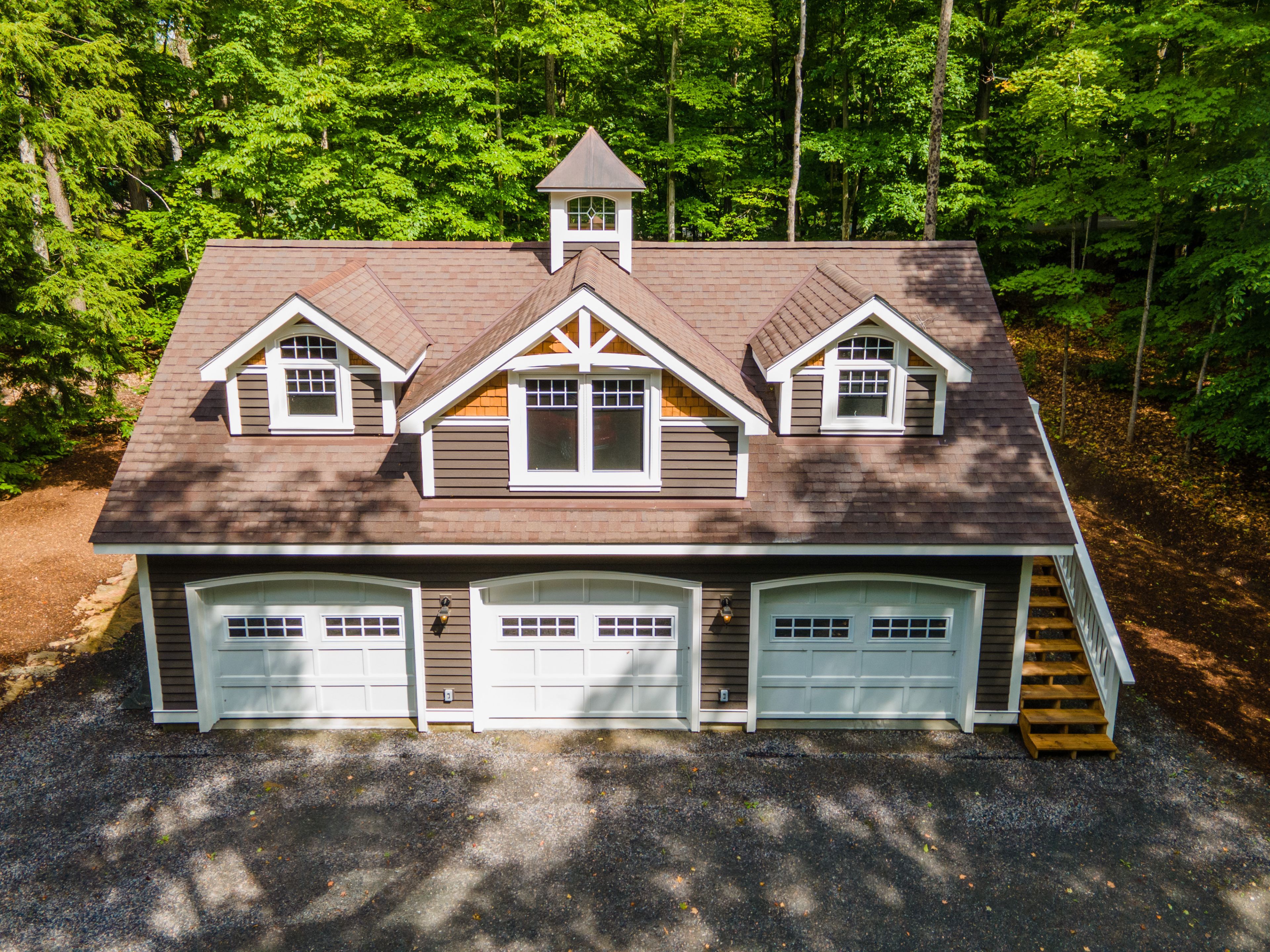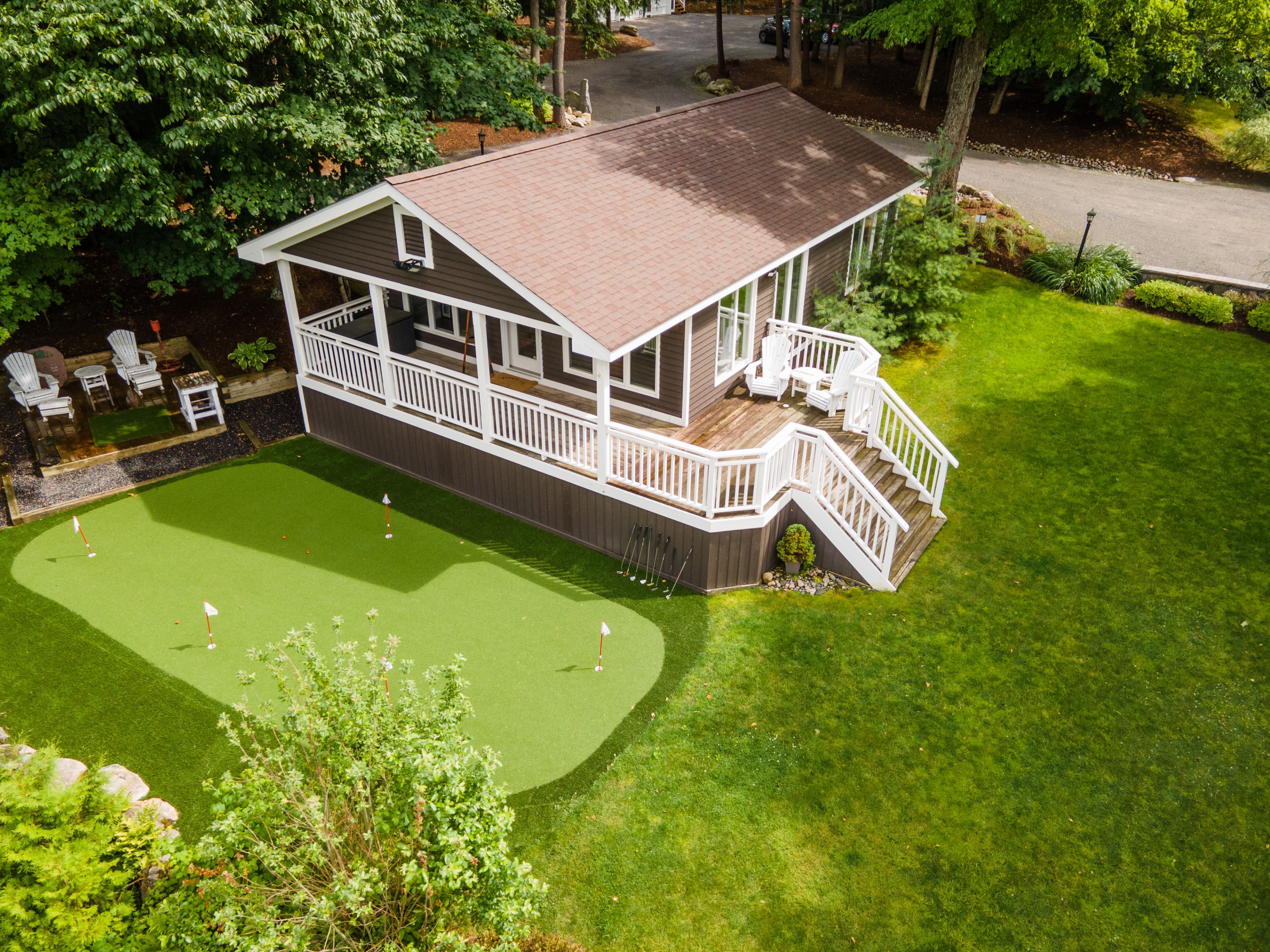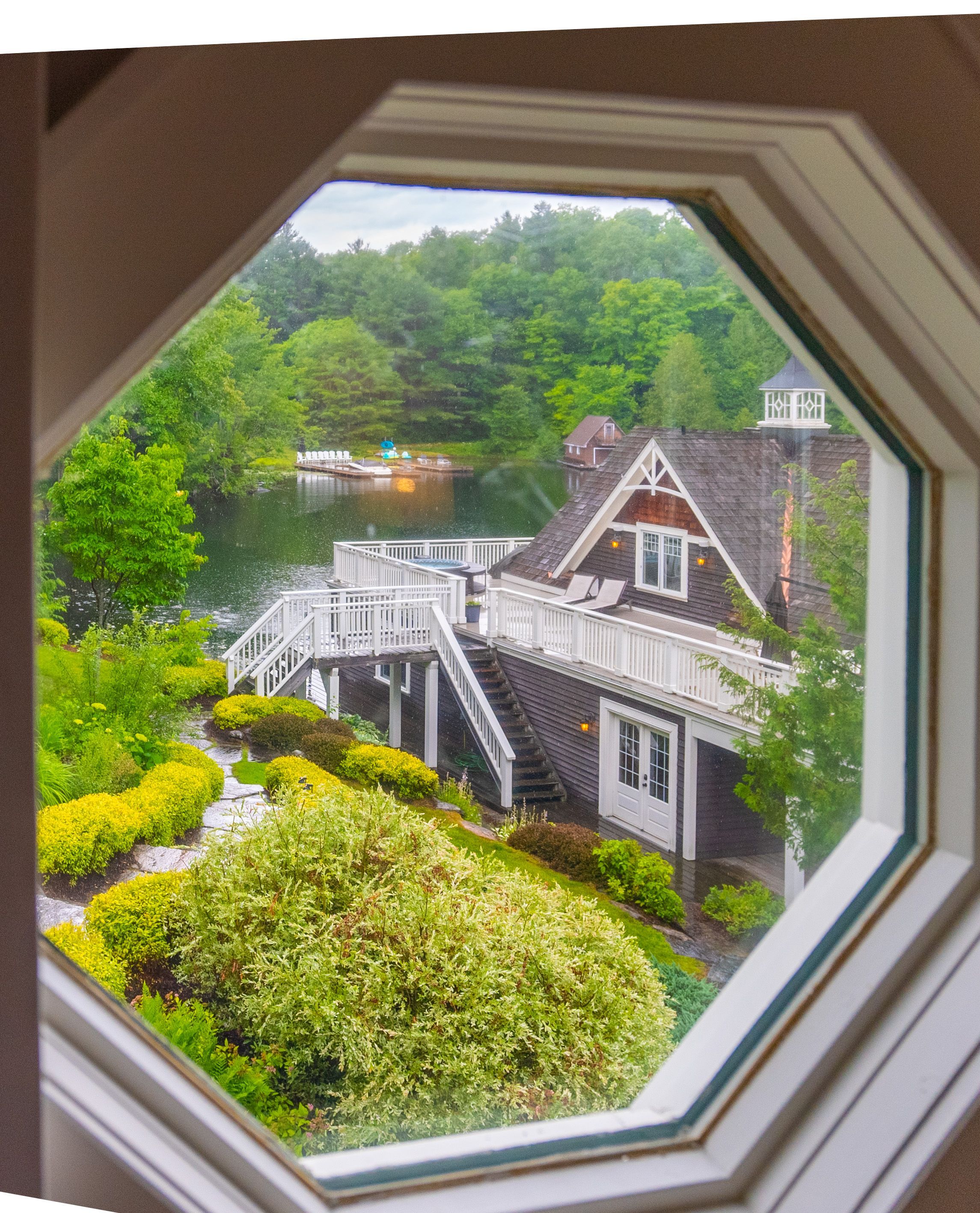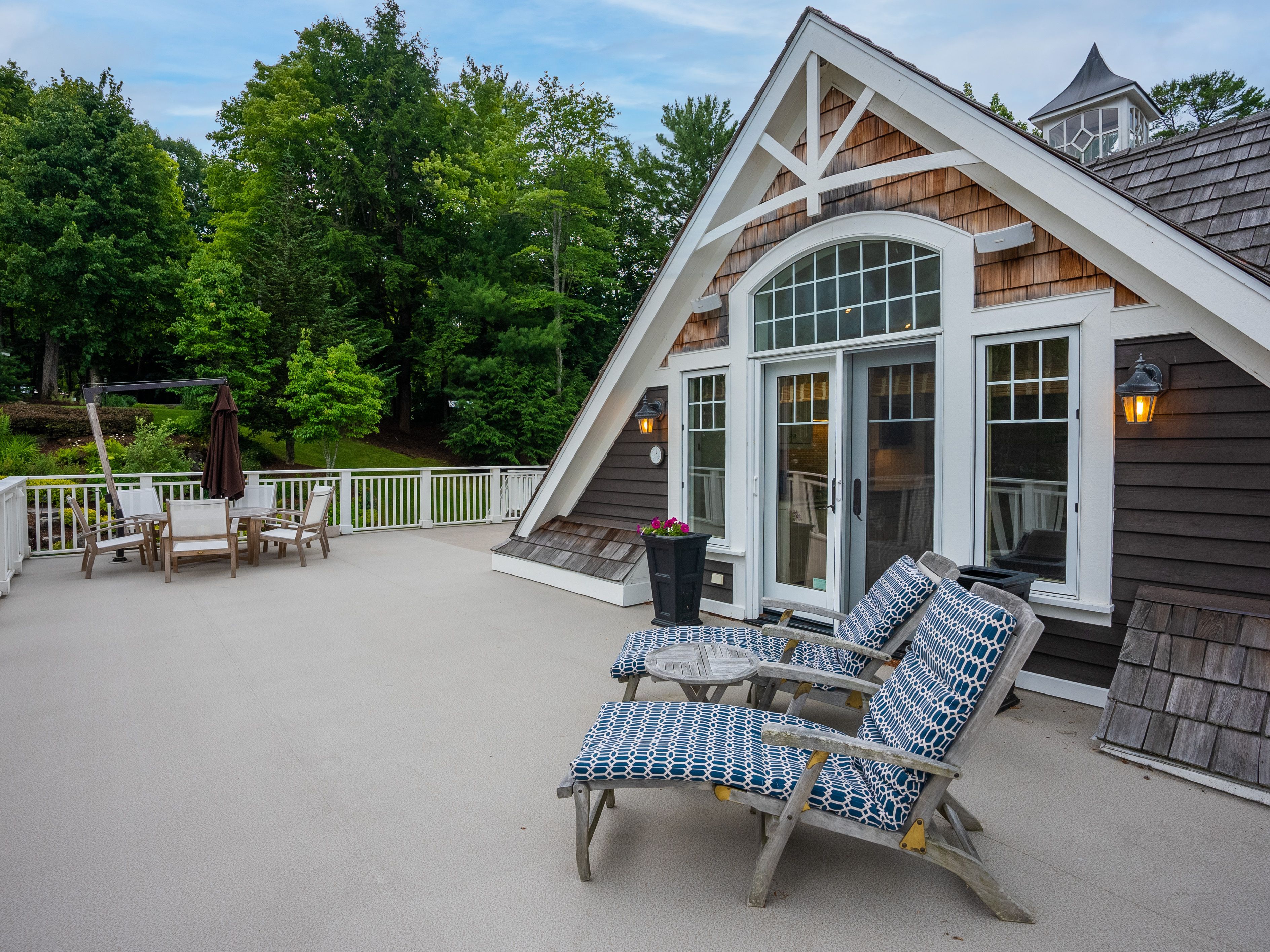 • Private boathouse with slips, kitchenette, and spa-like upper deck.
