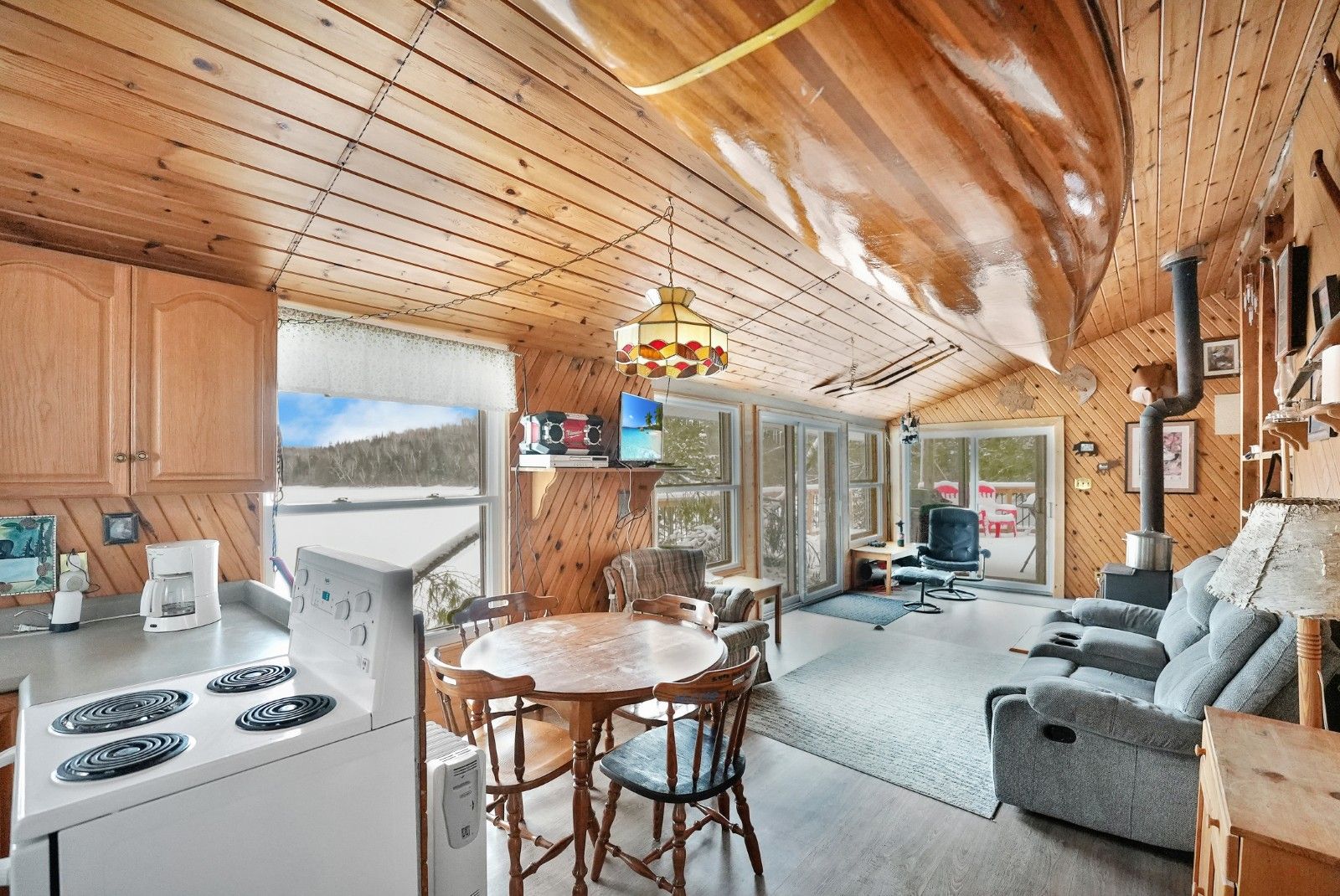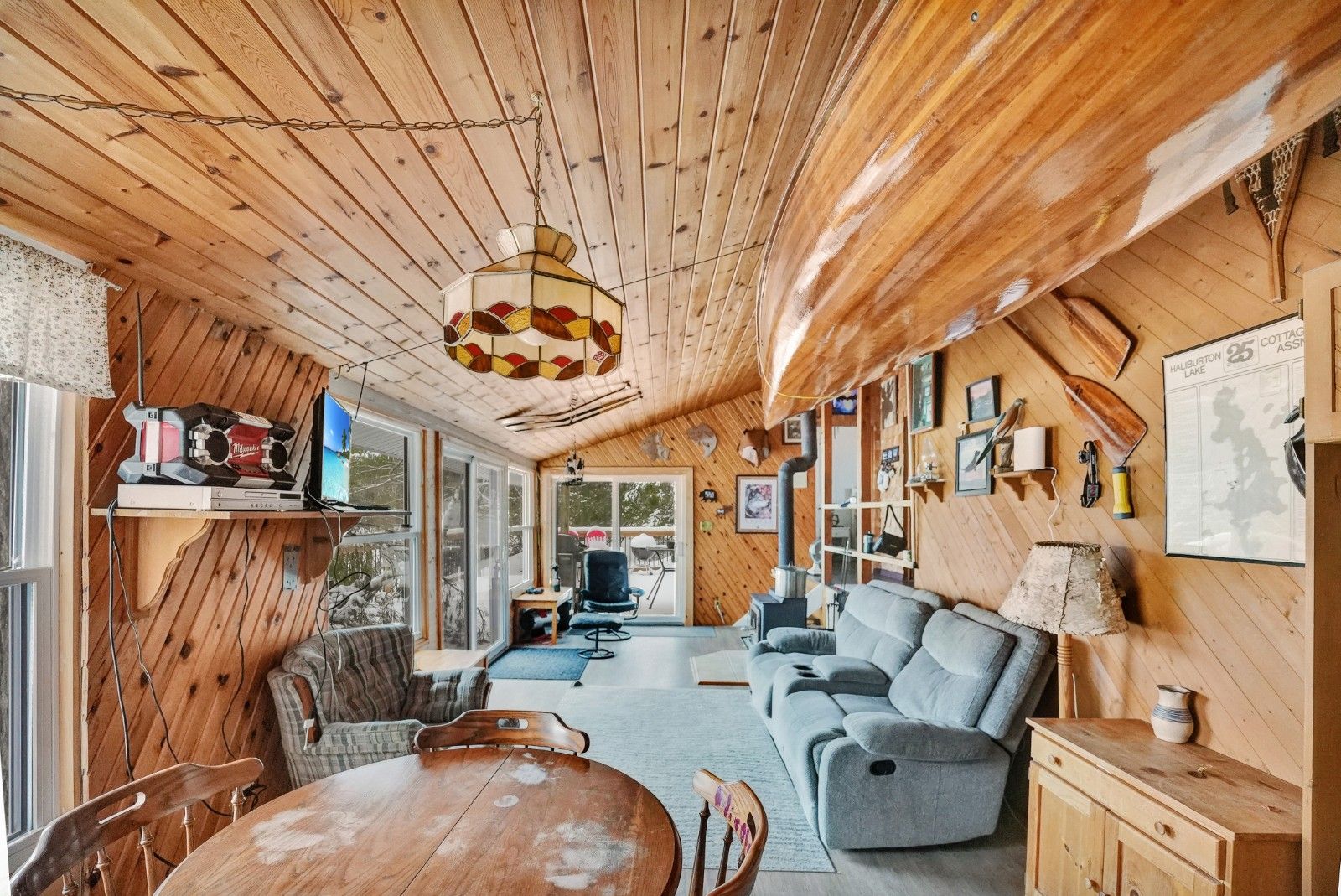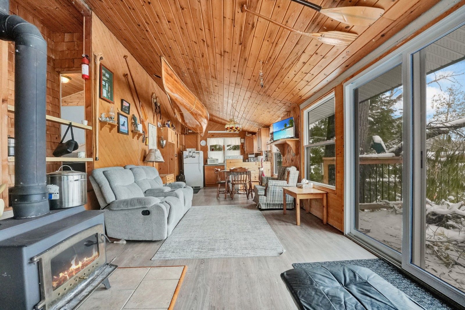 Set on the shores of haliburton lake, this 3-season backsplit cottage offers a great setting for family getaways and time on the water. With scenic lake views, clean deep water, and access to excellent boating and fishing, it's a spot that's easy to enjoy throughout the warmer months. The main level features an open-concept living, dining, and kitchen area designed for gathering, with natural light and views out to the lake, along with a deck overlooking the water-an ideal place for outdoor dining or relaxing. A wood stove adds warmth and comfort on cooler nights. Upstairs, you'll find three bedrooms and a full bathroom, providing comfortable space for family and guests. The property is well-suited for low-maintenance ownership, allowing you to spend more time enjoying the lake and less time on upkeep. Whether it's morning coffee on the deck or afternoons spent boating and swimming, this haliburton lake cottage offers a straightforward way to enjoy cottage life.