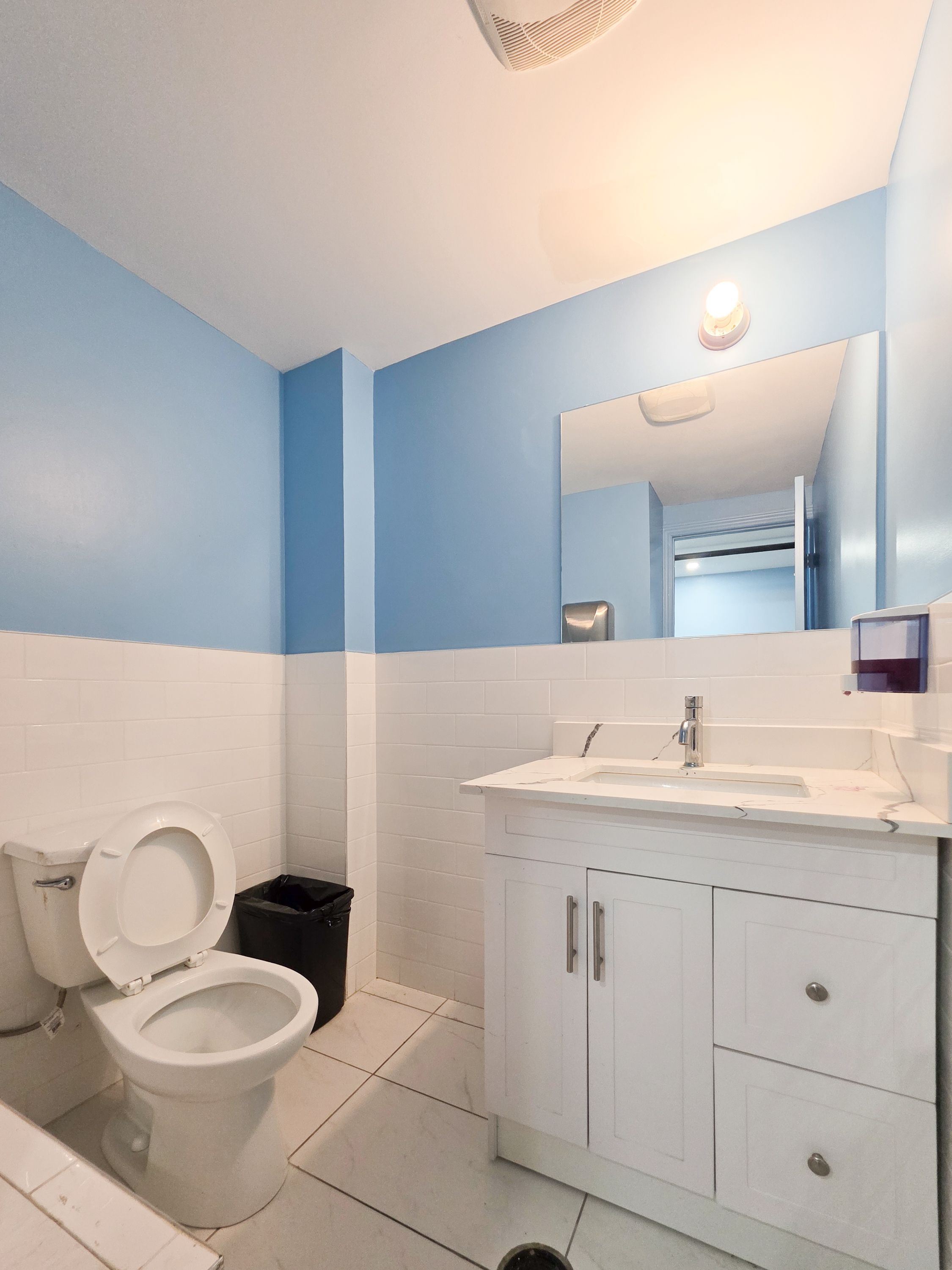 • Finished basement with multiple bathrooms and staff lounge for convenience.