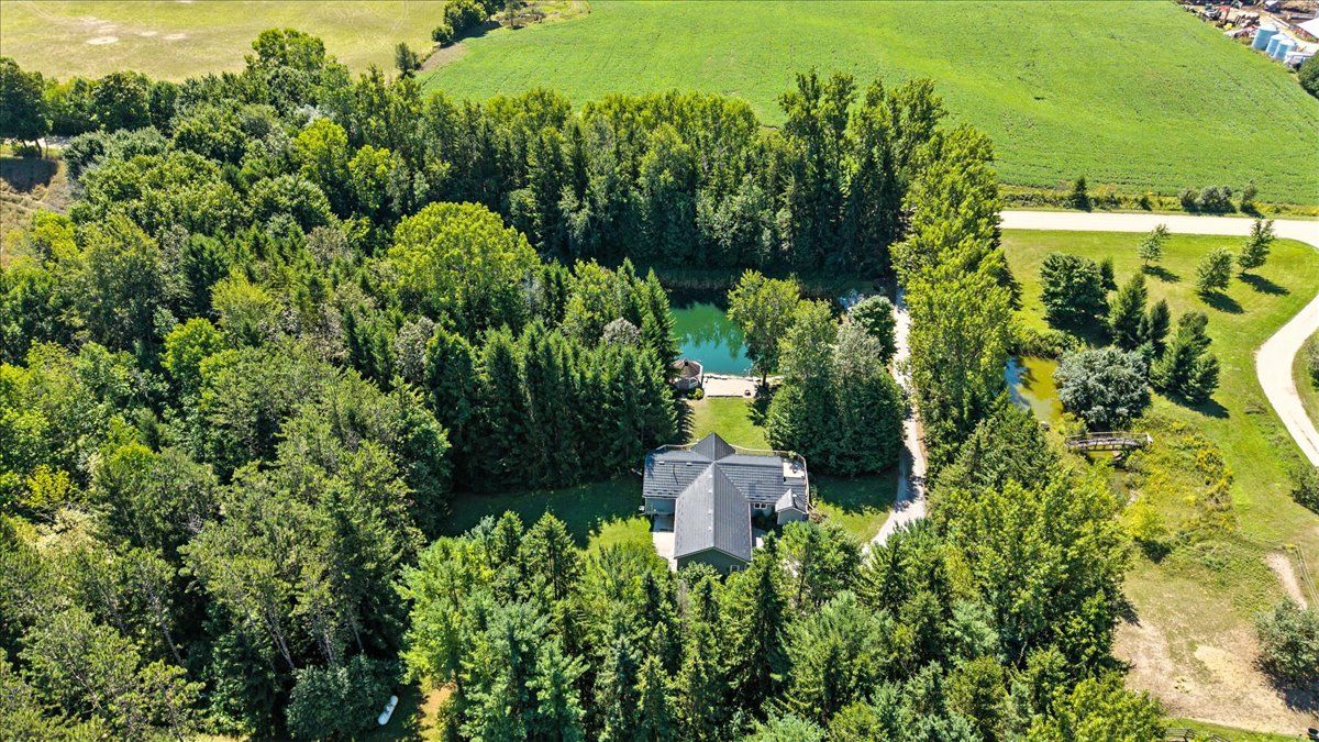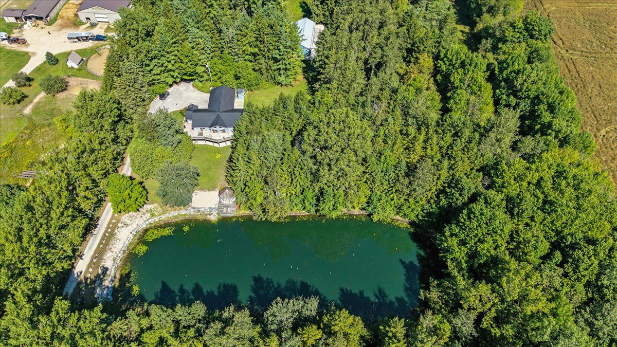 Escape to peace and privacy on this 16. 5-acre country retreat surrounded by pine forest and highlighted by a beautifully landscaped pond. The 3-bedroom, 3-bath bungalow offers open living spaces filled with natural light, a walk-out basement, and an attached 2-car garage. Step outside to enjoy trails, space to roam, and the tranquillity of your own private oasis. For those seeking extra potential, the property features site-specific zoning for a licensed kennel, opening the door to unique opportunities for animal lovers or entrepreneurs. Whether you dream of a hobby farm, a family retreat, or simply a place to slow down and connect with nature, this property delivers the lifestyle you've been looking for. Call now to book your private showing.
