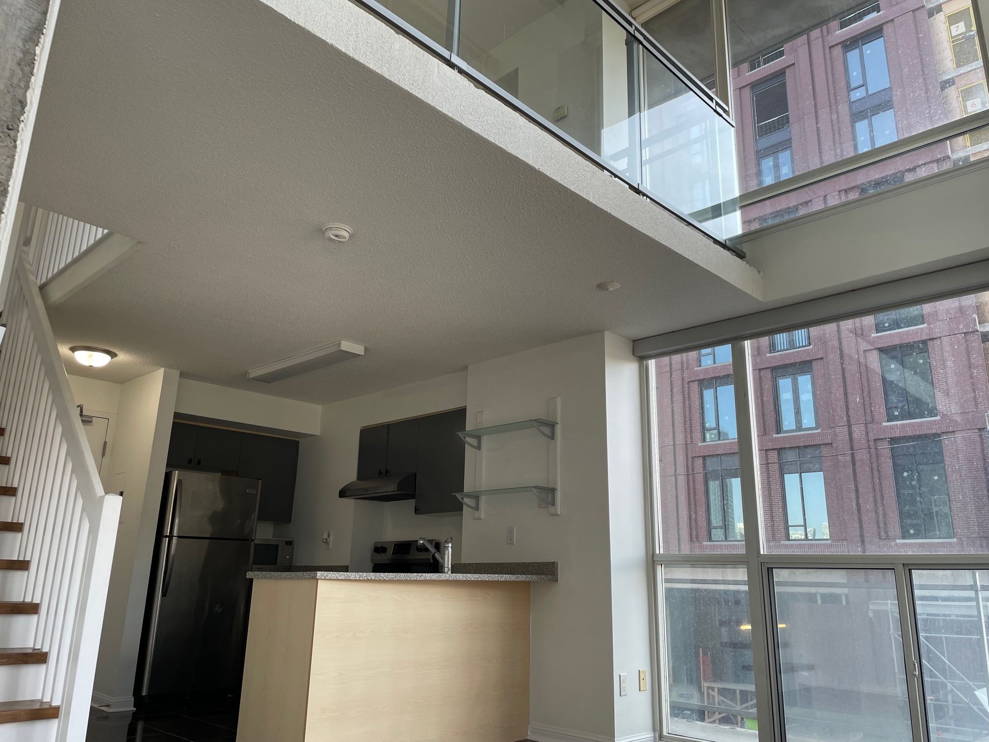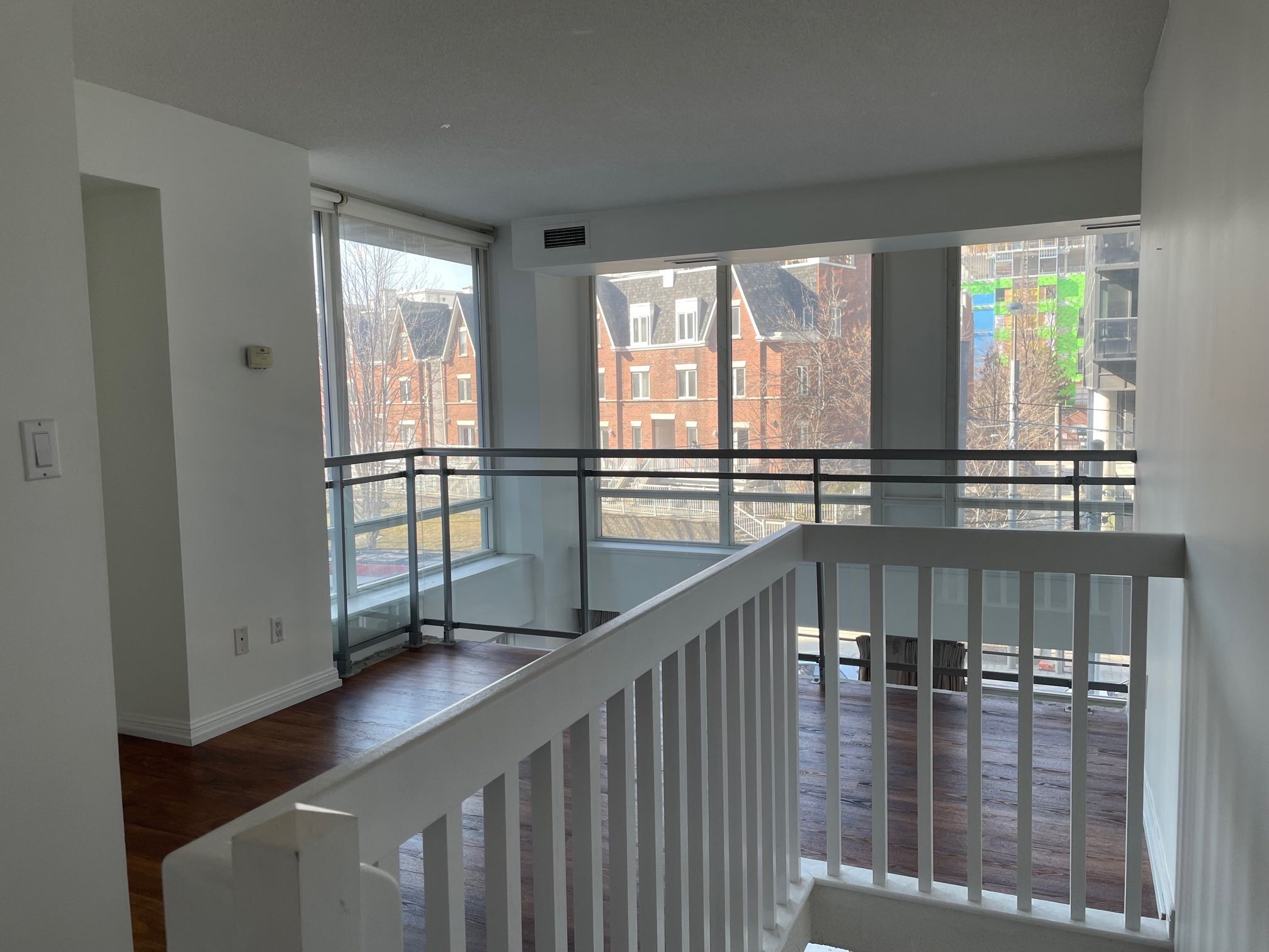 Welcome to the suite 208 at 1029 king street w, a rare, south-facing corner unit in the iconic electra lofts. The two-storey, one bedroom residence offers approximately 600-799 square feet of 16-17 foot ceilings and dramatic double-height, floor-to-ceiling windows that flood the space with natural light. The open-concept main floor includes the kitchen, living, and dining areas, while the upper level houses the private primary bedroom overlooking the living space. This rental suite includes one owned underground parking space. Residents have access to a gym & a separate cardio room, recreation/party room, meeting room, bike storage, and 7 guest parking passes/month. The building is situated in the heart of king street west village/niagara, just steps from liberty village via the pedestrian bridge. It sits directly across the street from loblaws city market and within walking distance to the vibrant ossington strip and trinity bellwoods park. This suite is in a building that has unbeatable access with the ttc king streetcar at your doorstep. Book a showing and come & see!