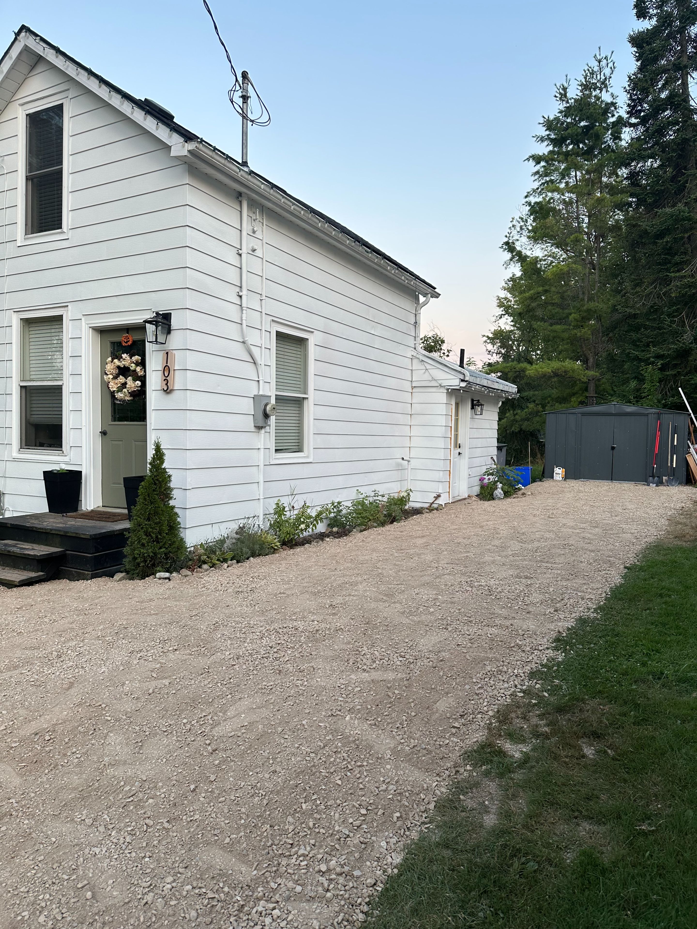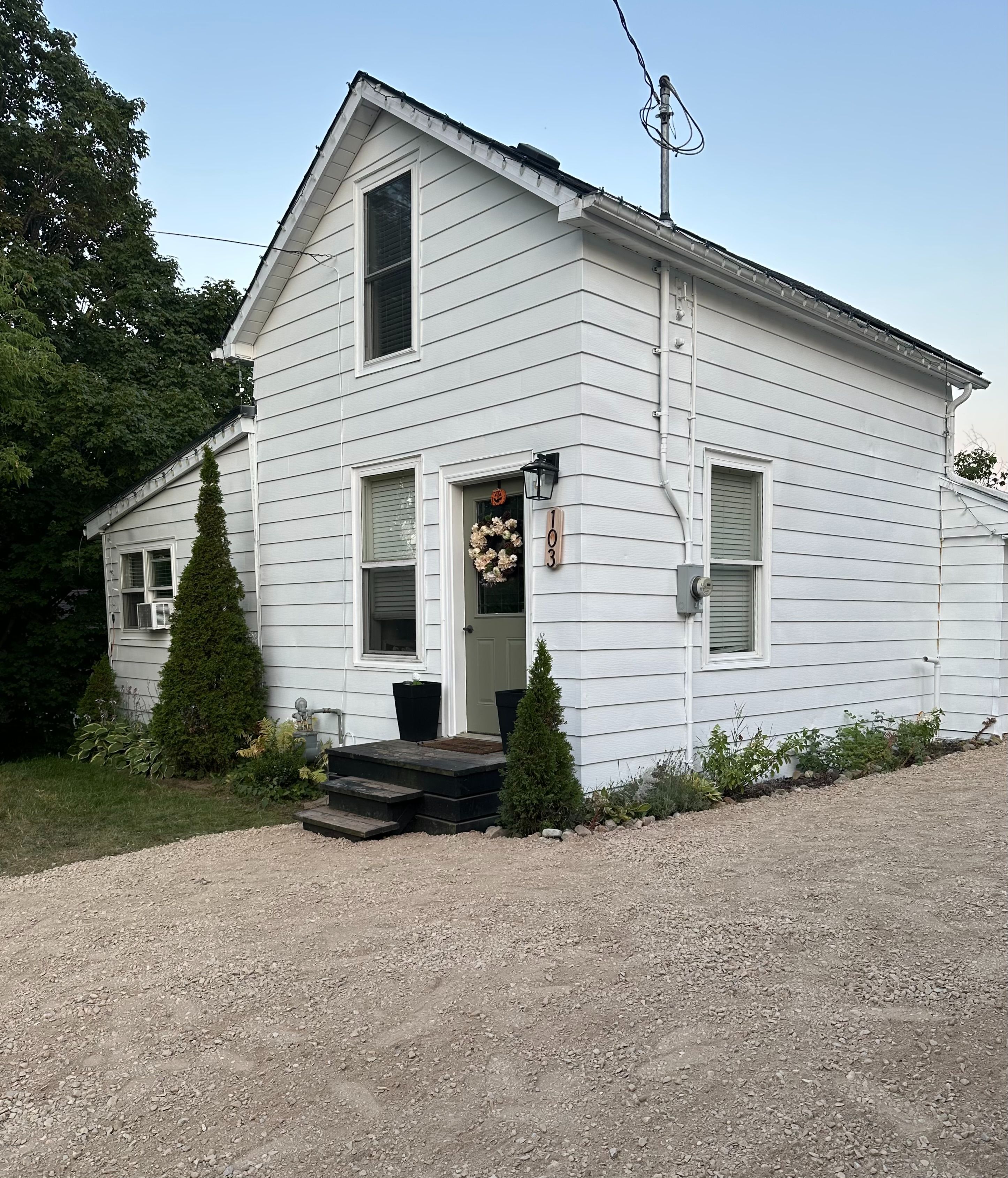 103 amelia street in walkerton is a charming and thoughtfully updated 2-bedroom, 1-bath home that blends cozy character with stylish, moody elements throughout. Perfect for first-time buyers, downsizers, or investors, this home offers comfortable living with a long list of meaningful upgrades already completed. The interior features updated light fixtures throughout (2023-2025), new pot lights (2025), a smart thermostat (2024), tiled laundry and bathroom floors (2024), a beautifully refreshed bathroom with new vanity, sink, faucet, and shower fixtures (2025), and a fully updated kitchen (2026) complete with new flooring, countertops, backsplash, trim work, and under-cabinet lighting. Major improvements include a new shingled roof on the original structure (2022), new water heater (2025), updated exterior side door, painted exterior siding (2025), new smoke alarms (2025-2026), and washer and dryer (2024). Outside, you'll find a shed set on pavers (2021), a re-graveled and widened driveway (2025), refreshed exterior lighting, and even a new hose bib (2025). Average annual utility costs are approximately $1,600 for electricity, $1,100 for water, and $750 for gas (with the furnace as the only natural gas appliance, keeping summer costs primarily to meter fees). A well-cared-for home with personality, smart updates, and manageable utility costs, all in a great walkerton location.