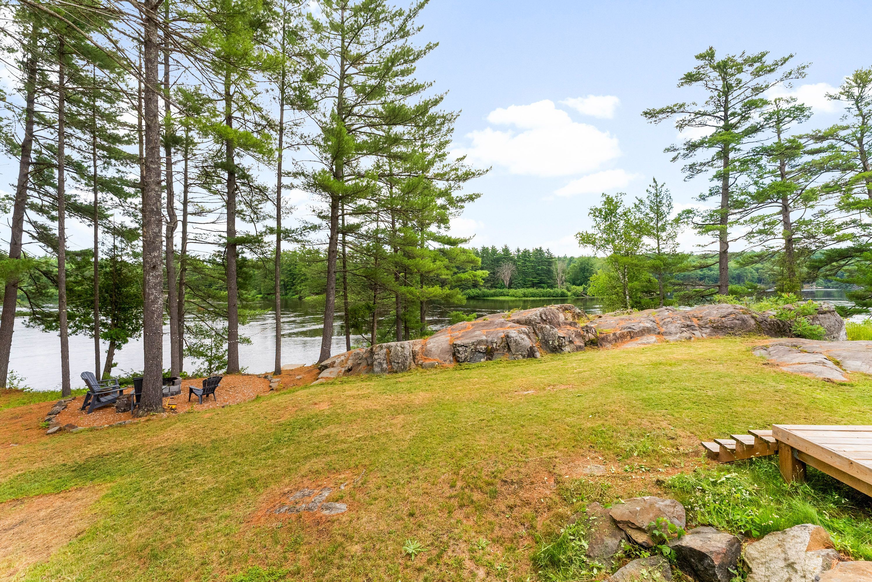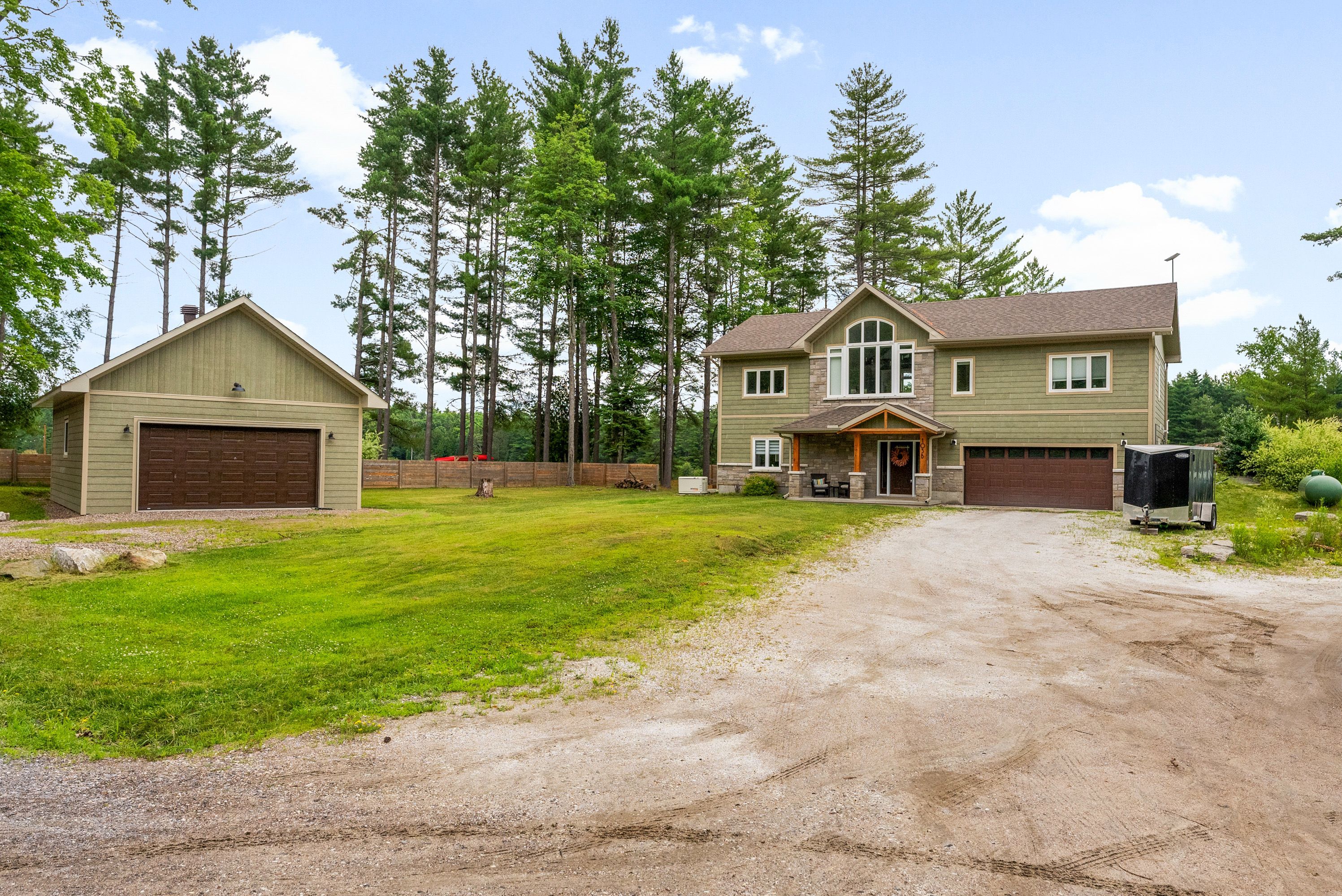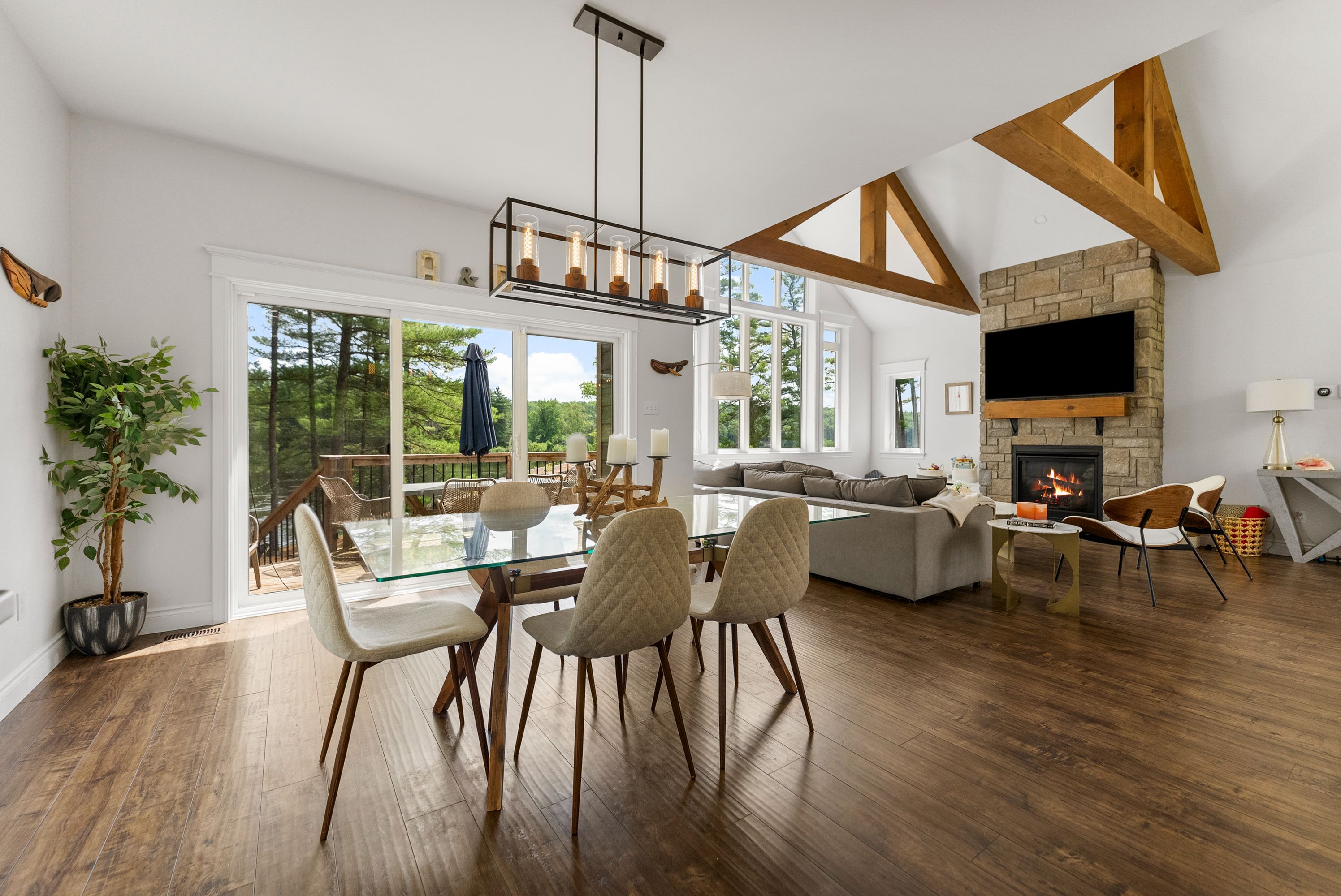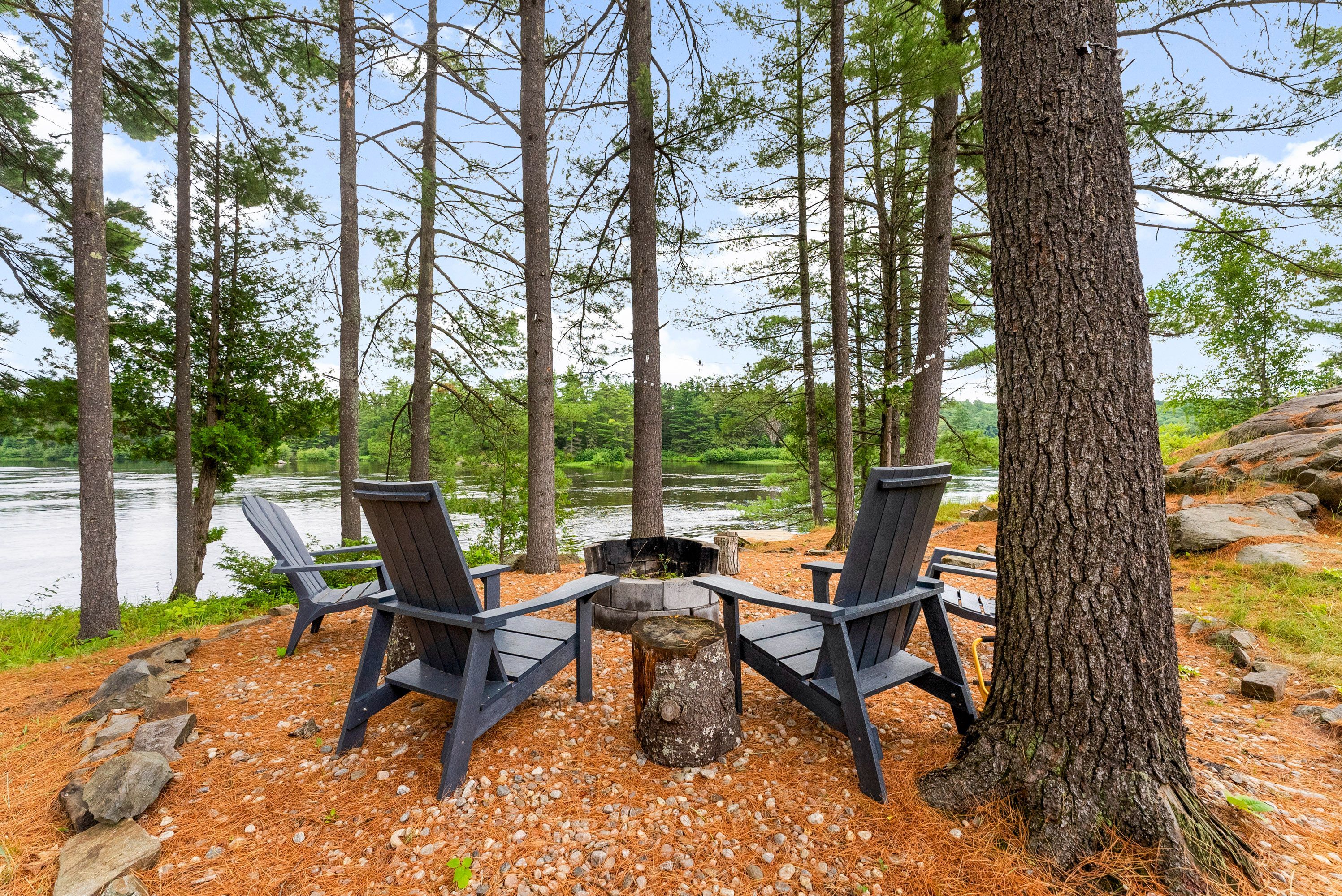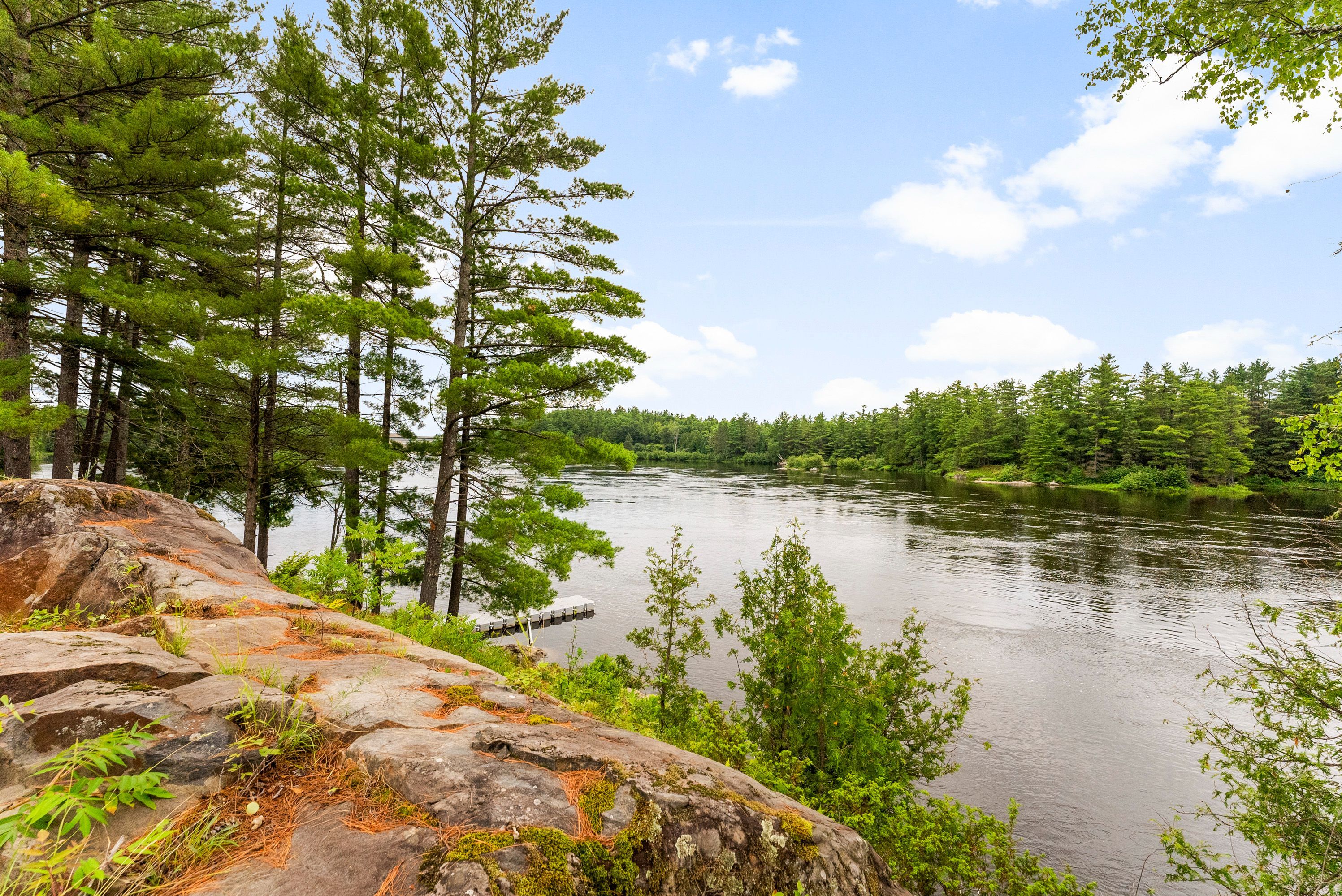 Waterfront living at its finest - welcome to 103 b carriage landing on the ottawa river. Surrounded by mature trees and miles of navigable water to explore, this year-round retreat offers a peaceful, private setting with exceptional fishing, boating, and outdoor recreation right outside your door. Step inside to an impressive two-storey foyer with soaring 20' ceilings and an upper balcony overlooking the grand entrance. The main level features a bright, open-concept kitchen and living area highlighted by vaulted ceilings with exposed beams and expansive windows that fill the space with natural light and showcase the surrounding landscape. The primary suite offers patio doors leading directly to the deck and hot tub - your own private outdoor escape. A walkout basement at ground level enhances the seamless connection between indoor and outdoor living, while the main floor balcony provides the perfect vantage point to relax and take in the tranquil river views. Car enthusiasts and hobbyists will appreciate the attached double garage plus an additional detached double garage, offering exceptional storage and workspace flexibility. Ideally located just minutes from renfrew and under an hour to ottawa, this property delivers the perfect balance of waterfront serenity and everyday convenience. Whether you're seeking a weekend getaway or a full-time waterfront residence, this ottawa river gem truly has it all.