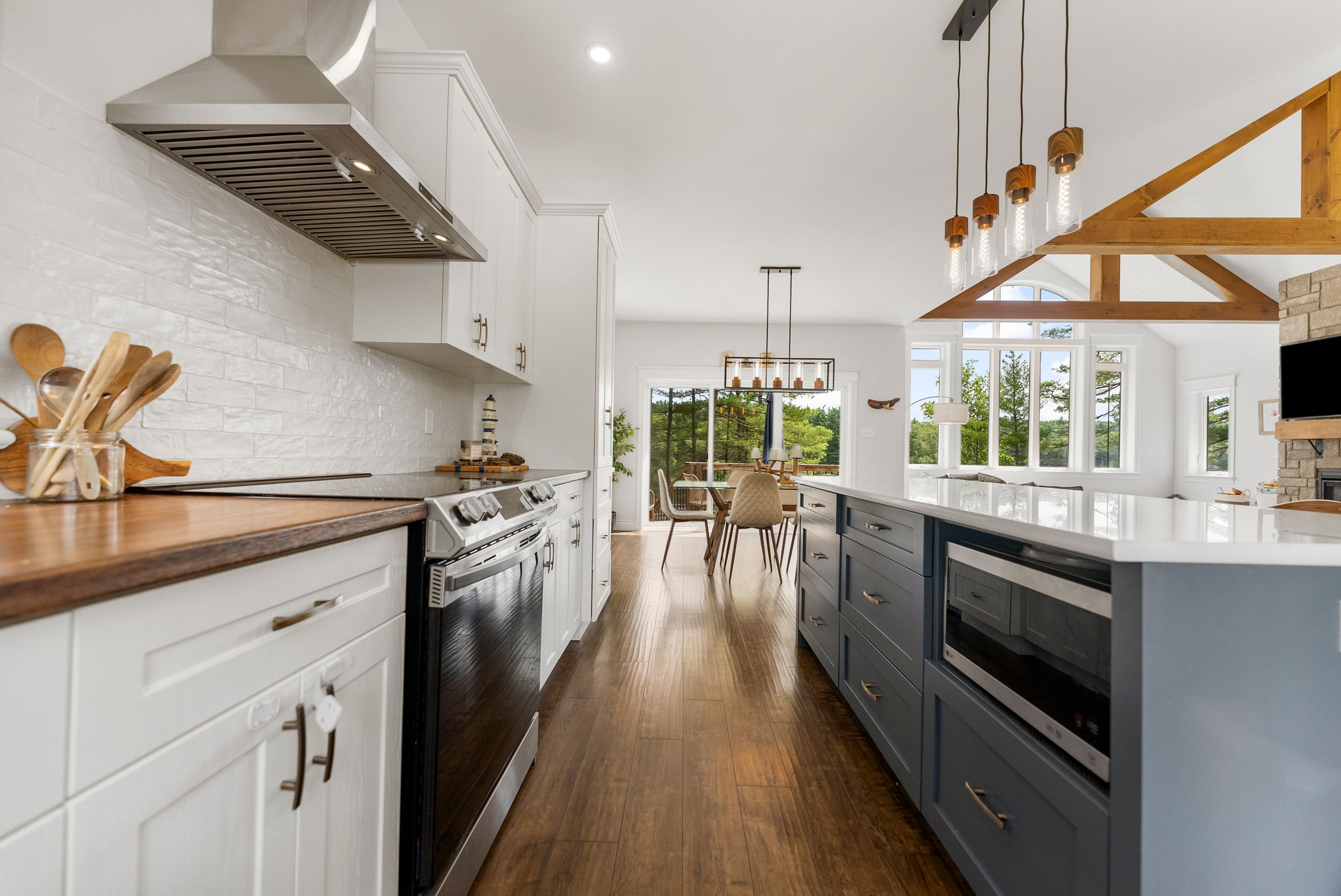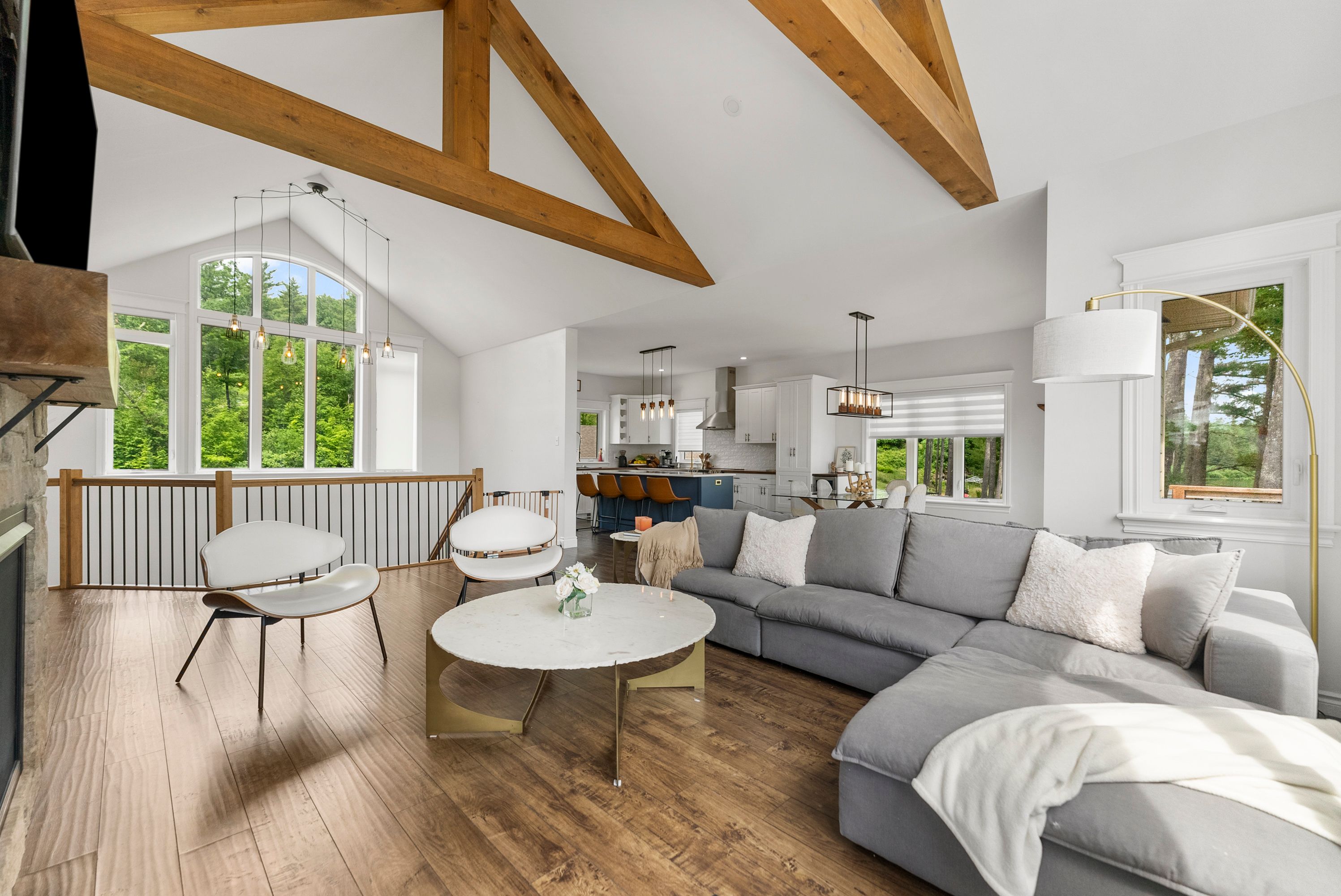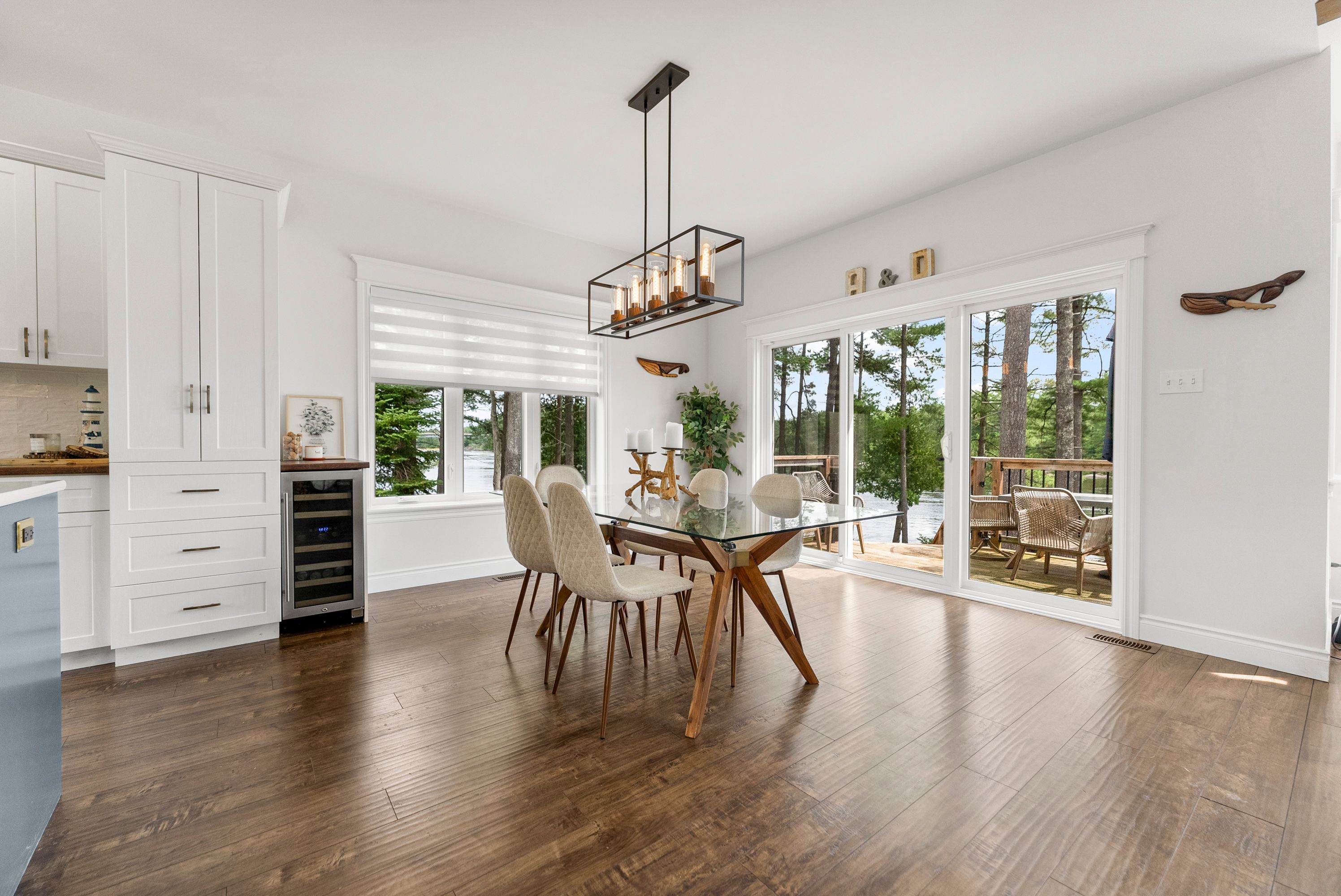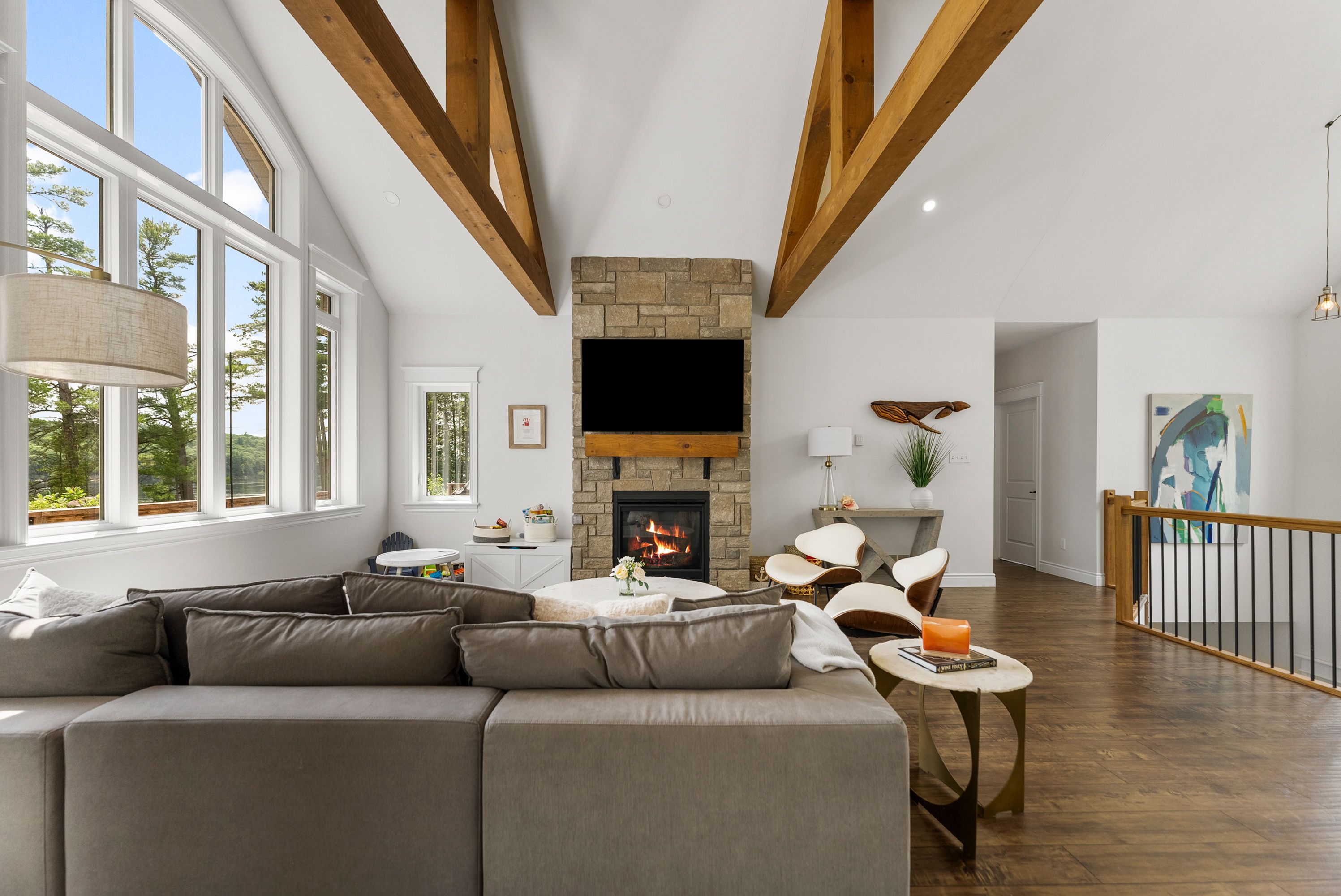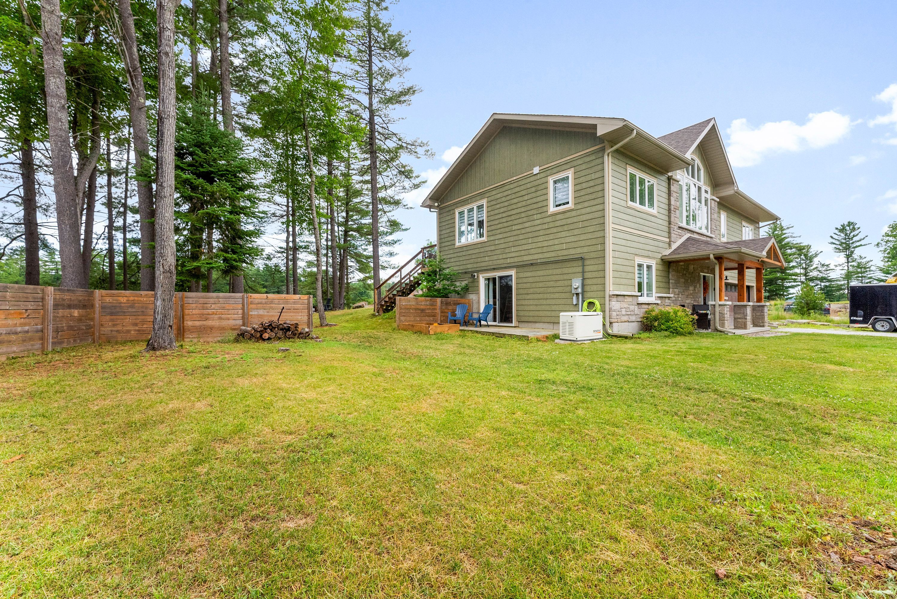 Waterfront living at its finest - welcome to 103 b carriage landing on the ottawa river. Surrounded by mature trees and miles of navigable water to explore, this year-round retreat offers a peaceful, private setting with exceptional fishing, boating, and outdoor recreation right outside your door. Step inside to an impressive two-storey foyer with soaring 20' ceilings and an upper balcony overlooking the grand entrance. The main level features a bright, open-concept kitchen and living area highlighted by vaulted ceilings with exposed beams and expansive windows that fill the space with natural light and showcase the surrounding landscape. The primary suite offers patio doors leading directly to the deck and hot tub - your own private outdoor escape. A walkout basement at ground level enhances the seamless connection between indoor and outdoor living, while the main floor balcony provides the perfect vantage point to relax and take in the tranquil river views. Car enthusiasts and hobbyists will appreciate the attached double garage plus an additional detached double garage, offering exceptional storage and workspace flexibility. Ideally located just minutes from renfrew and under an hour to ottawa, this property delivers the perfect balance of waterfront serenity and everyday convenience. Whether you're seeking a weekend getaway or a full-time waterfront residence, this ottawa river gem truly has it all.