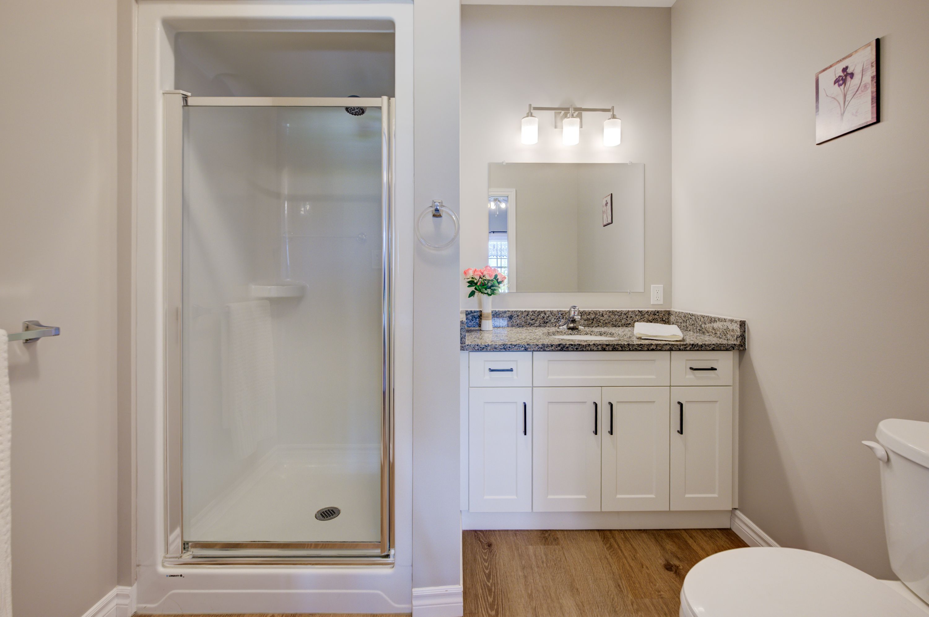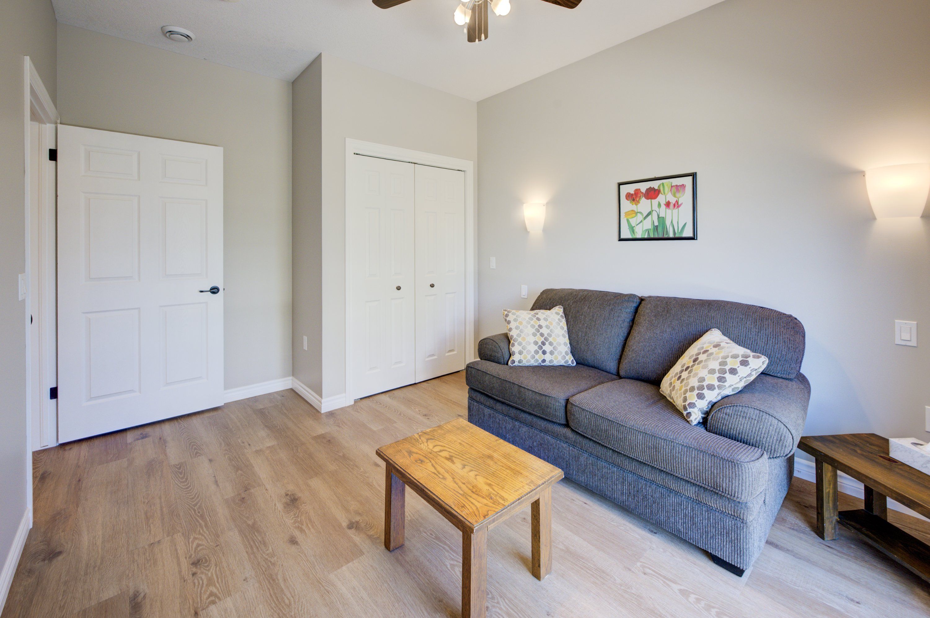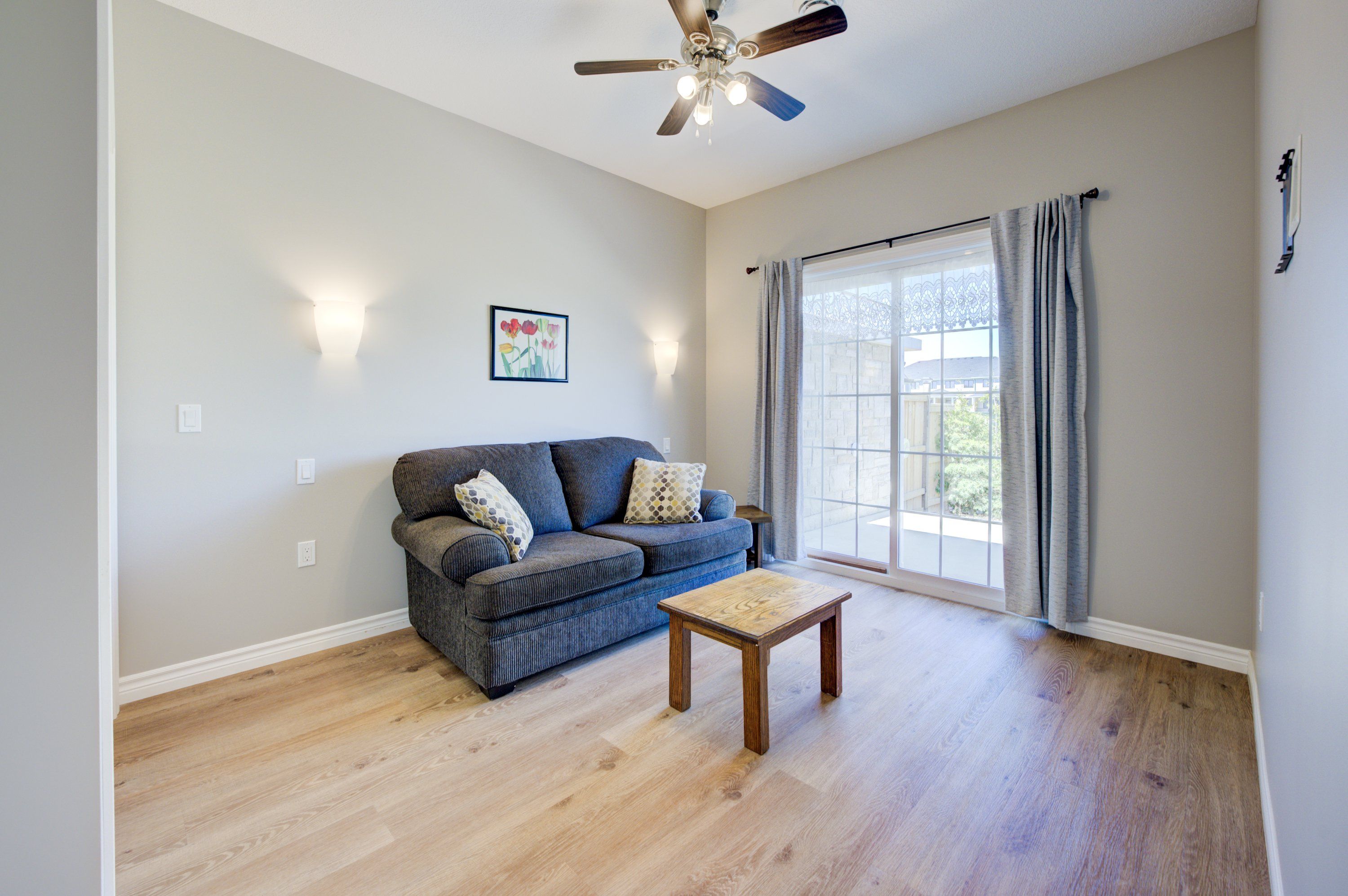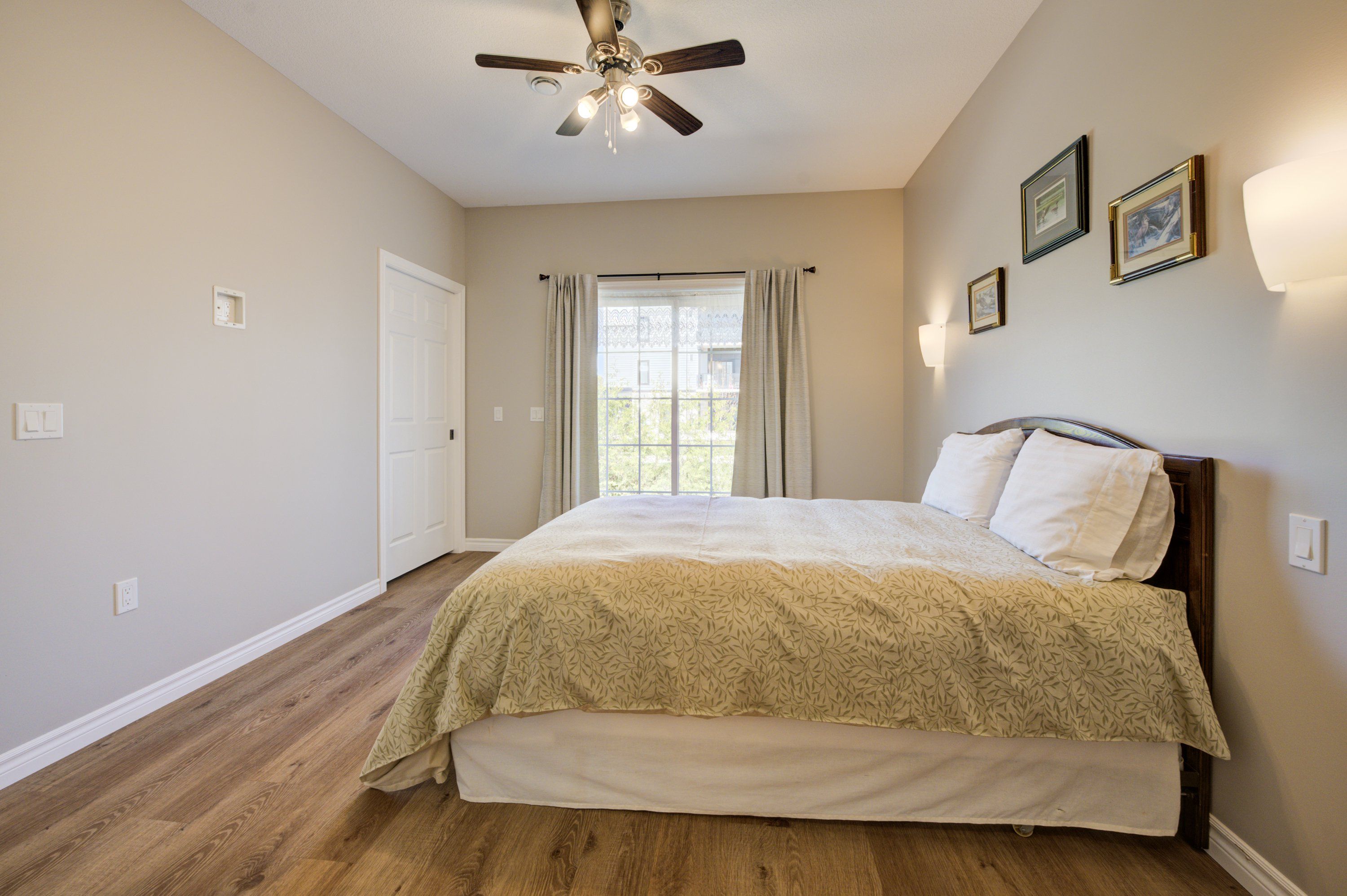 Welcome to this beautifully crafted 2-bedroom, 2-bathroom bungalow that offers the perfect blend of style, comfort, and accessible living. Designed with ease and functionality in mind, this home features wide, open spaces ideal for those seeking one-level, mobility-friendly living. The inviting living room boasts soaring vaulted ceilings and a cozy gas fireplace, creating a bright and welcoming space for relaxing or entertaining. The kitchen is a standout with sleek granite countertops and a dream walk-in pantry, perfect for home chefs. The spacious primary bedroom includes a walk-in closet, a private 3-piece ensuite, and sliding doors leading to a concrete patio and tranquil backyard. A second set of sliding doors from the guest bedroom also opens to this peaceful outdoor space. Additional features include gas forced air heat, luxurious gas in-floor heating, and central air for year-round comfort. The large attached single-car garage is fully lined in metal for easy cleaning, and the covered front porch includes a gas line for your bbq. This home combines practicality, elegance, and accessible design in one exceptional package.