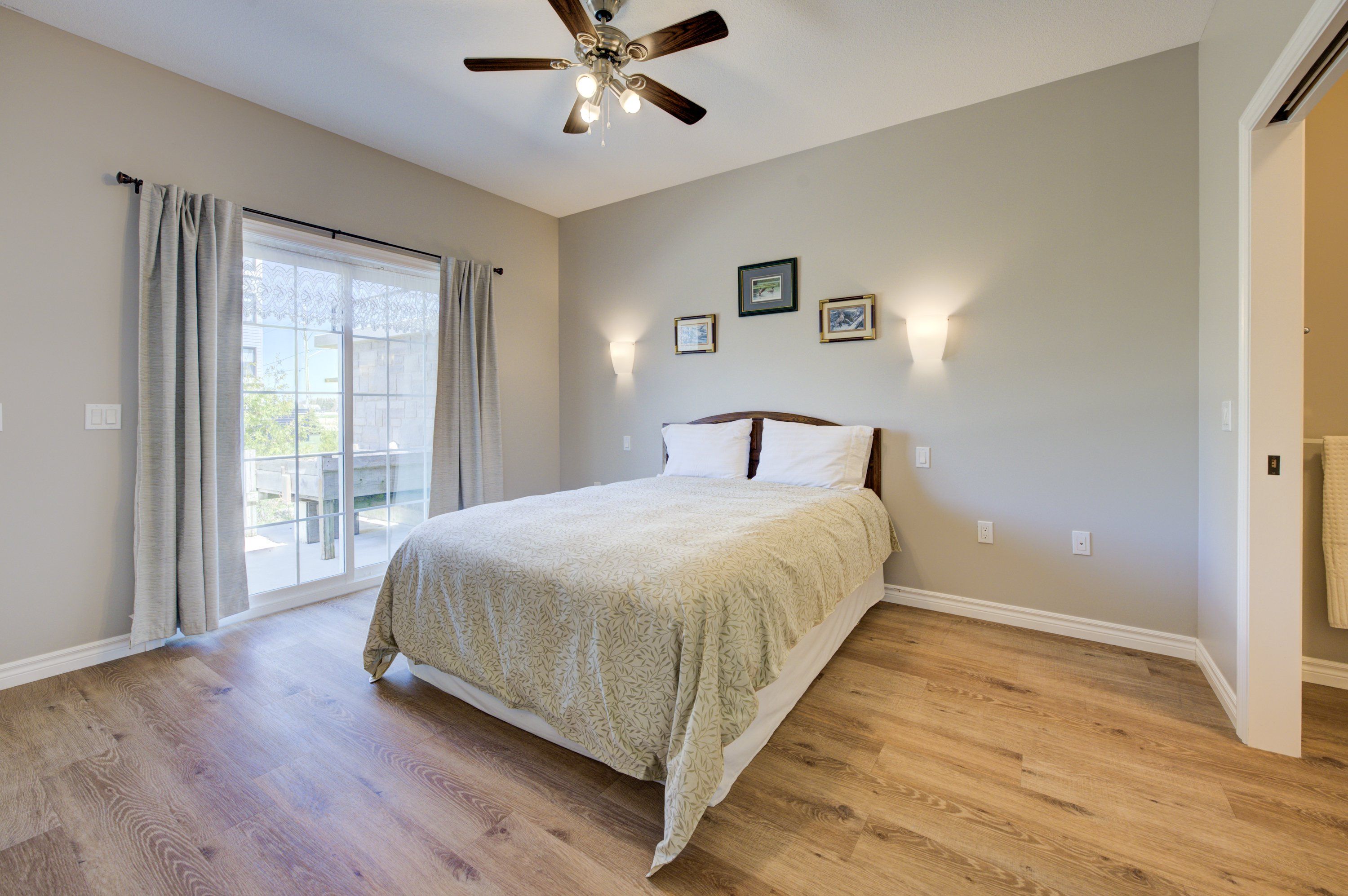 • Primary bedroom with ensuite, walk-in closet, and patio access.