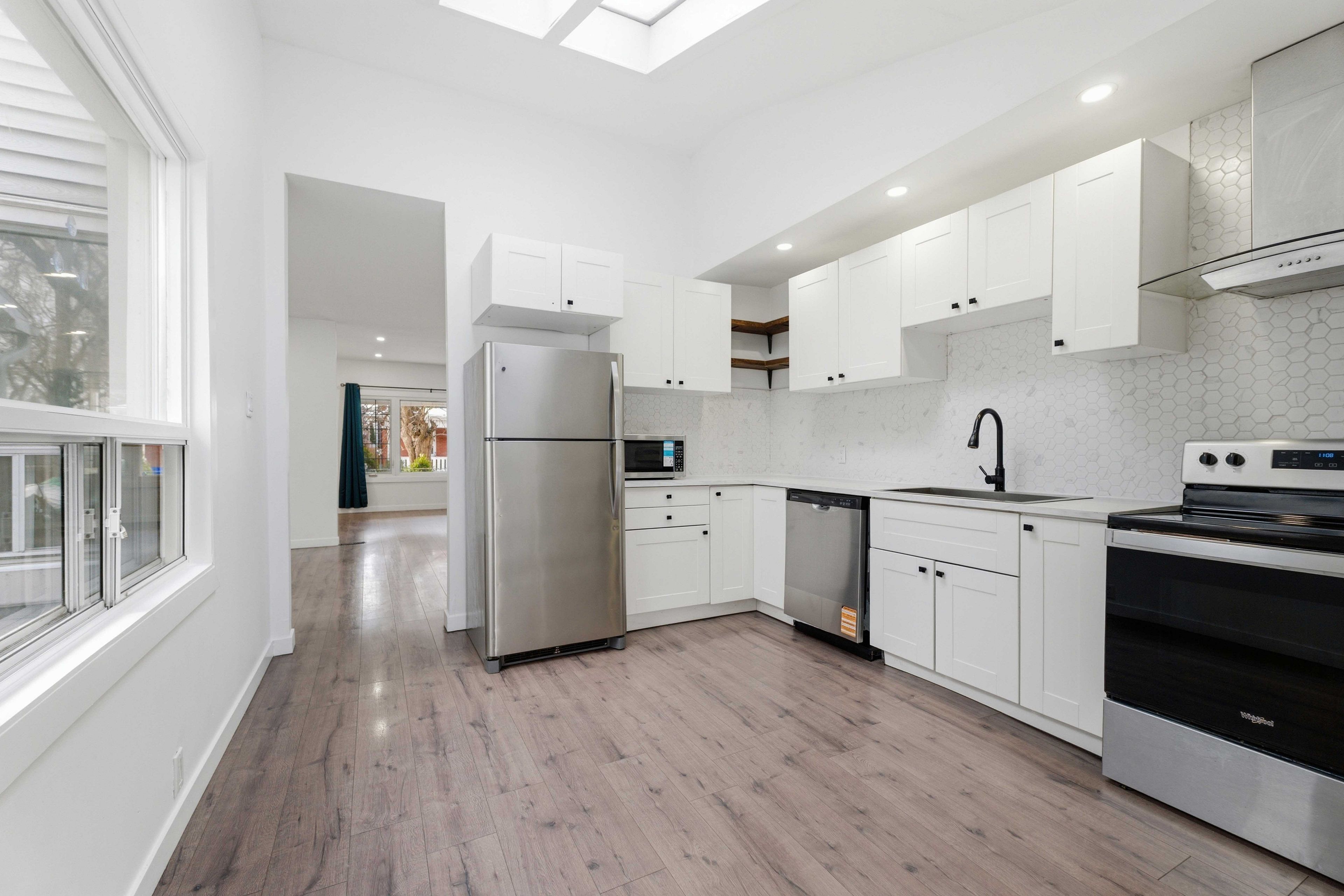 Updated 3 bedroom, 1. 5 bath home in hamilton's stipley neighbourhood. The main level features a bright, open living and dining area, convenient powder room, and a family room that connects to the renovated kitchen complete with vaulted ceilings, skylight, granite countertops, stainless steel appliances, and backsplash. The second level offers three well-sized bedrooms and an updated 4 piece bathroom. Additional highlights include updated flooring throughout the main and second levels, and a feature wall in the living room. Includes one parking space.