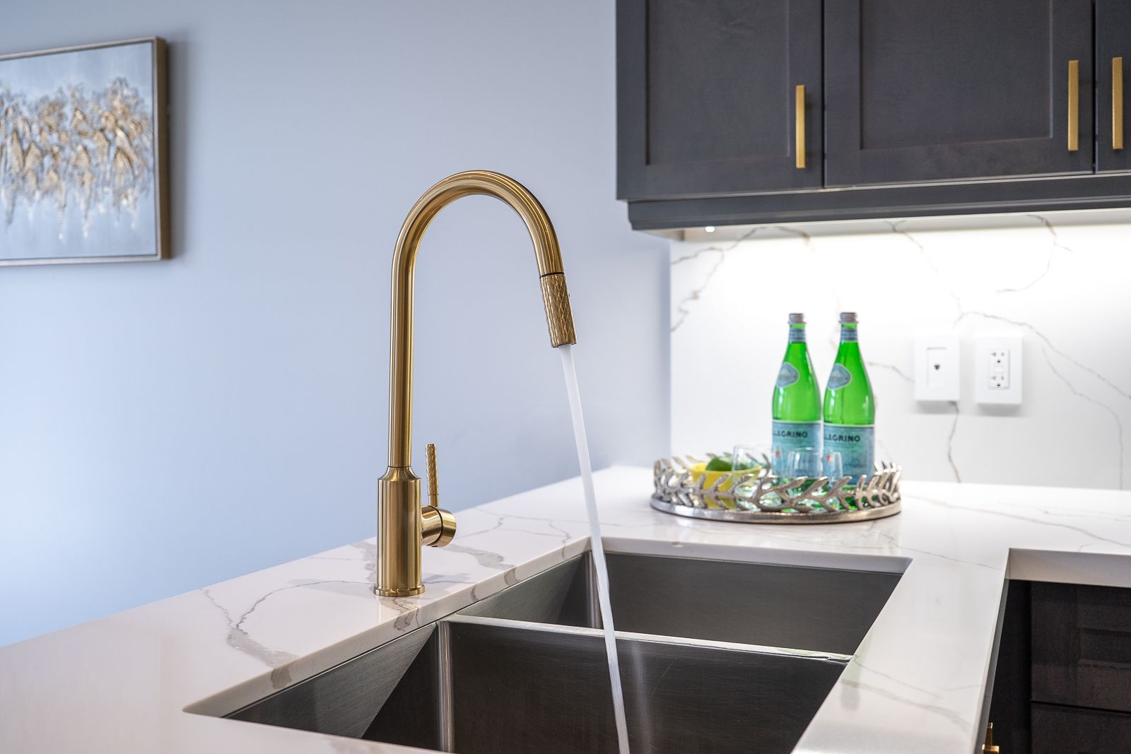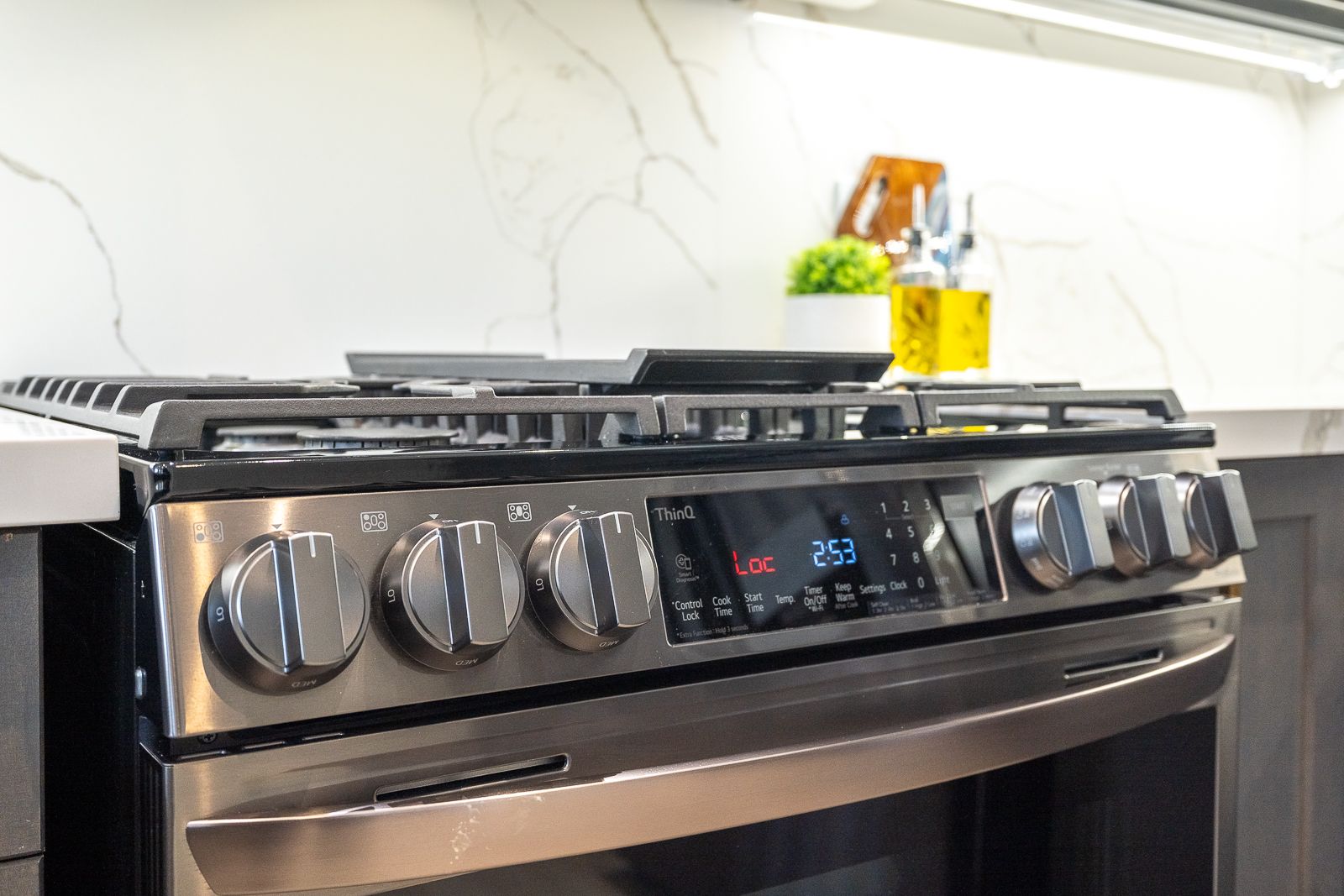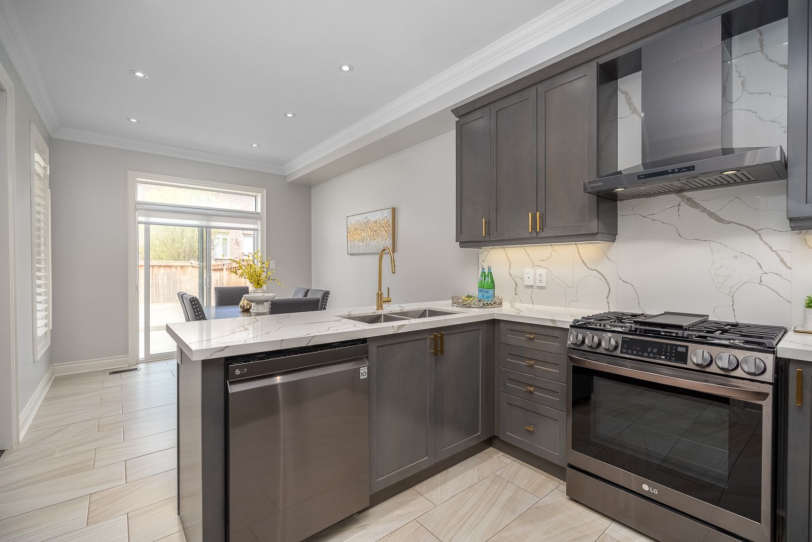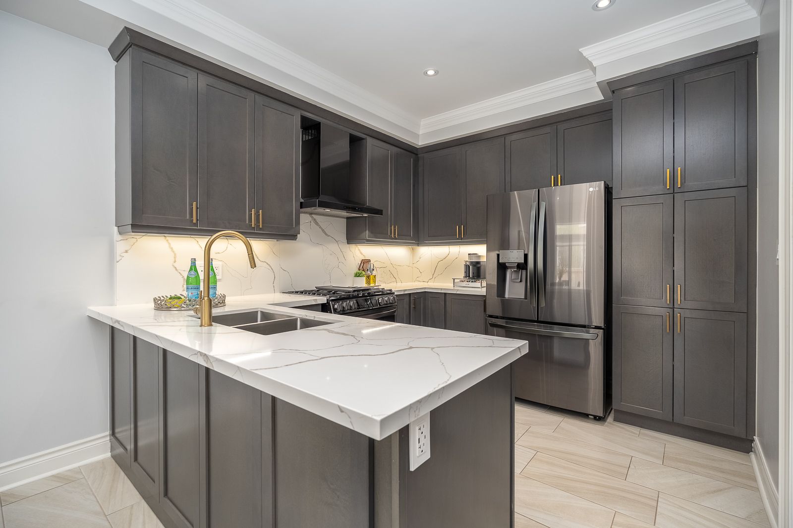 • Designer kitchen featuring quartz countertops and modern appliances.