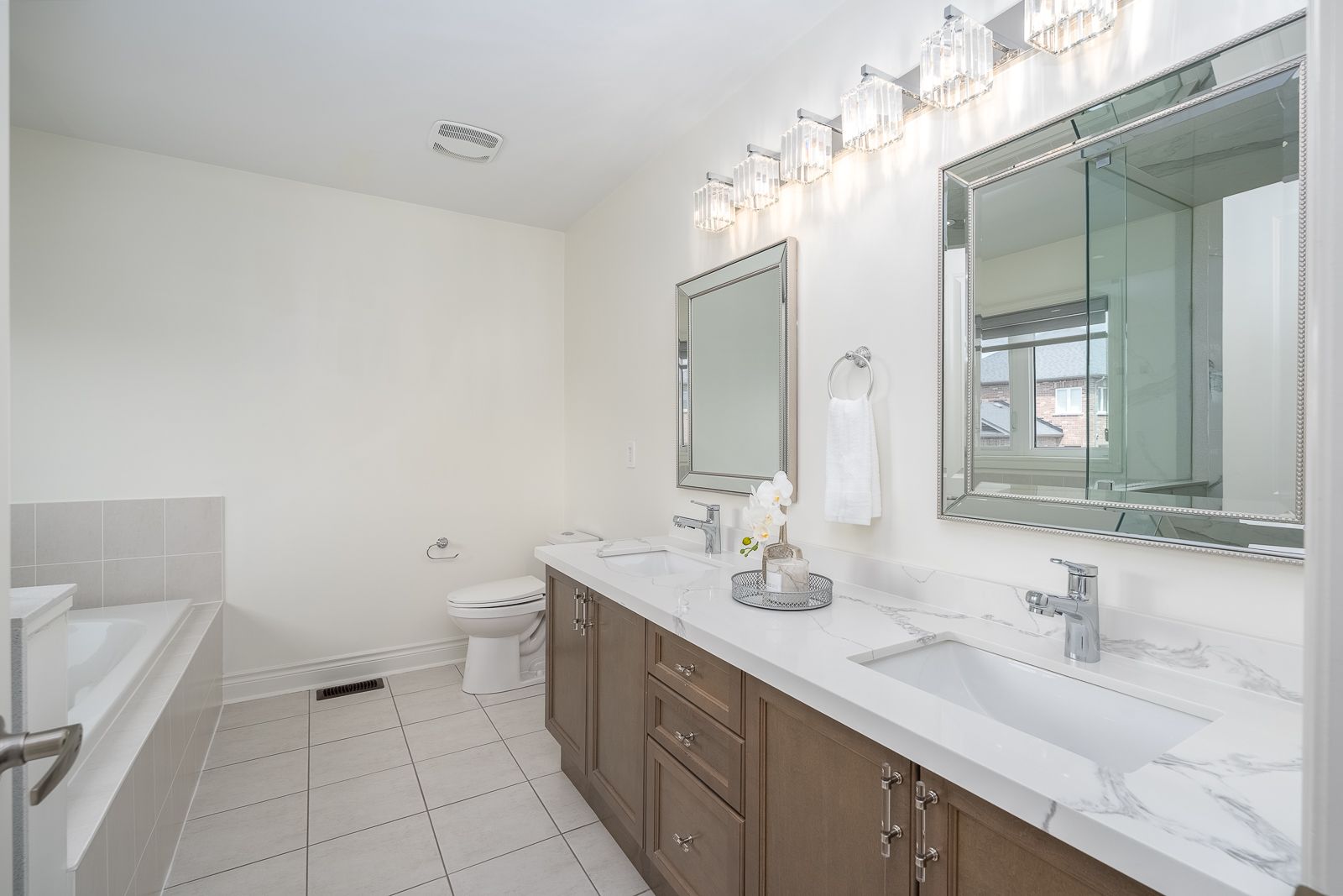 Situated on a quiet crescent with minimal through traffic and surrounded by detached homes, this semi is located in one of bradford's most desirable family-friendly neighbourhoods. Immaculately maintained, carpet-free home offering just under 2,000 sq ft of upgraded living space offers a seamless blend of modern design and everyday functionality. Featuring continuous hardwood flooring throughout, the home delivers a clean, cohesive feel with no detail overlooked. A bright and inviting layout welcomes you with a sunken foyer and a large double closet, leading into spacious principal rooms filled with natural light. The separate dining room provides a defined space for entertaining, while the family room is highlighted by a large curved bay window, creating a warm and airy atmosphere throughout. The heart of the home is a stunning designer kitchen, complete with quartz countertops and a full-height seamless quartz backsplash, upgraded cabinetry, elegant hardware, and a gas range with modern appliances-ideal for both everyday living and entertaining. The spacious primary suite offers a private retreat with a beautifully upgraded ensuite featuring a custom frameless glass shower, double vanity, and a walk-in closet with built-in organizers. All bathrooms are finished with quartz countertops, creating a consistent, elevated finish throughout. A large and conveniently located second-floor laundry room adds everyday practicality with ample storage. Exterior highlights include an extended driveway, exterior pot lights, and direct access to a finished garage with epoxy flooring. No rental equipment. Carpet-free. Move-in ready and shows exceptionally well. Close to top-rated schools, parks, golf, and everyday amenities.