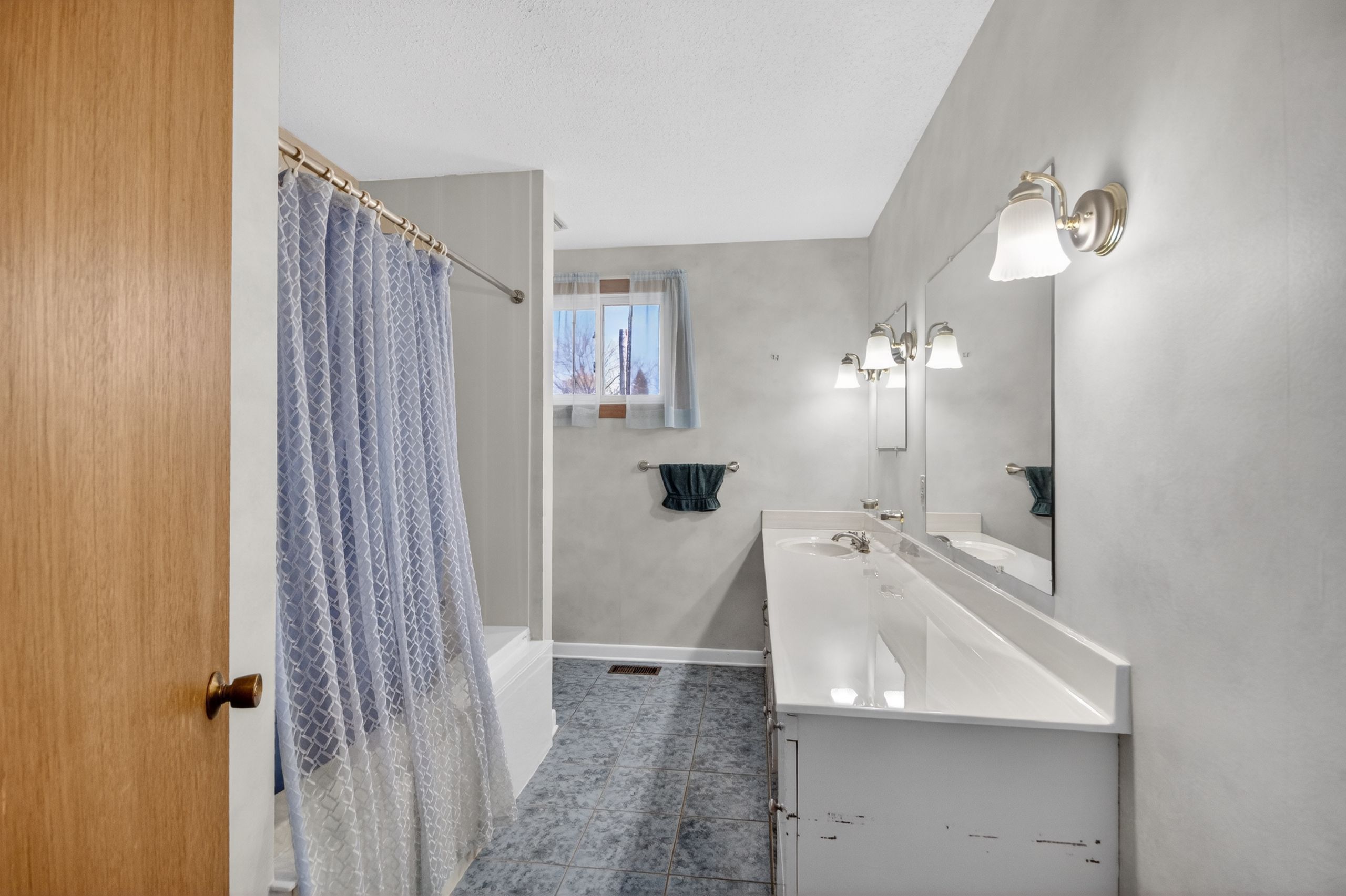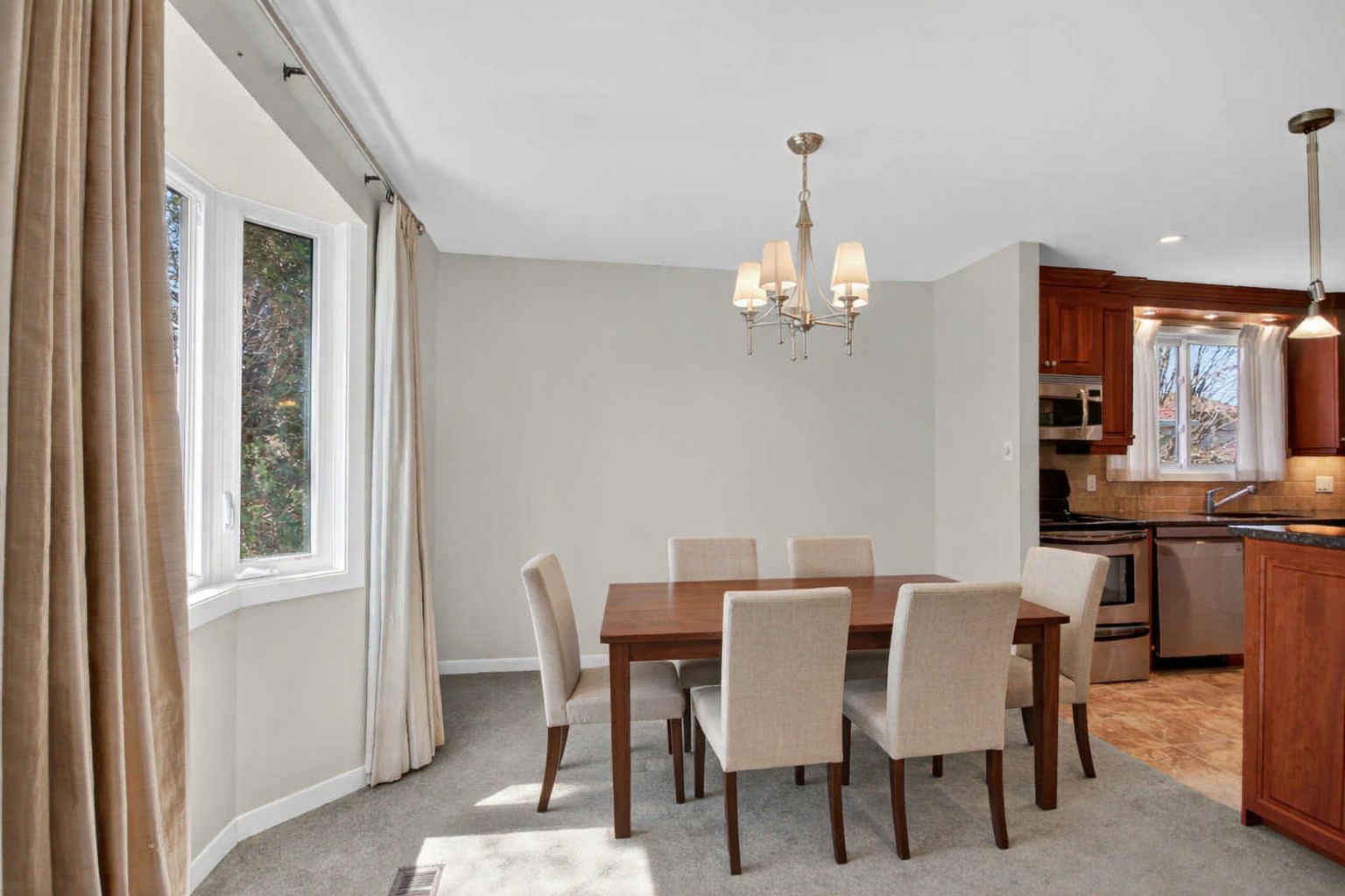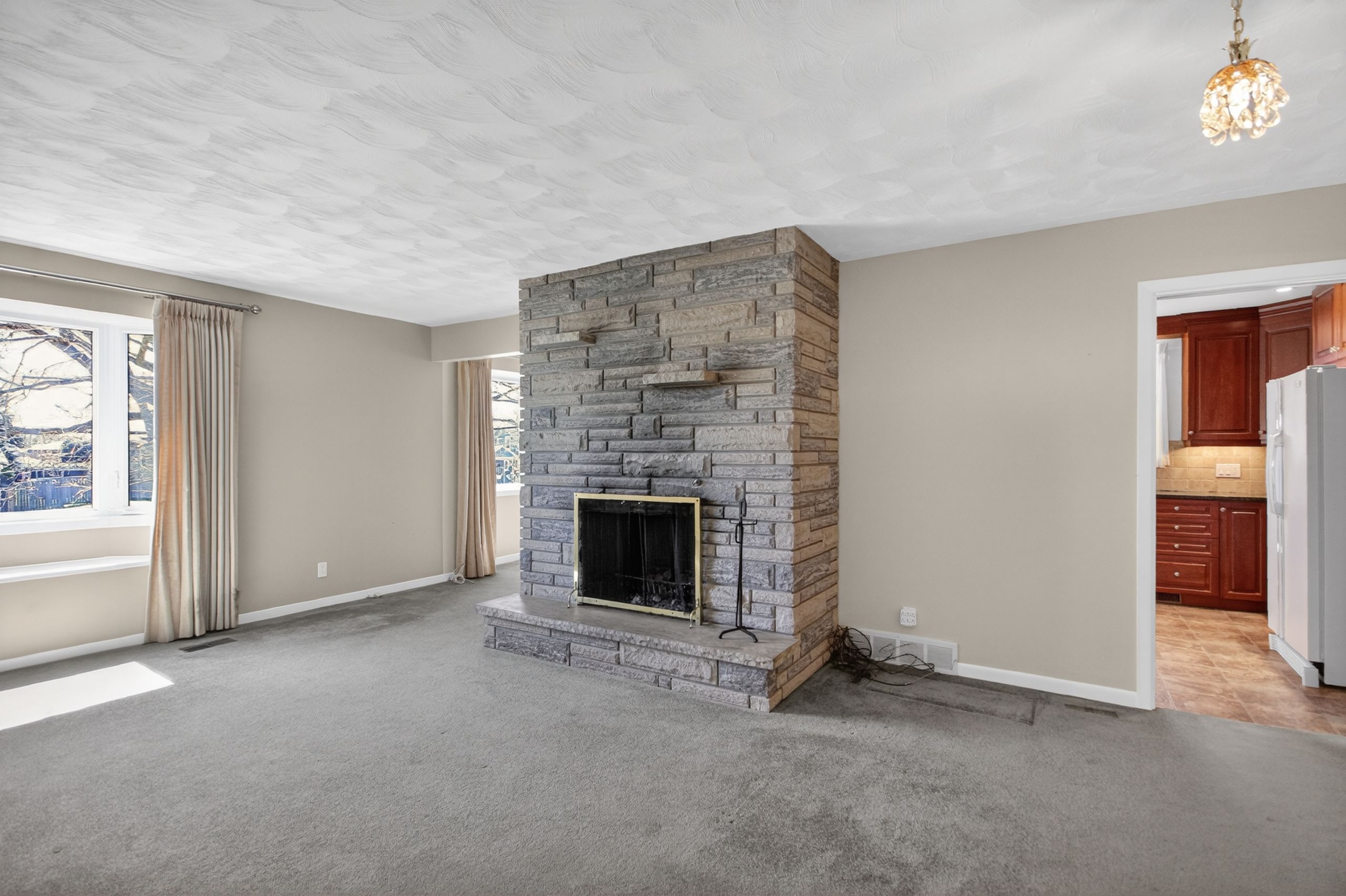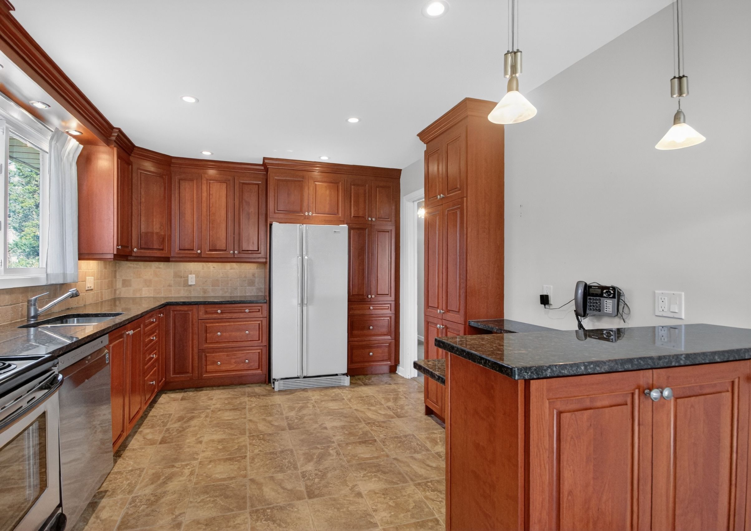 • Updated kitchen with granite countertops and ample cabinet space.