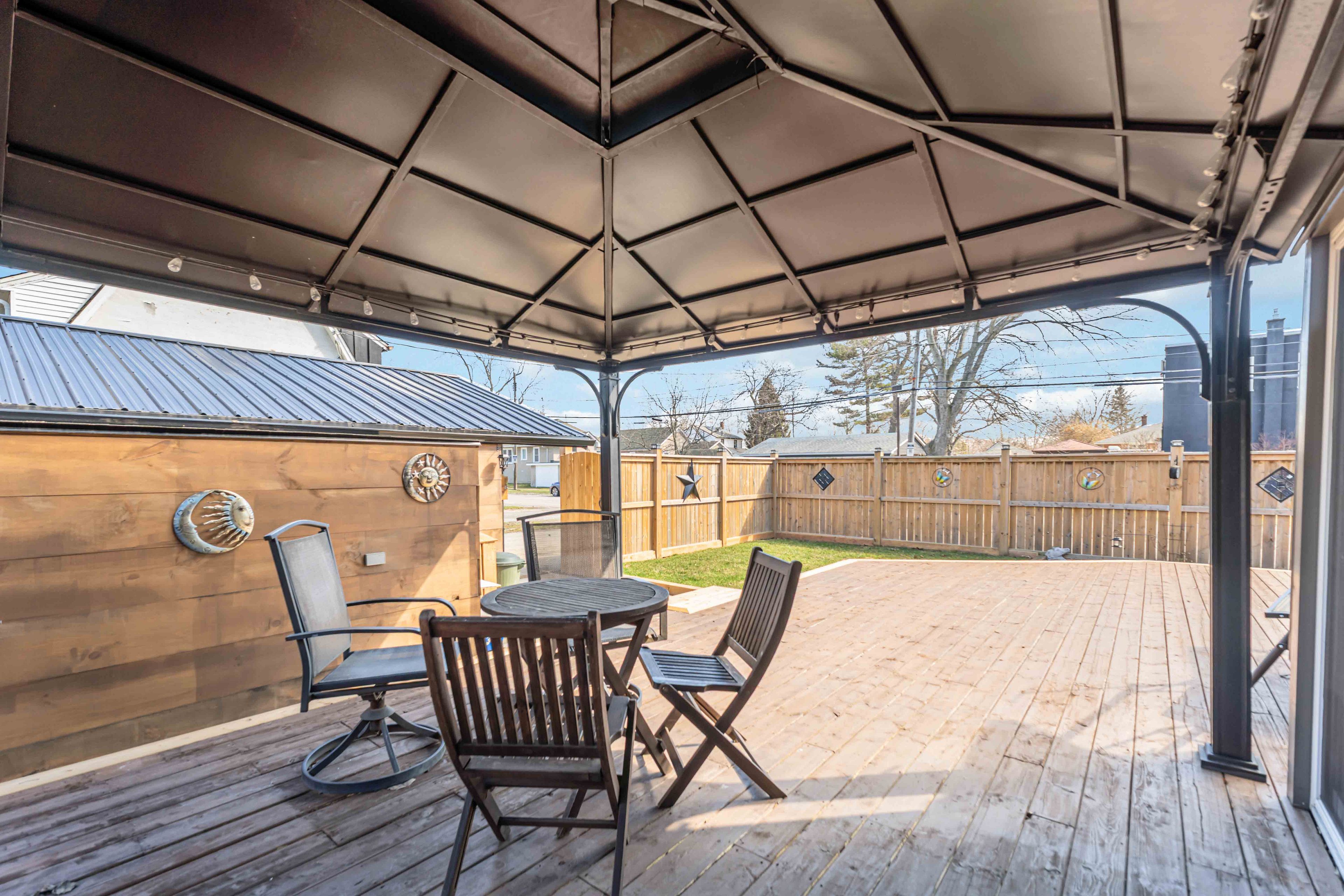 Welcome to this sweet 3 bedroom /2 bath home perched on a great corner lot in the sugarloaf area of port colborne, just a few minute walk to hh knoll park and marina on the shore of lake erie. Lots of updates here over the years. Has a cozy yet modern feel throughout. Plenty of windows with lots of southern exposure in the open floor plan kitchen/dining/living area making it bright and airy and great for relaxing or entertaining. Lots of counter space and cupboards making it a great working kitchen too. Primary bedroom as well as a 4 piece bath complete the main floor and upstairs are two more bedrooms, great for the kids, company, playroom, office. The ground floor den/sunroom area has been recently updated with a new separate heat/ac unit as well. A great space to lounge with a walk out to lovely large deck and gazebo in the fenced private yard. The lower level has a wet bar/hollywood kitchen in the rec room as well as a 3 piece bath and large workshop/storage/laundry room. The fenced yard is nicely landscaped and private with access to side street as well as the driveway/detached garage with heat and hydro making a great workshop or parking spot. Central location, close to schools, parks, shops, grocery, bus route and the lovely west street shops that run along the welland canal. Come see this home and the sweet neighbourhood it is in... It may be just what you have been waiting for!