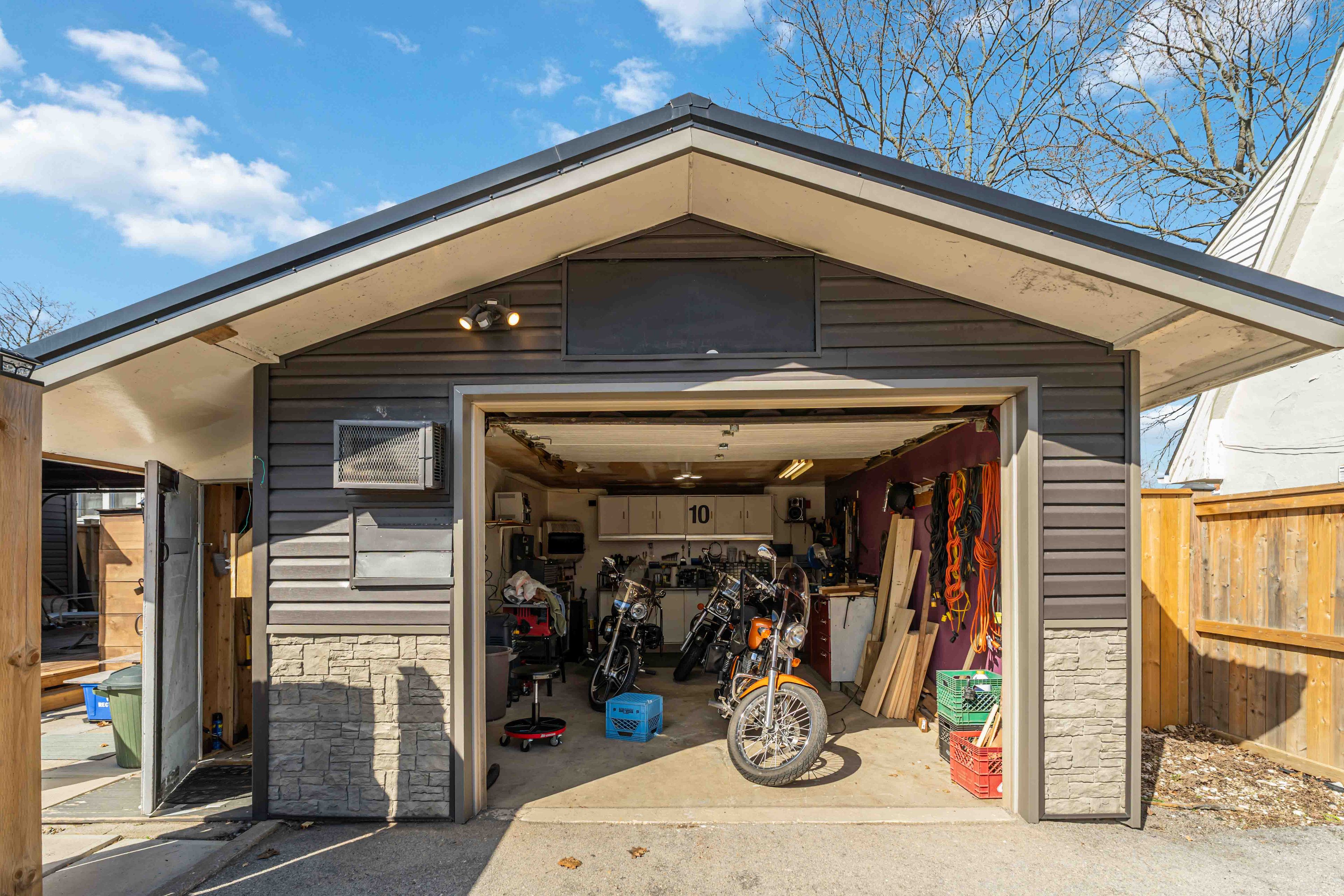 • Private, landscaped fenced yard with gazebo and workshop in the garage.