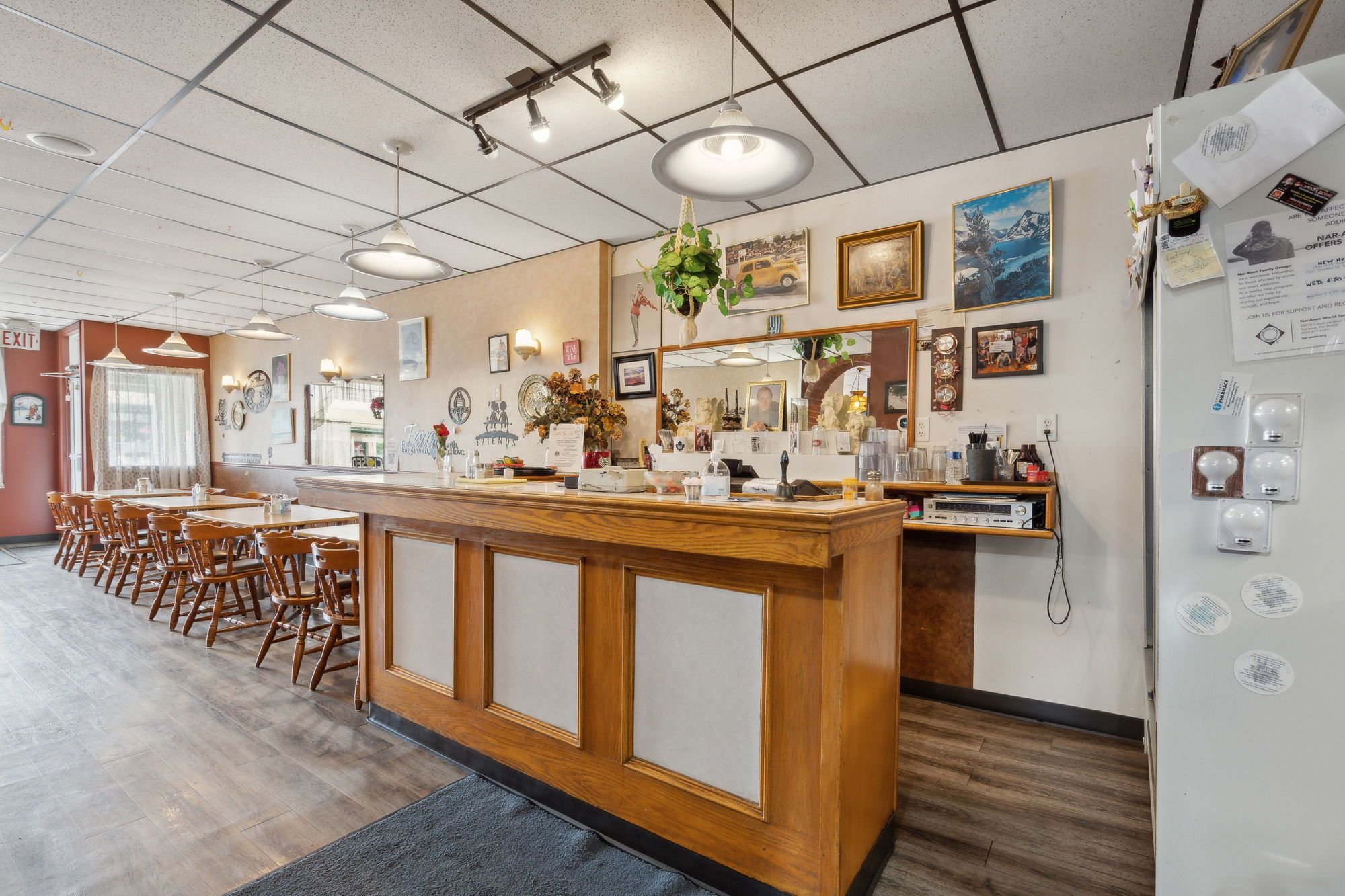 Exceptional commercial opportunity in embro! Seize the chance to own the only restaurant in the village with this prime corner property on commissioner street. This well-loved, family-style establishment, seating up to 98 guests, enjoys high visibility and ample parking, making it a favourite for locals and a magnet for passing traffic. Conveniently located near london, ingersoll, woodstock, and stratford, its perfectly positioned to attract a broad customer base. The restaurant comes fully equipped with all the necessary tools and appliances for a thriving business, ensuring a smooth transition for new ownership. It also features a seasonal ice cream shop and a newer outdoor patio! The property also includes a vacant 2-bedroom, 1-bathroom apartment on the upper level, ideal for immediate rental or personal use. Additionally, theres a second framed unit upstairs that can be converted into another apartment or expanded for a larger living space. This is an ideal investment for those looking to run a successful community restaurant while benefiting from residential rental income. The perfect opportunity for an ambitious restauranteur ready to grow a thriving business or an investor seeking a valuable asset, this listing offers a unique opportunity to tap into both commercial and residential markets in a vibrant, small-town setting.