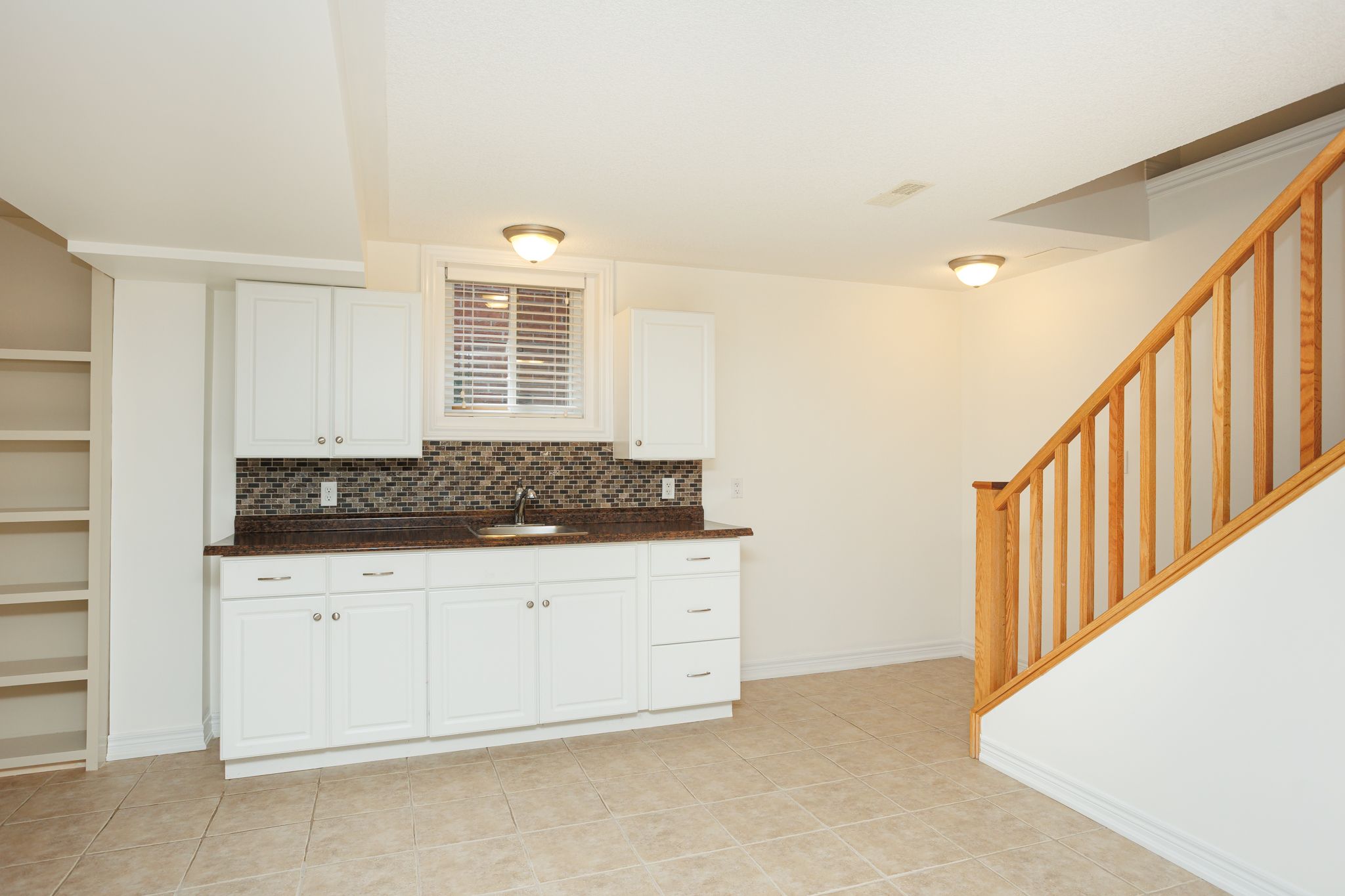 • Lower level has kitchenette and living room with gas fireplace and storage.