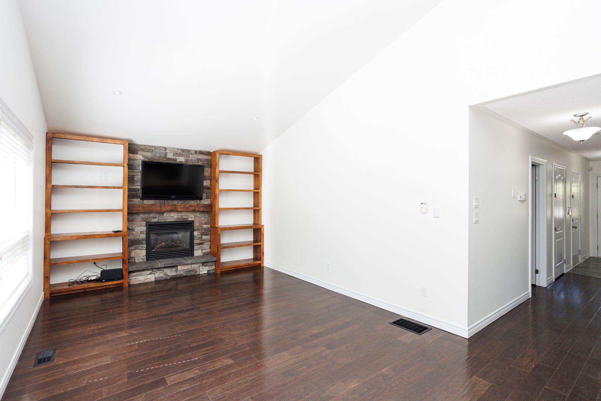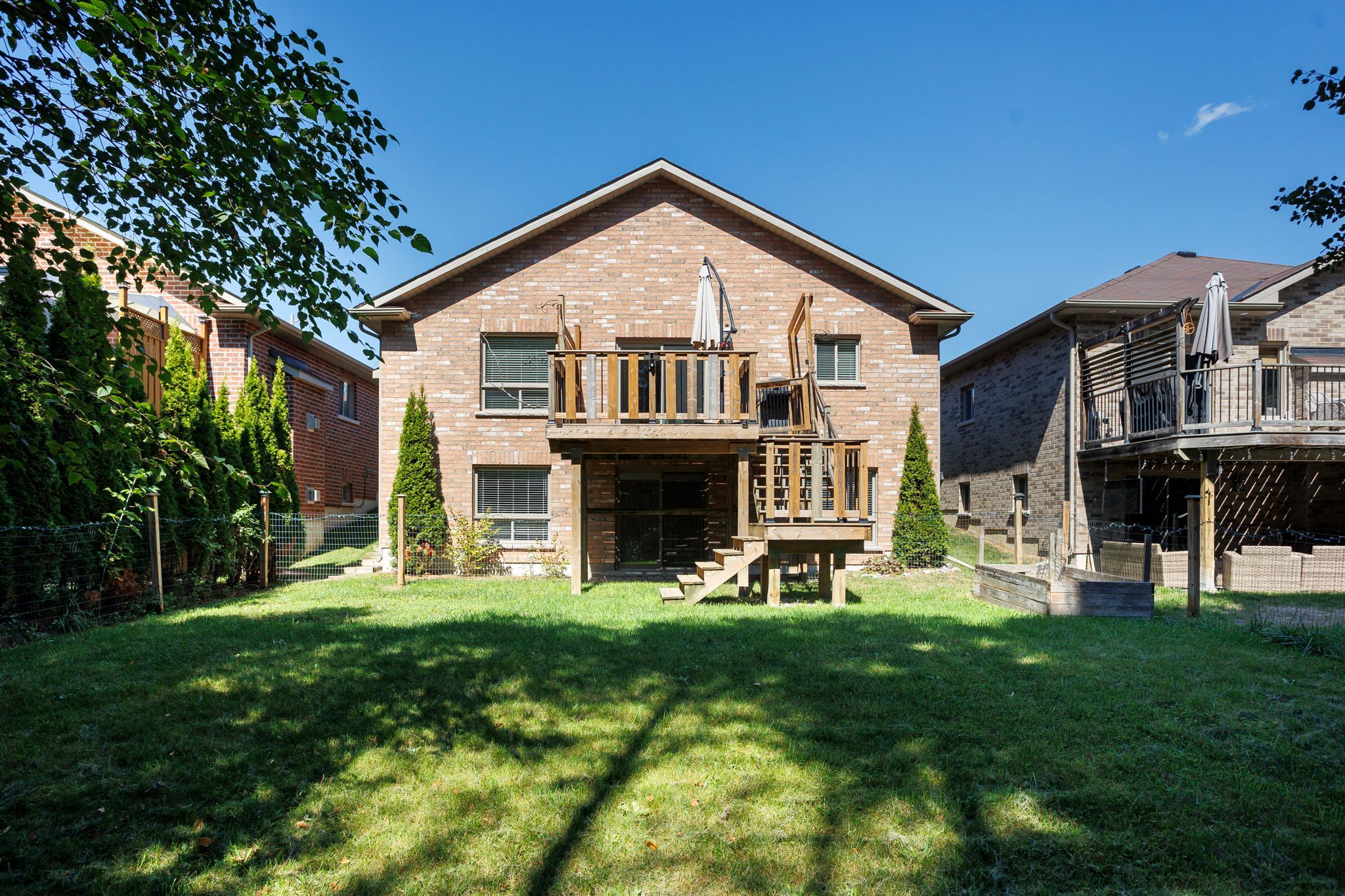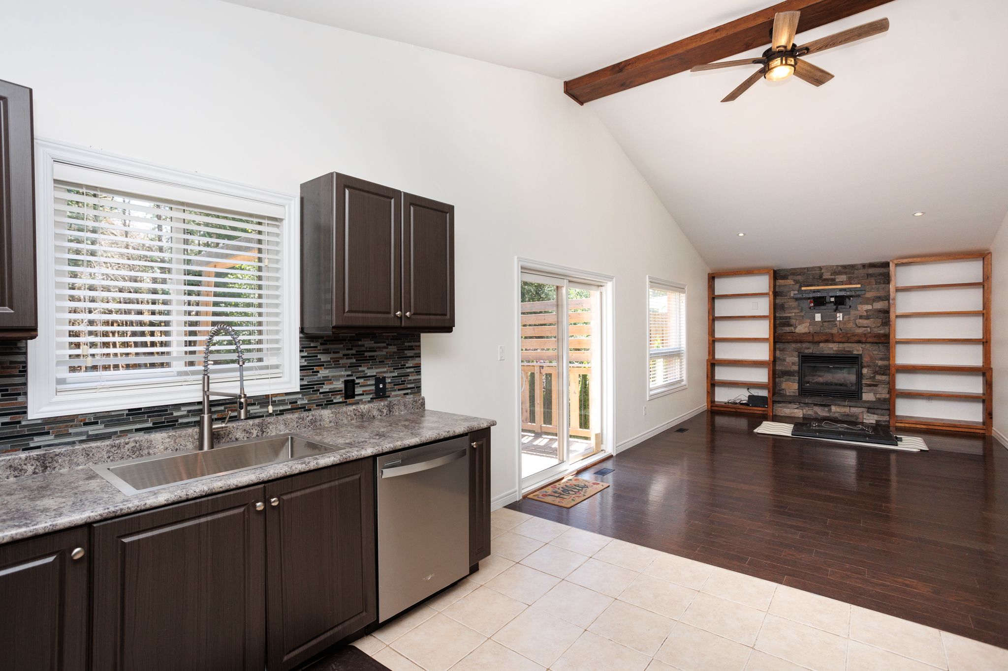 • Spacious main floor with vaulted ceilings, gas fireplace, and backyard deck.