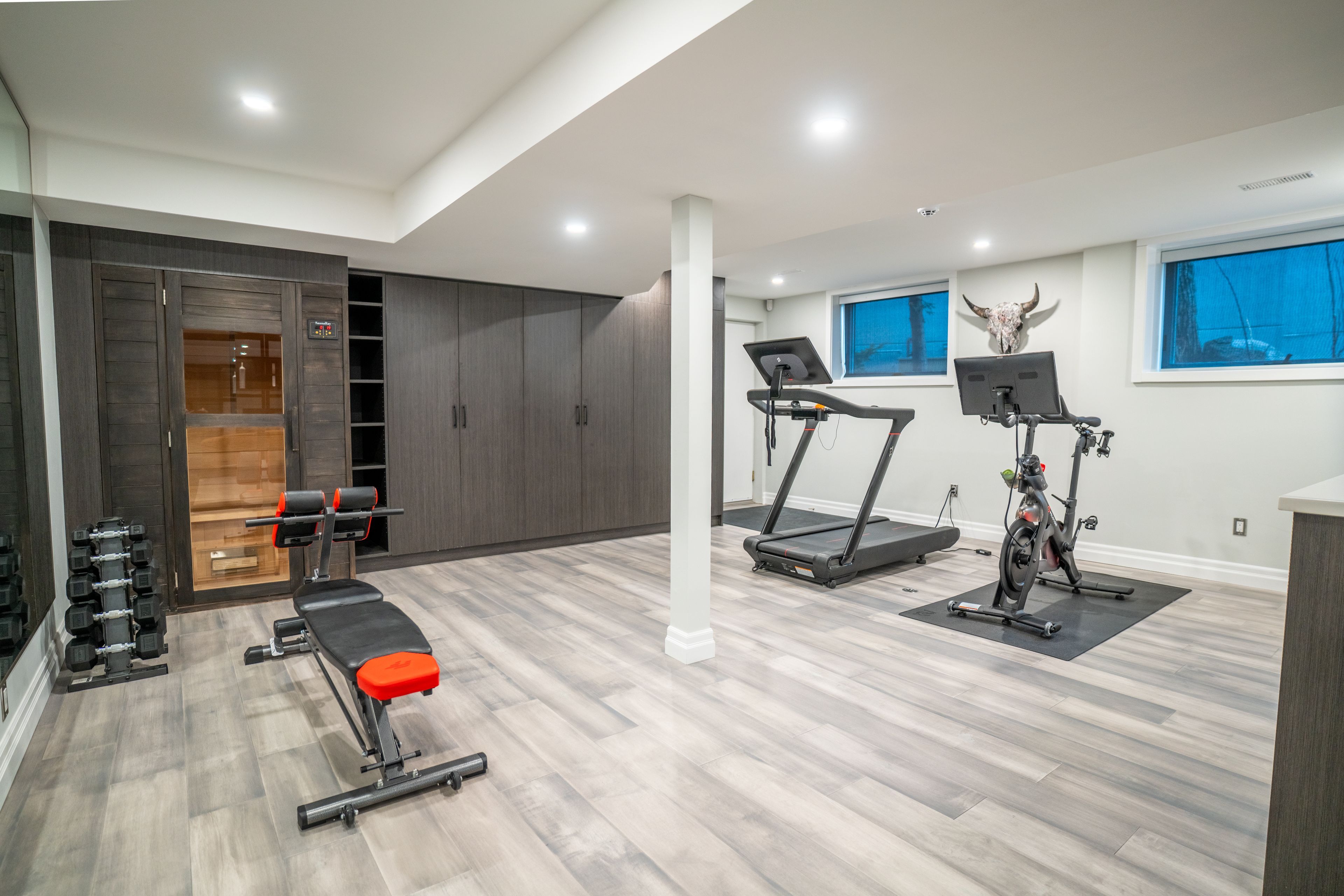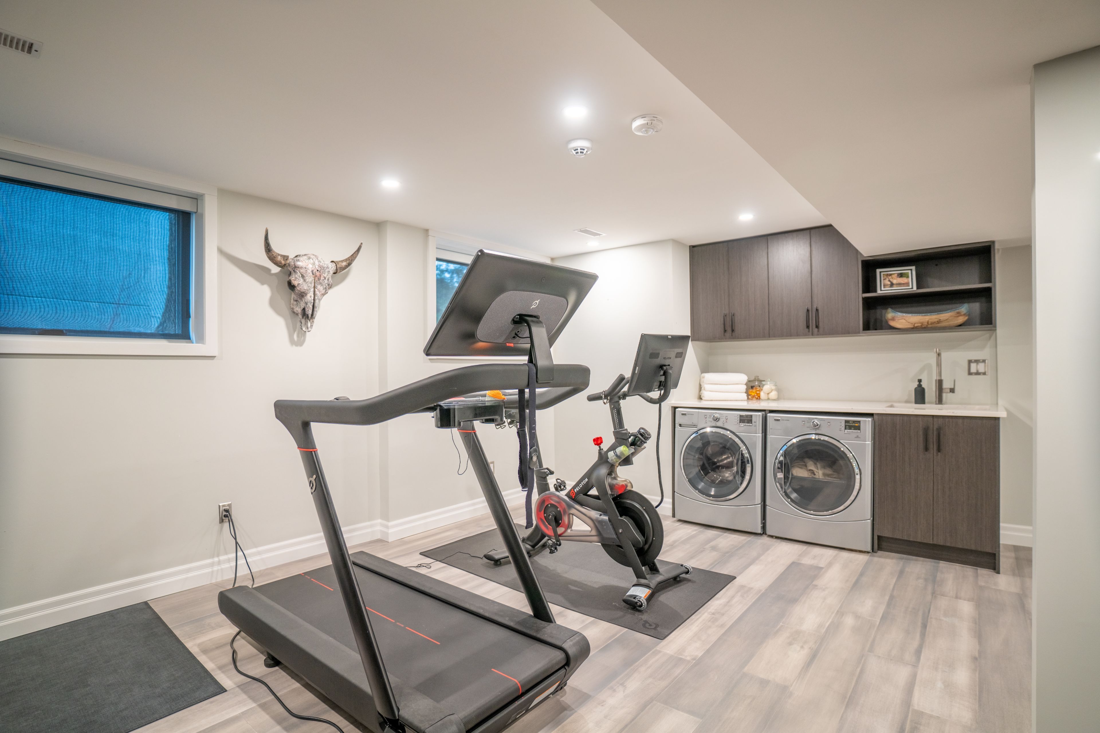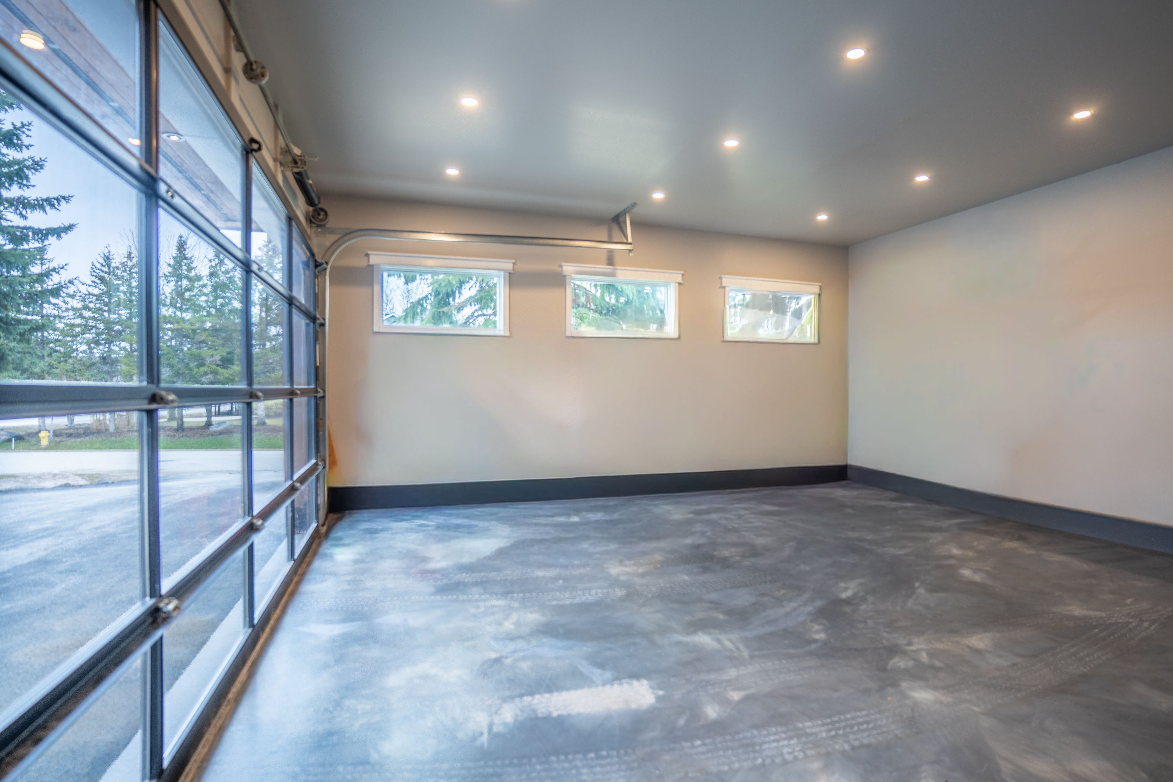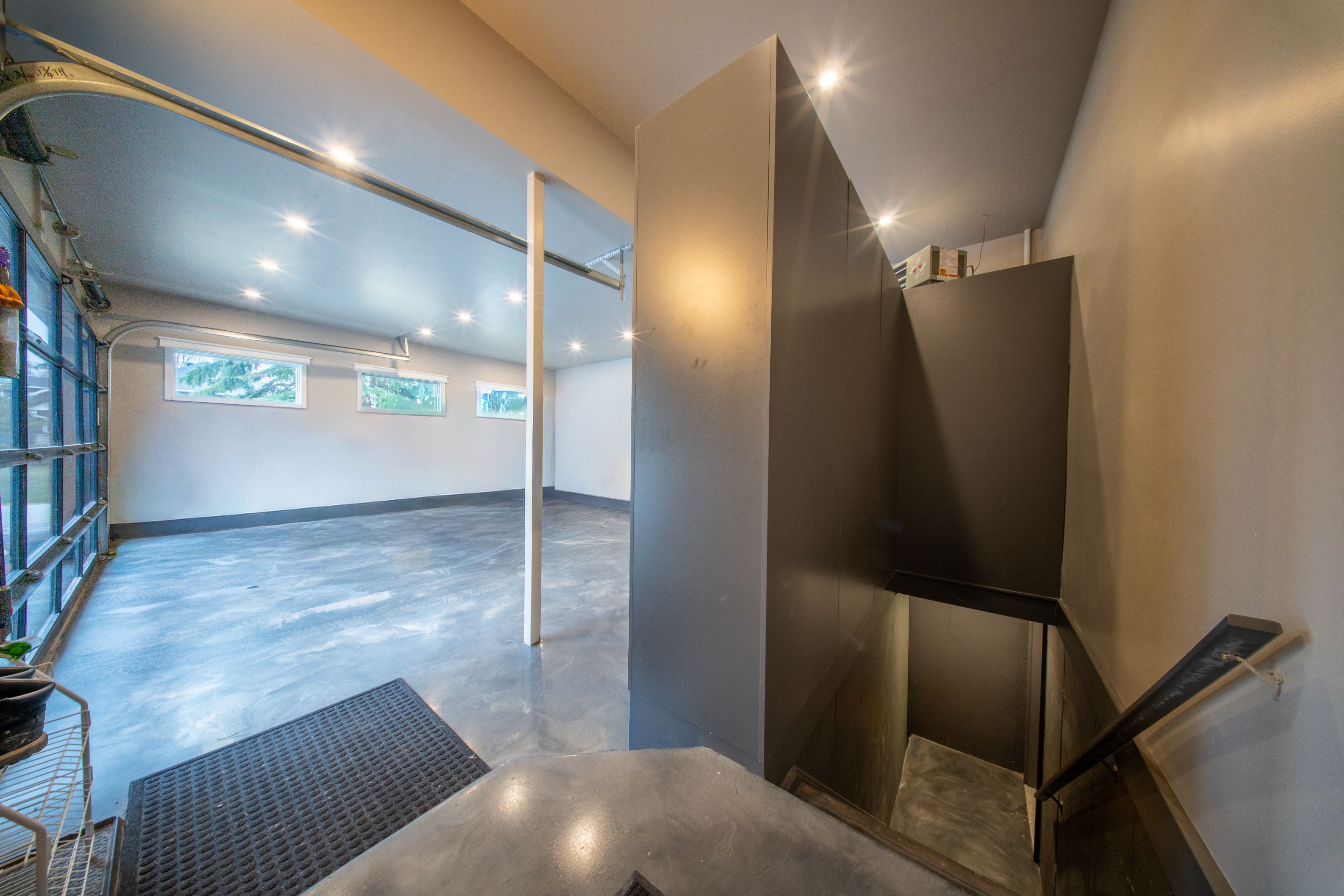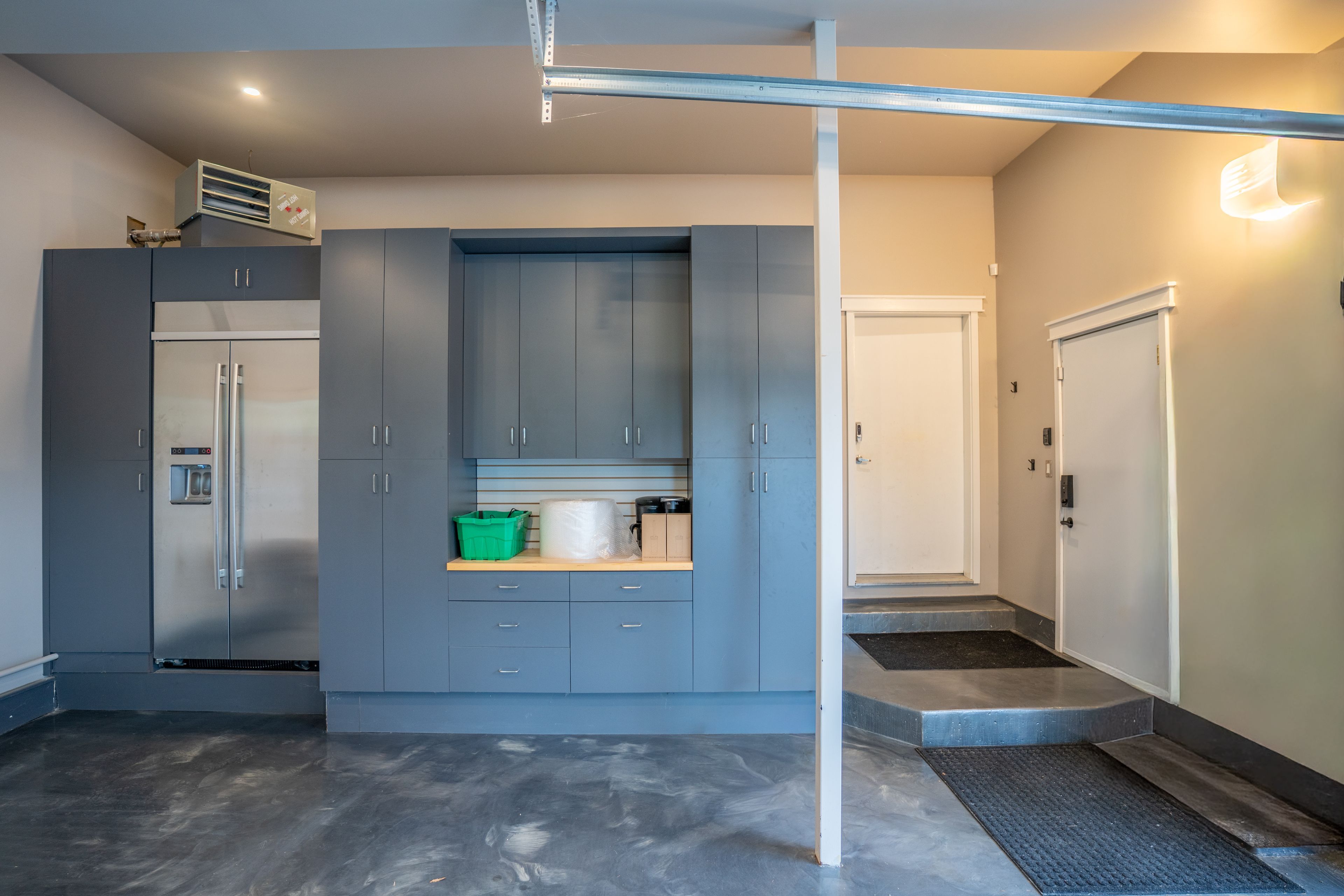 • Heated two-car garage is fully equipped with modern amenities and extra storage.