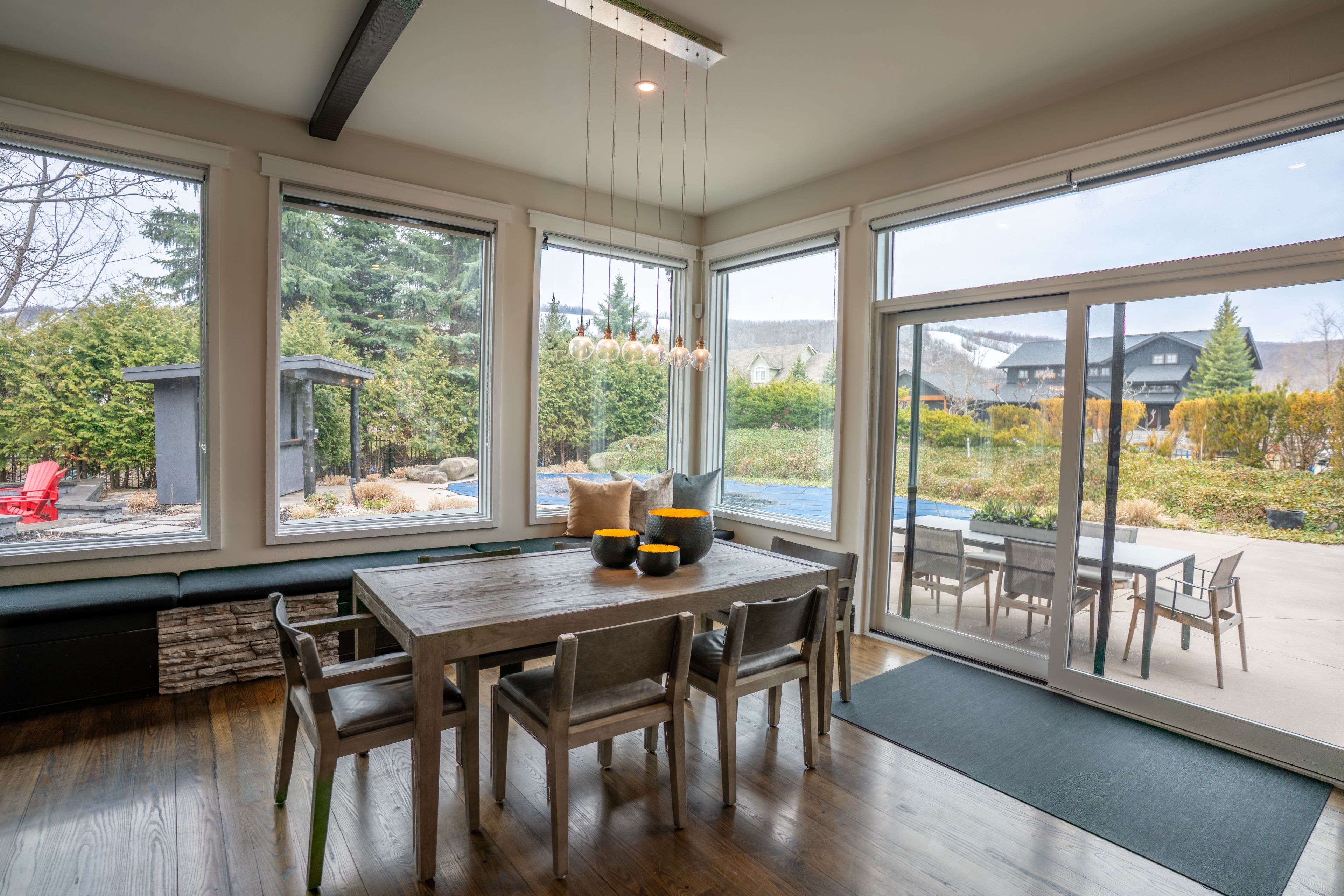 • Stunning views of ski hills from most rooms and the large upper deck.