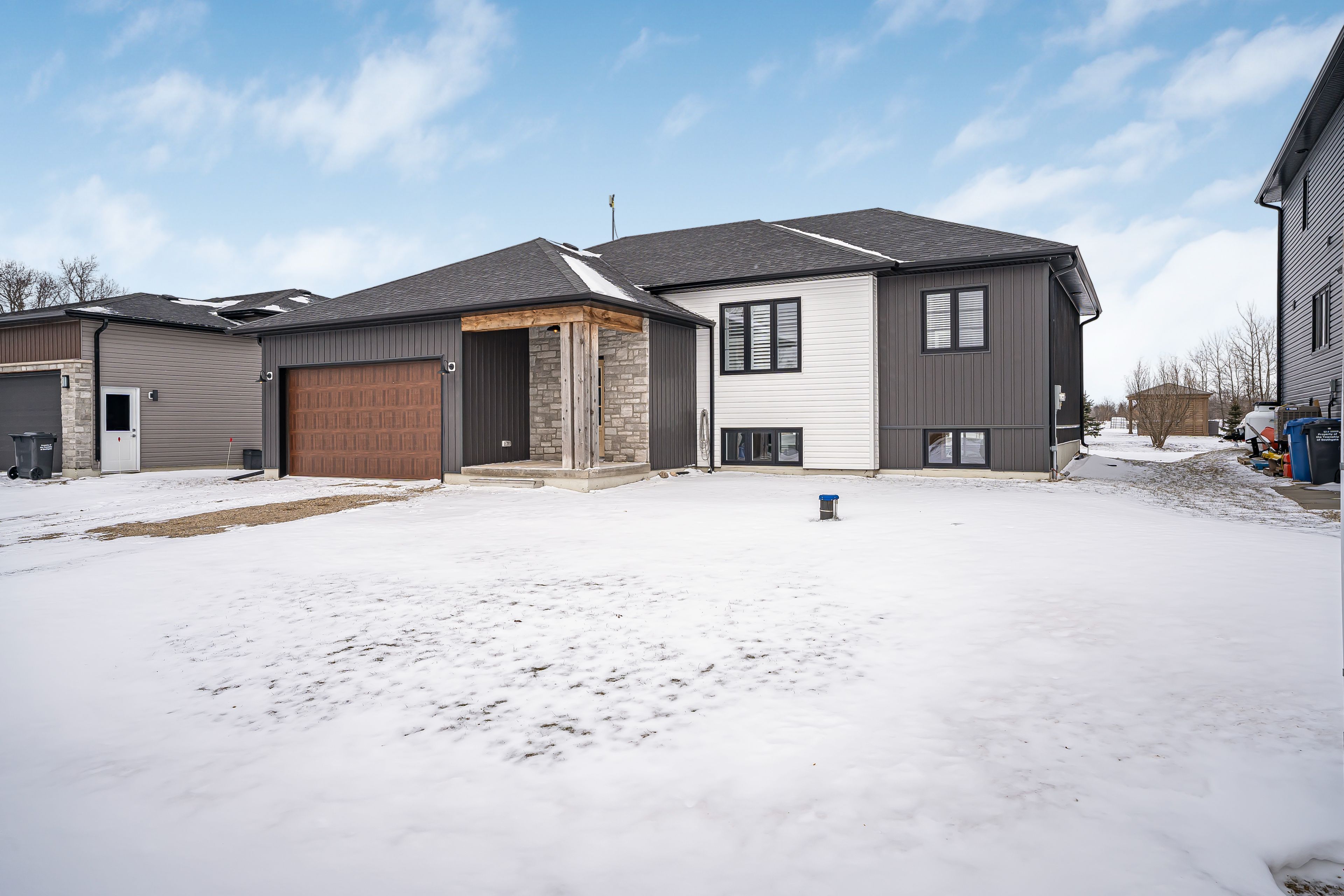 Custom built! Open concept 3 bedrooms raised bungalow. Enter from your covered front porch into your foyer which will give you access to your garage. The main floor is complete with open concept living / dining & kitchen areas. Primary bedroom with walk-in closet and 3pc ensuite with walk-in shower. Laundry closet on main floor. 2 other good sized and well apointed bedrooms & full 4 pc bathroom. No carpeting - vinyl plank flooring. Central vac r/i and r/i for bathroom on lower level. Partially finished bright lower level with above grade windows and separate side entrance. Room to grow for the family & extended family - a place to call home.