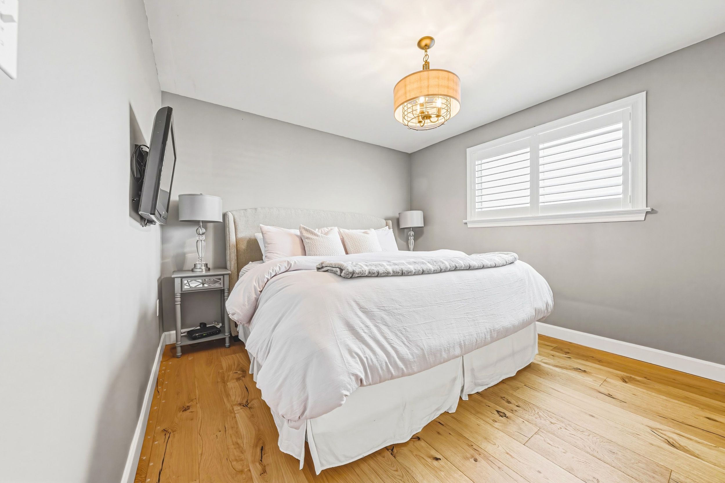 • Bright open-concept living and dining area with engineered hardwood floors.