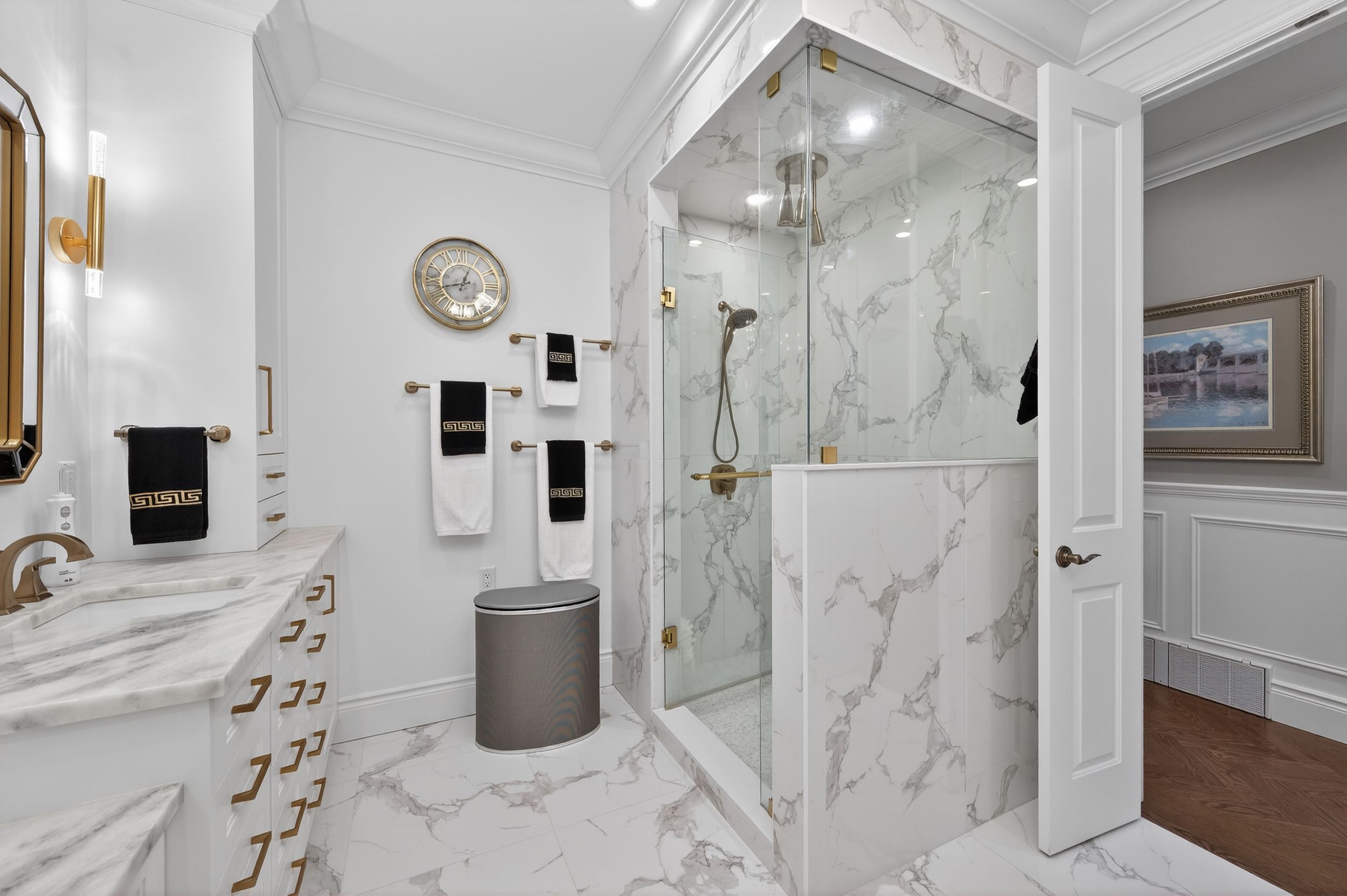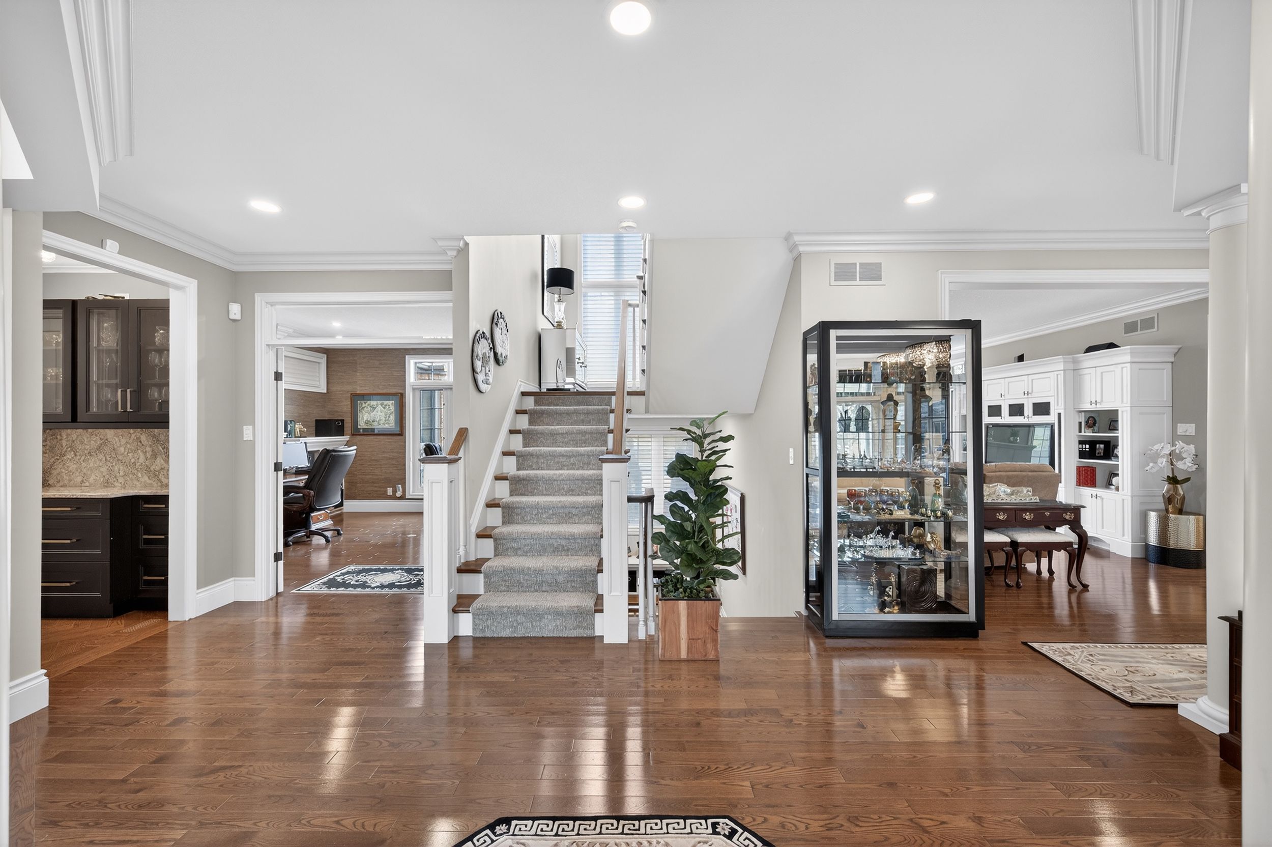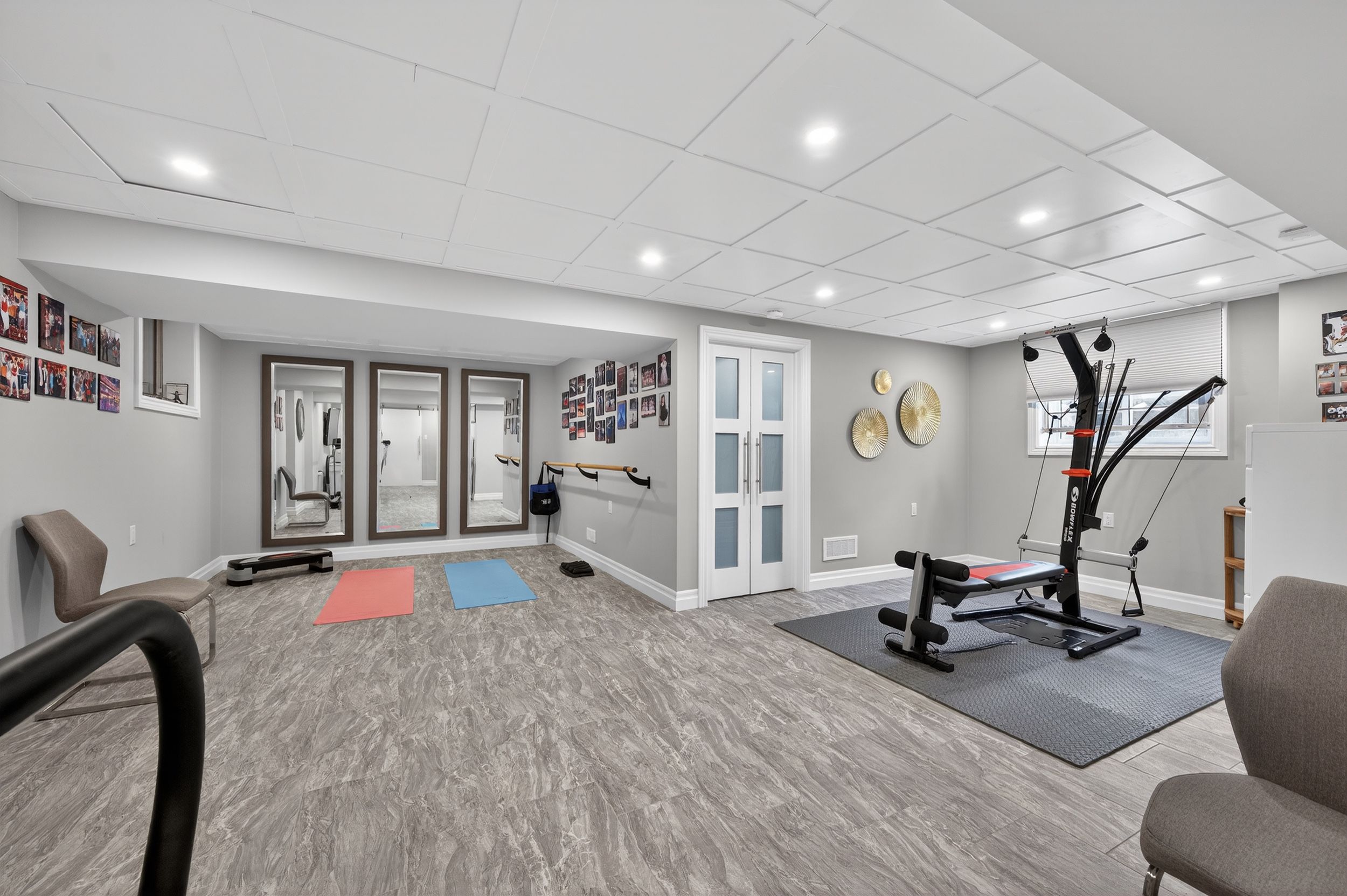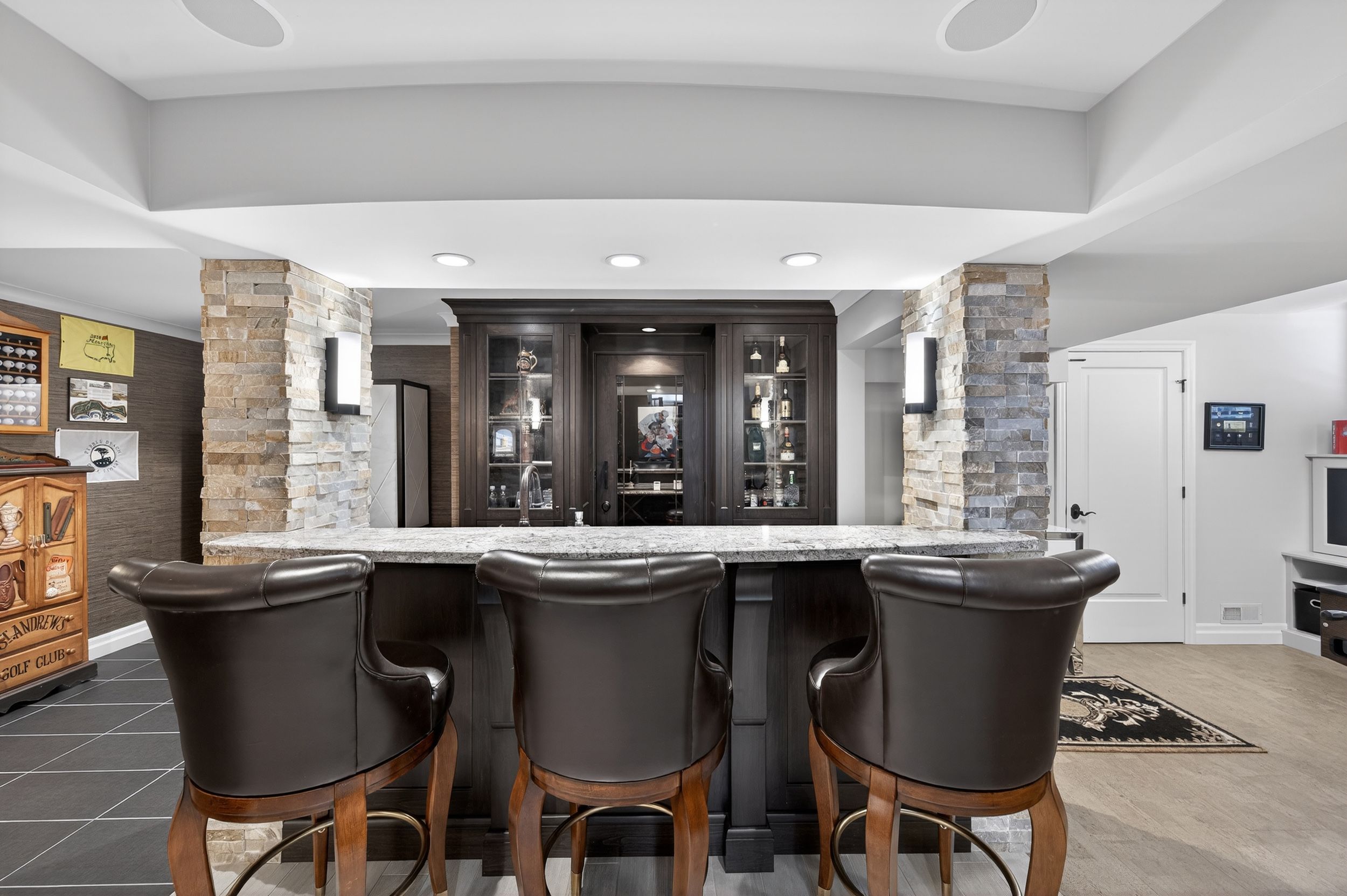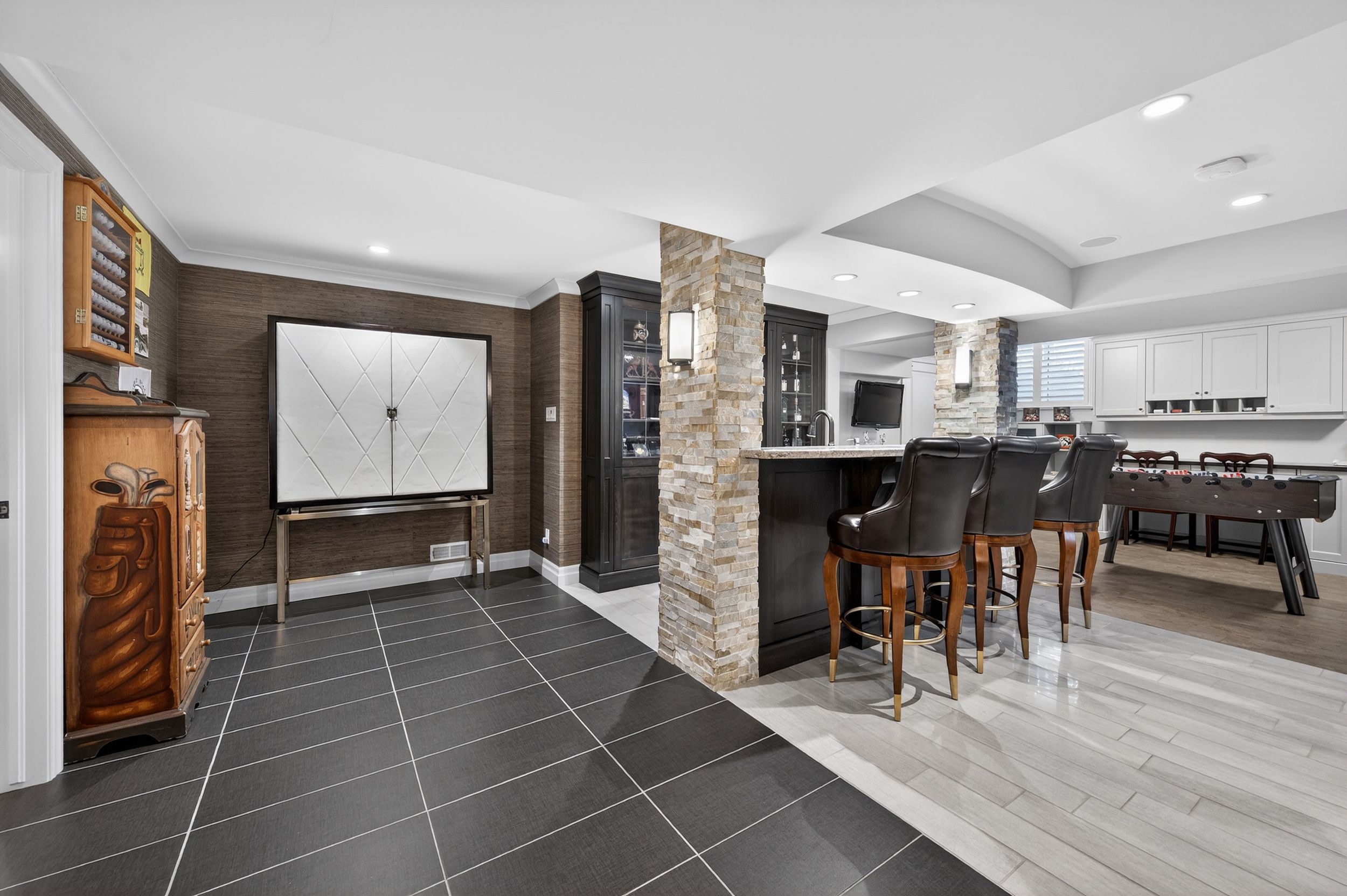 • Fully finished lower level with rec room, gym, bar, and wine cellar.