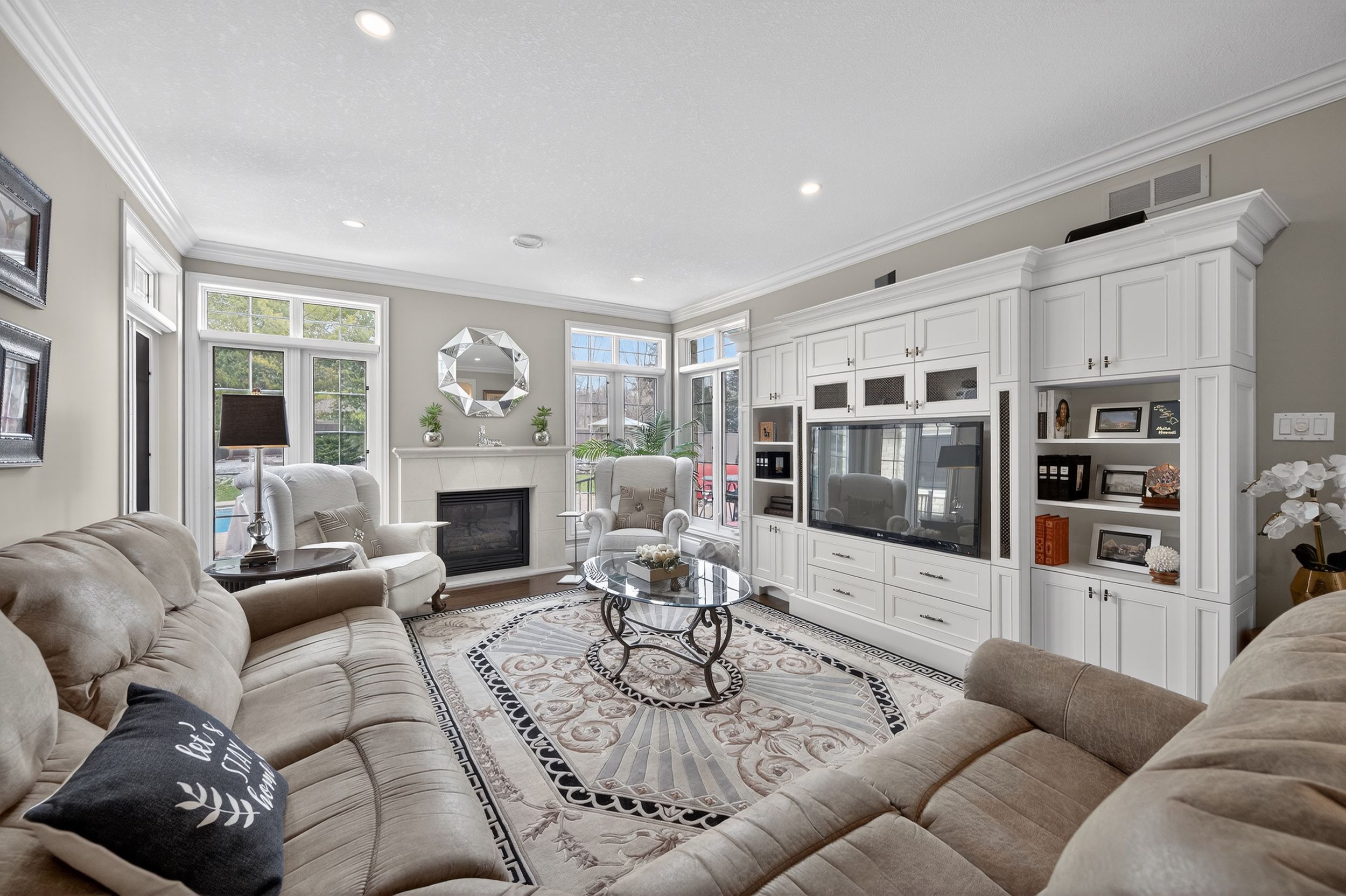 Welcome to one of hunt club's most coveted addresses, set on prestigious fitzwilliam blvd circle. Positioned on a secluded half acre lot, this property offers a rare combination of scale, privacy, a 2. 5 car garage & over $1,000,000 in upgrades with a detailed list available through the listing agent. The home makes an immediate statement with its custom front entry, professional landscaping, composite decking & resort-style backyard complete with saltwater pool, hot tub, pergola & multiple outdoor living spaces designed for both relaxation and entertaining. Inside the layout blends architectural presence with everyday function. A grand dining room with soaring 15ft ceilings, elegant living room with custom built-ins and a warm family room with fireplace & integrated cabinetry anchor the main level. The redesigned kitchen features premium appliances including subzero refrigeration and double wolf oven, custom cabinetry, granite counters and a large island, all open to a sunlit dinette with its own fireplace. A remarkable addition transforms the home with a private bedroom retreat; dual luxury walk-in closets with expansive built-ins, stunning spa-inspired ensuite and beautifully finished space designed for elevated family living or multigenerational needs. Upstairs offers 4 spacious bedrooms including a large primary with a walk-in closet and well-appointed ensuite, an additional ensuite in guest room and a modernized main bath. The lower level is fully finished and designed for lifestyle, featuring a rec room with fireplace, games area, bar, wine cellar with temperature control, gym, music room, craft room and bathroom. Additional highlights include hardwood throughout most of the home, high-end window treatments, upgraded mechanicals, 3 furnaces & a/c units, ev charger, garage cabinetry and smart home integration. Offering 4800sqft plus lower finish, a rare opportunity in one of london's most prestigious neighbourhoods, quality and lifestyle at a level seldom seen.