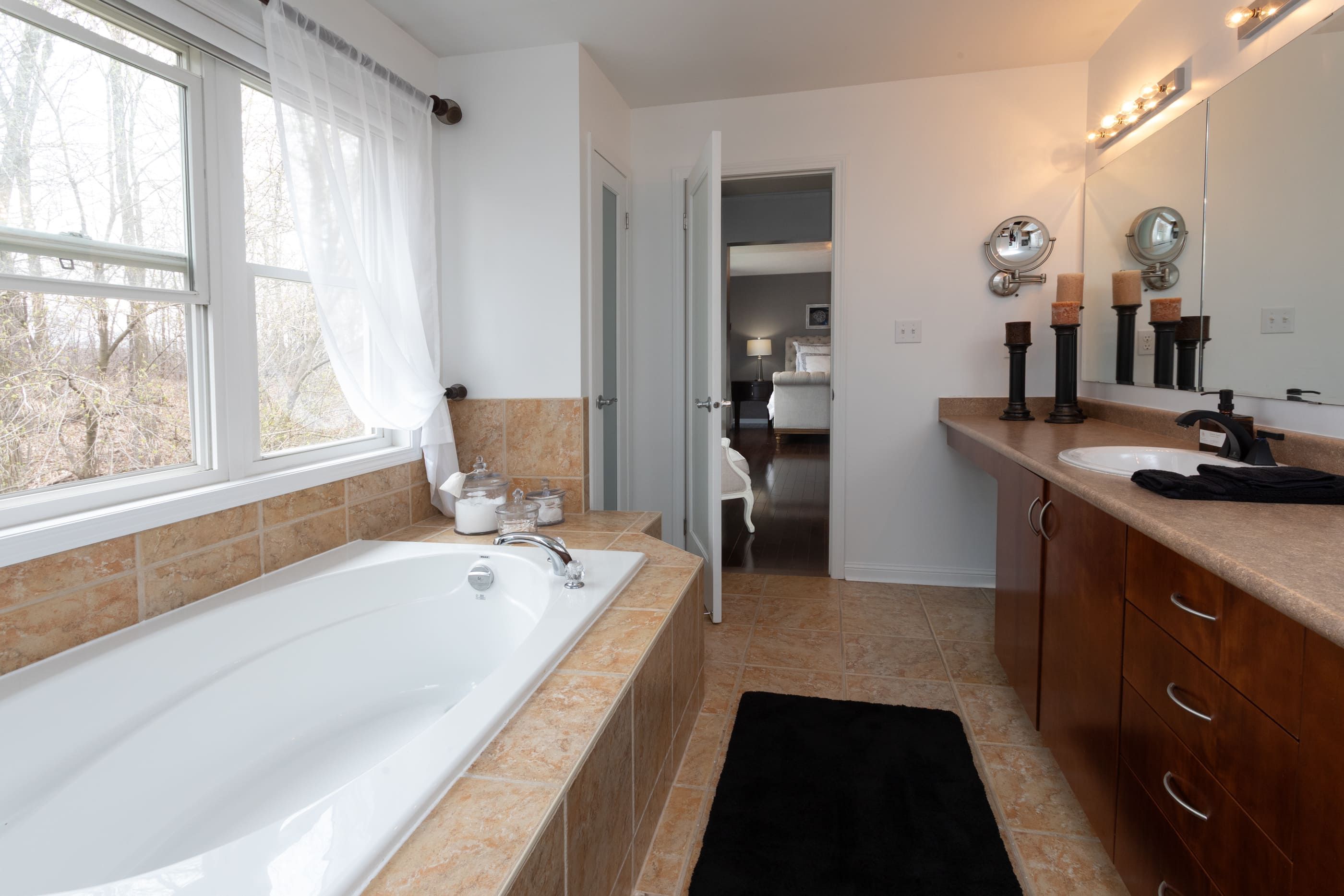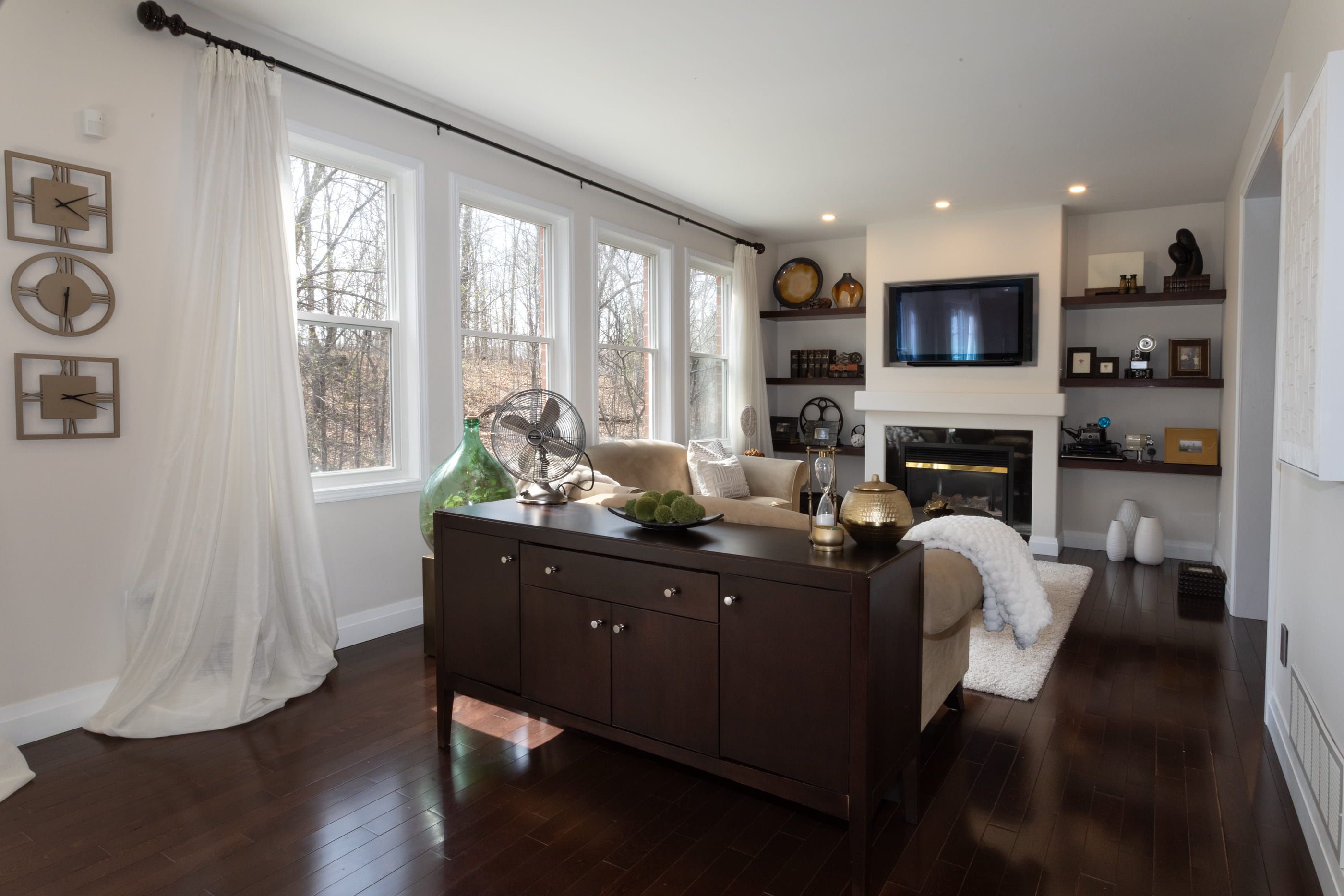 • Bright main floor with hardwood and two-sided feature fireplace.