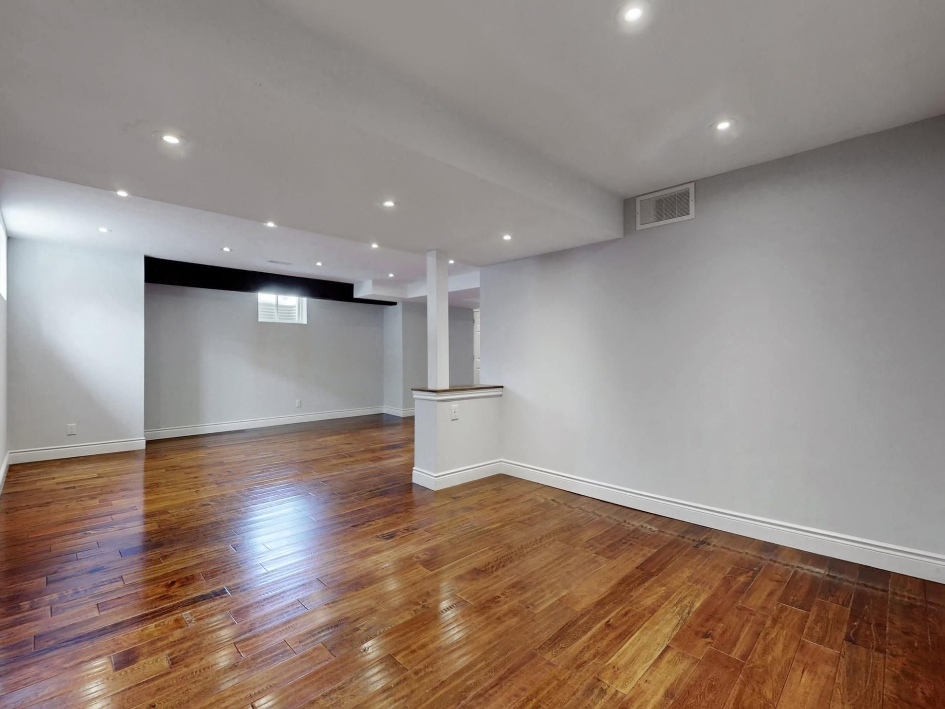 • Finished basement with recreation and family rooms for various uses.