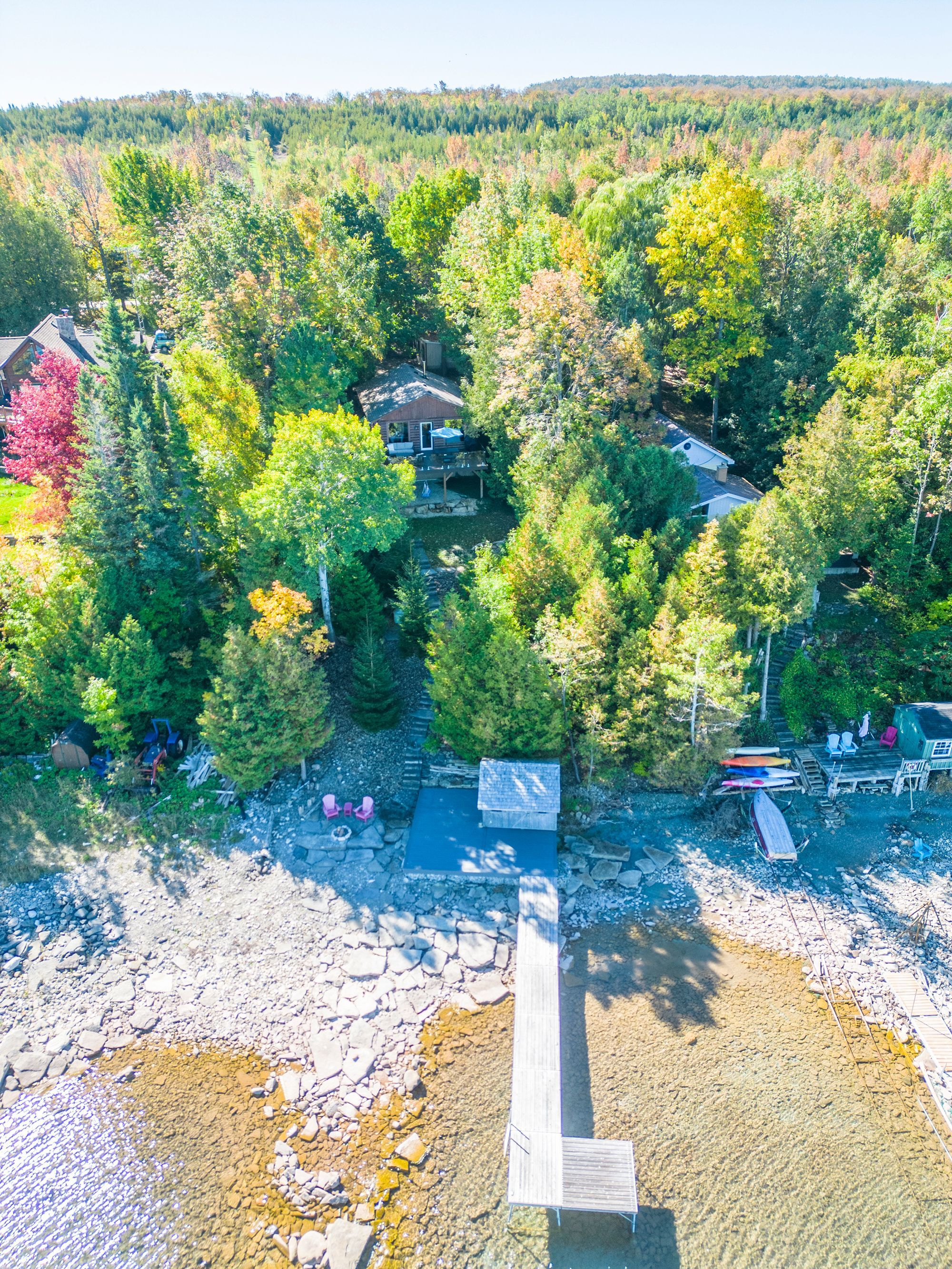 Embrace year round living in this 3 bedroom, 2 bathroom log home perched on the waters of georgian bay. Panoramic views encompass colpoys bay, white cloud island, and griffith island. The open concept main level features expansive windows that frame the vistas, flowing seamlessly from kitchen to dining to living space. Cozy evenings by the fireplace and tranquil mornings sipping coffee as the water glistens become everyday rituals. The generous laundry/utility room includes abundant storage for gear, linens, and essentials. There is an outbuilding/workshop with hydro that offers room for tools, storage, or creative projects. A private bunkie with hydro sits at the waters edge ideal for guest space, a studio, or a quiet retreat. In 2021, significant updates were completed: new roof, deck & railings, eavestroughs with gutter guards, and a new dock was installed. Enjoy easy boat access via the nearby big bay boat launch. This property offers boating, kayaking, swimming, spectacular sunsets, and all season recreation at your doorstep and still close to amenities in wiarton and owen sound.