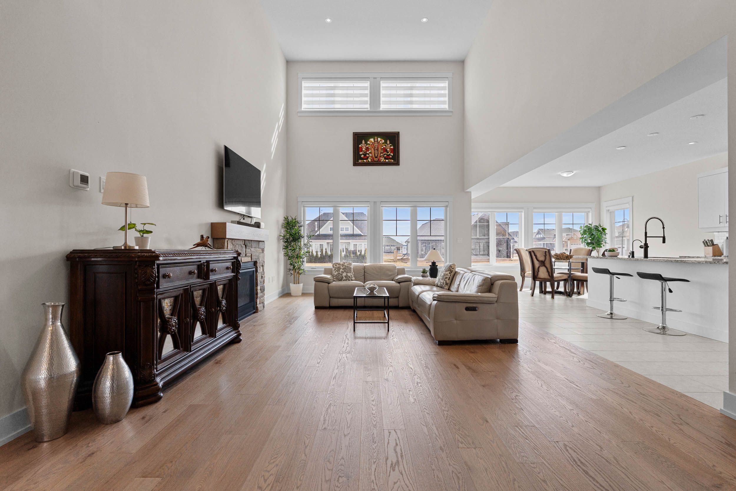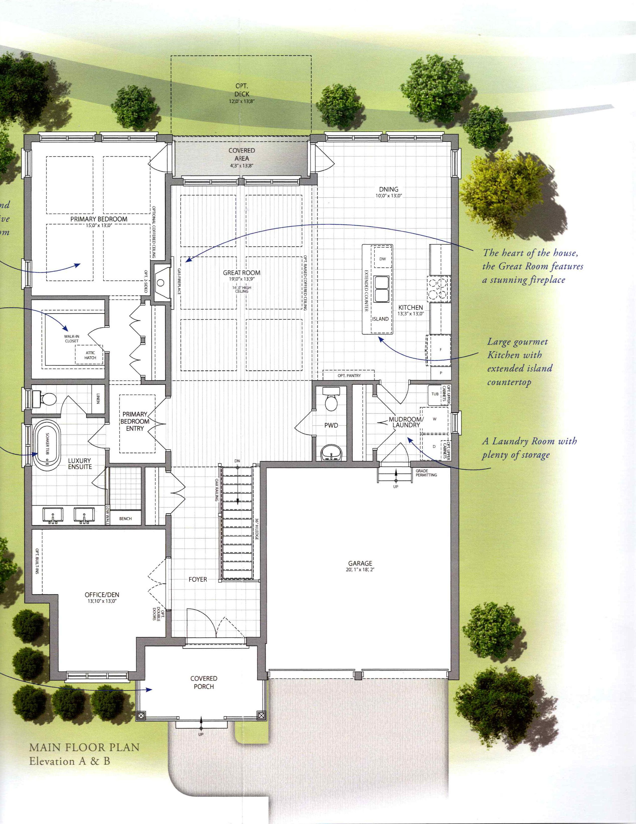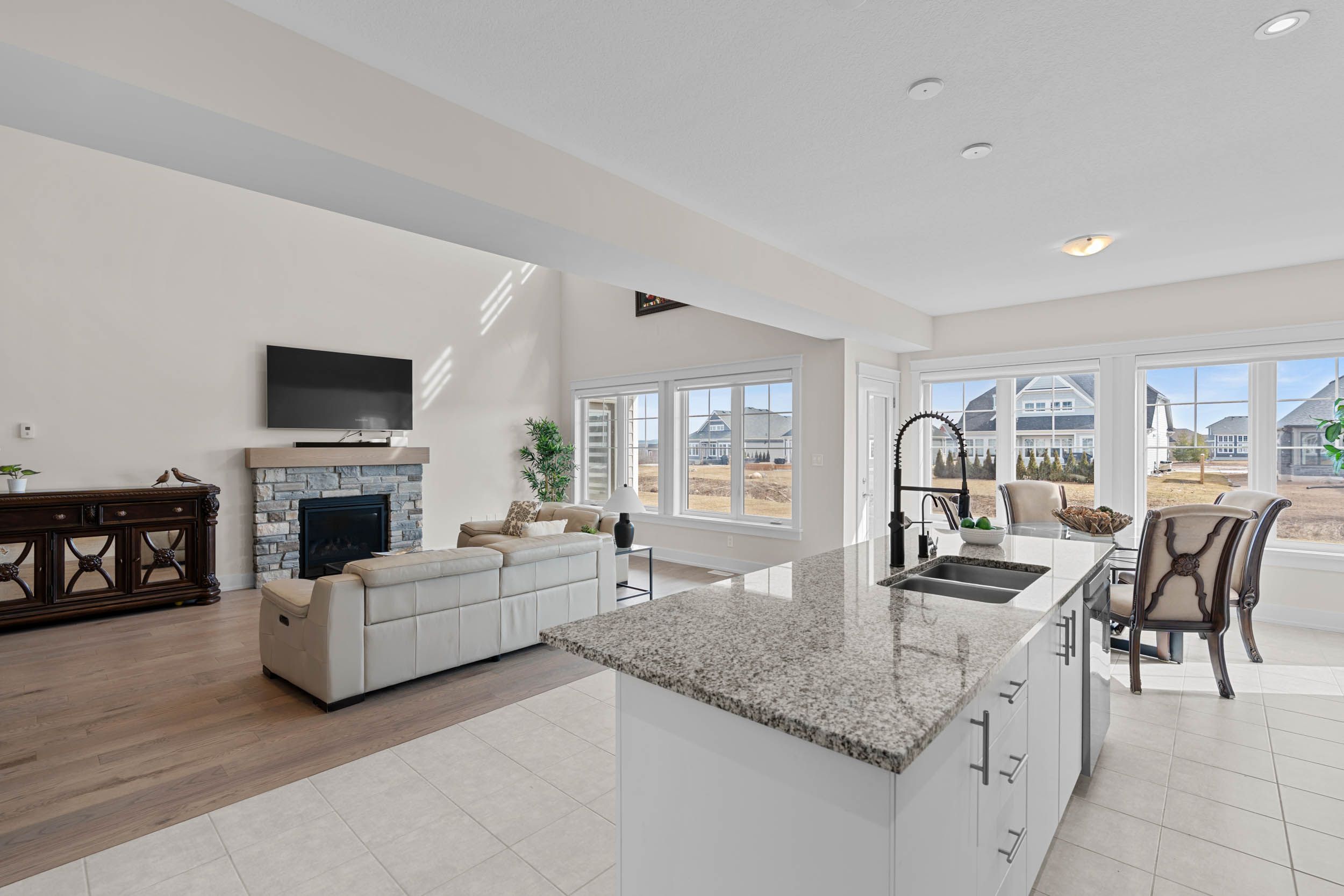 • Bright great room with impressive ceiling and cozy gas fireplace.