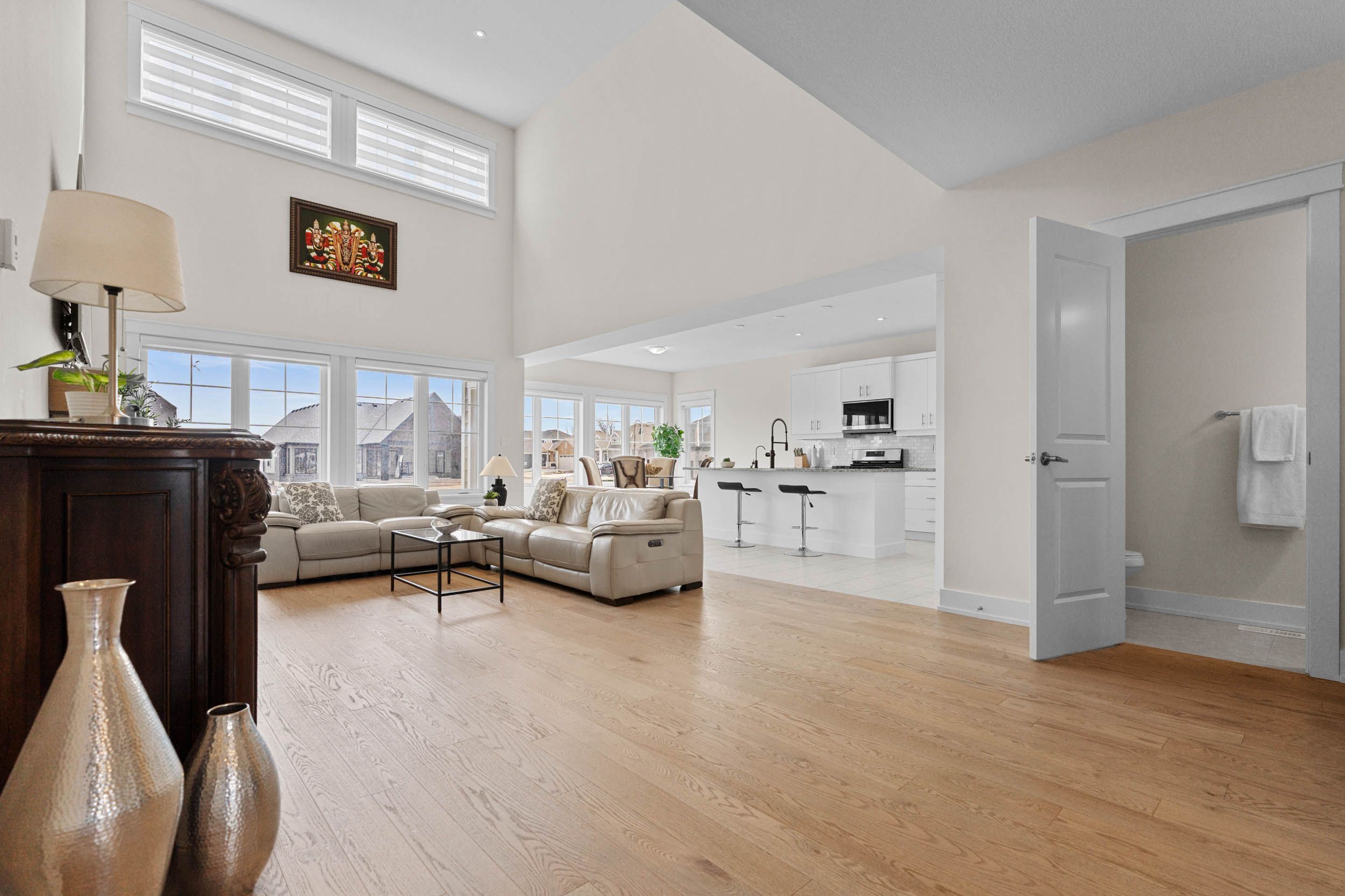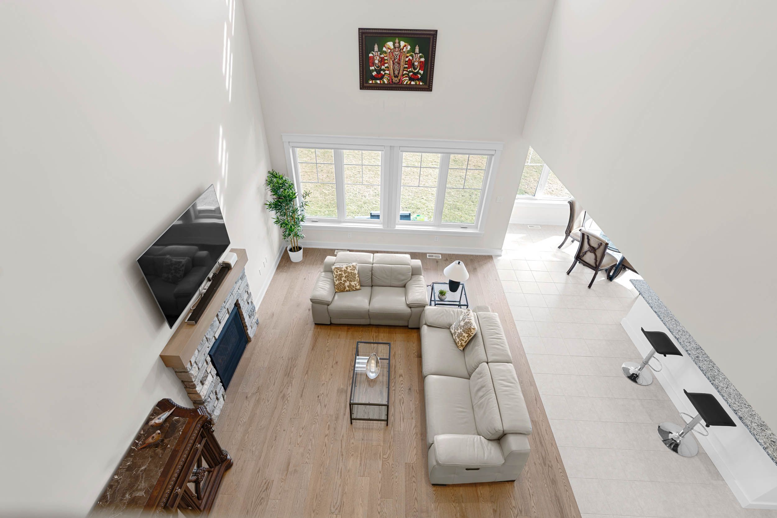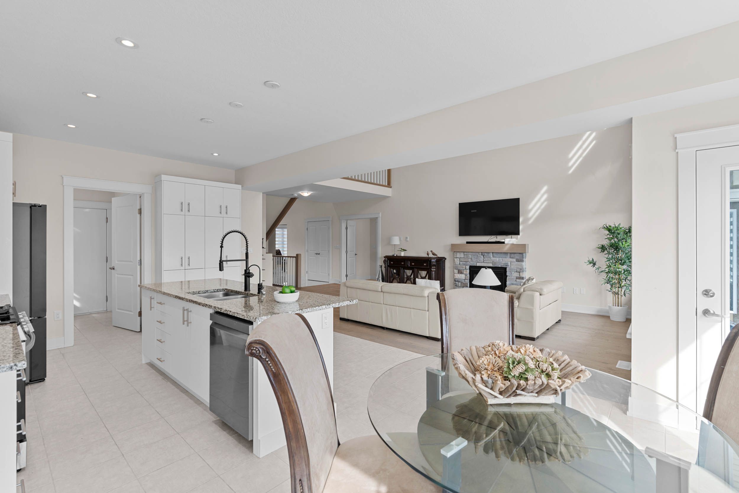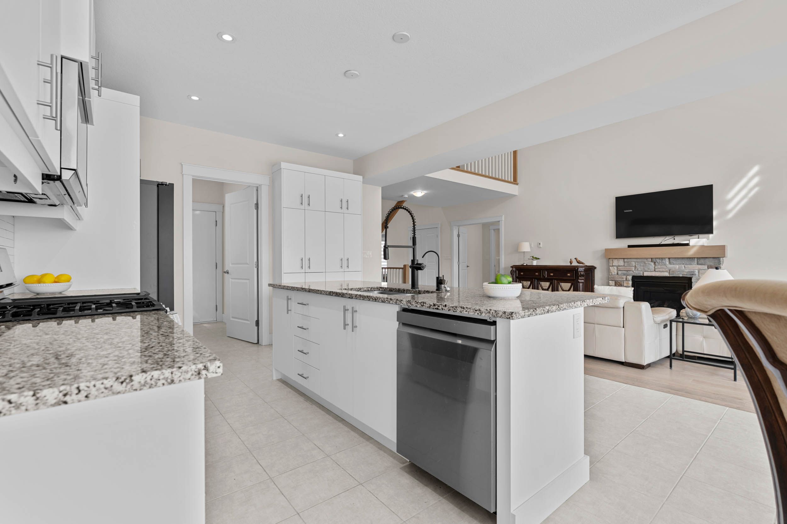 • Bright great room with impressive ceiling and cozy gas fireplace.