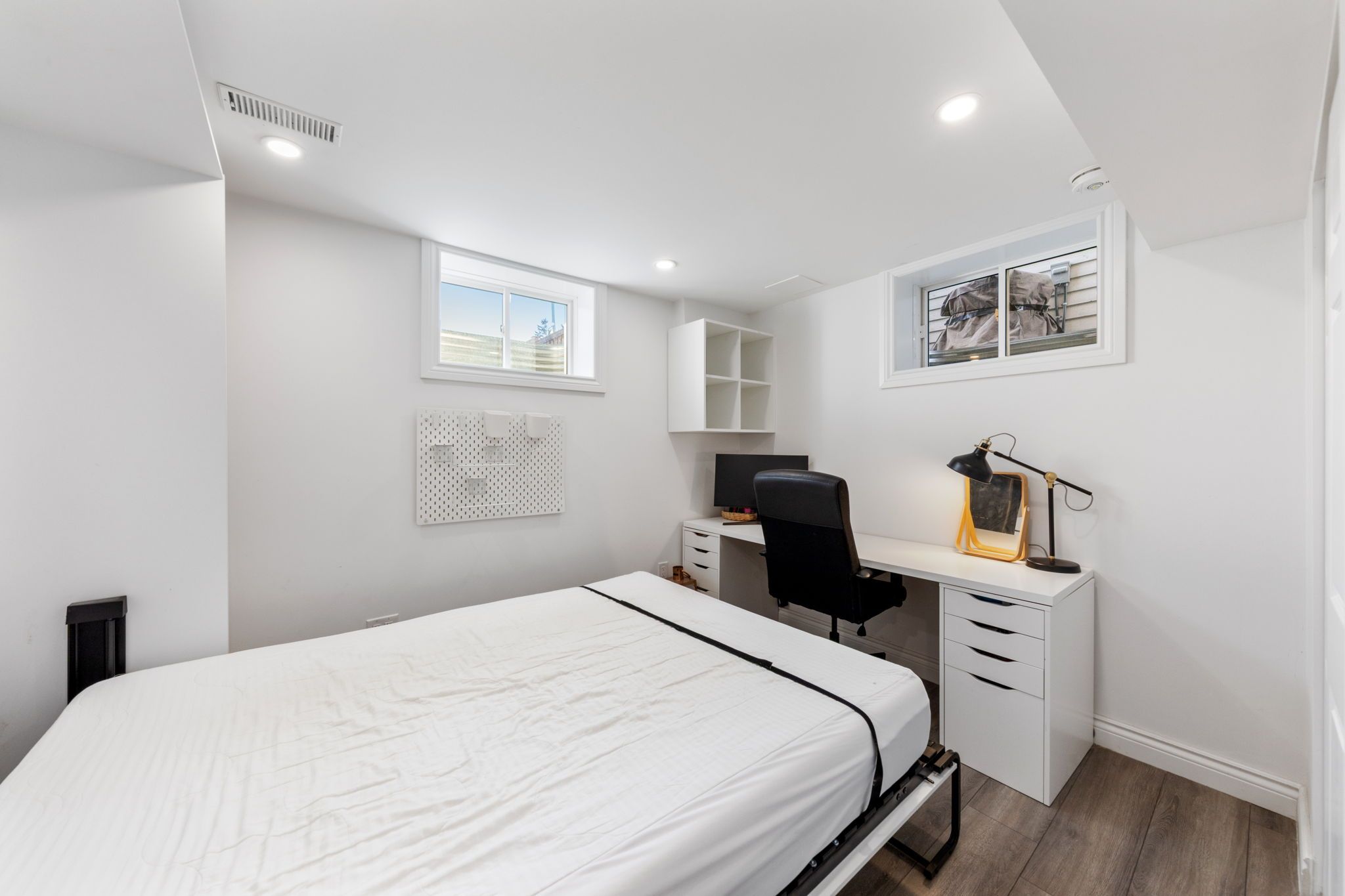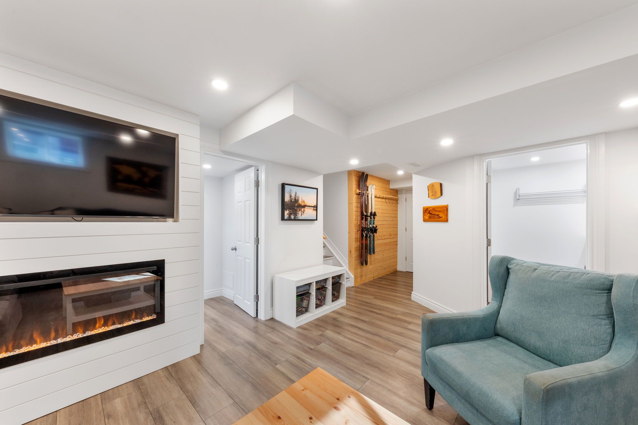 • Fully finished basement with additional bedroom and stylish fireplace.