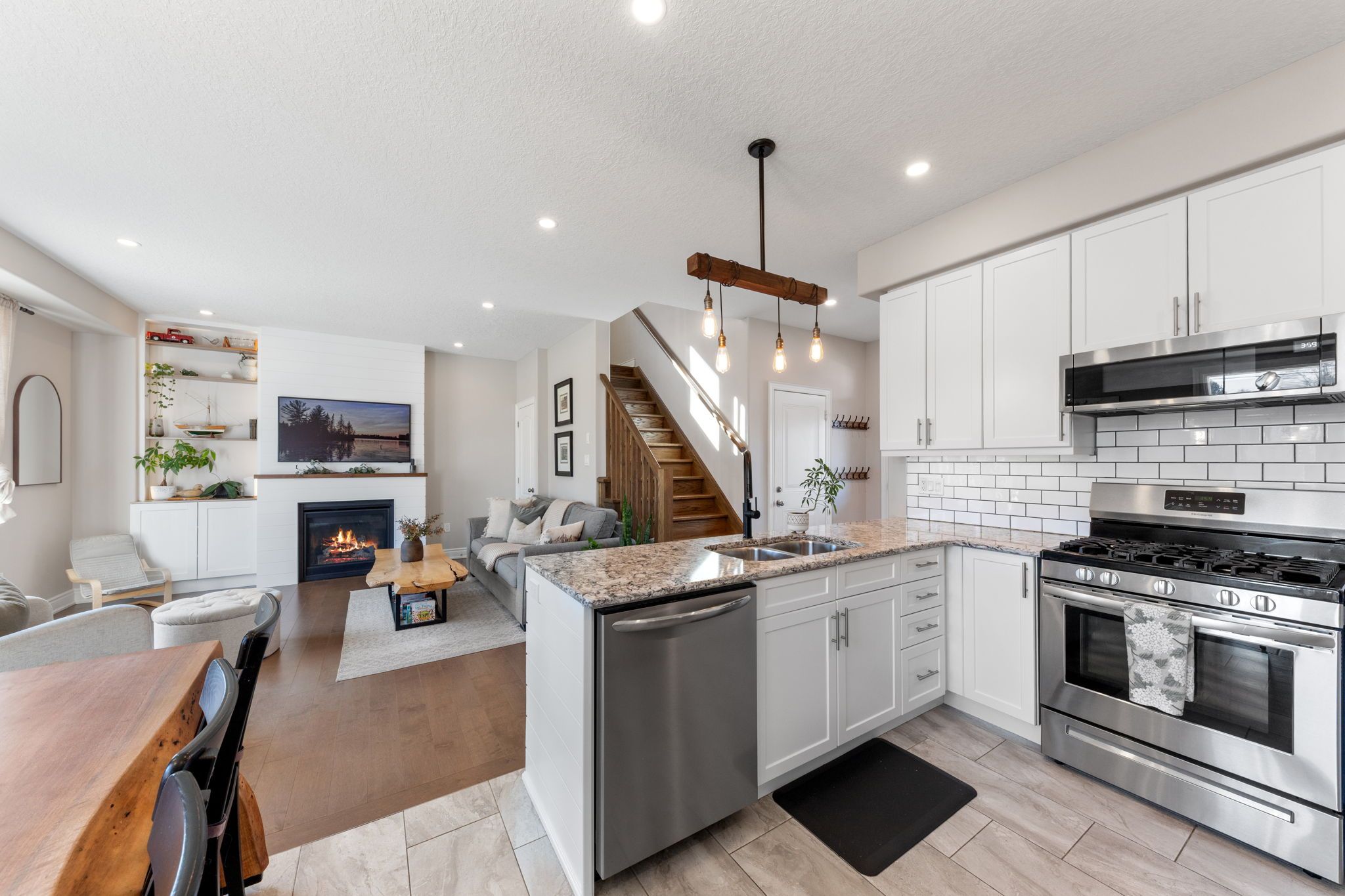 • Bright open-concept layout with natural light and cozy gas fireplace.