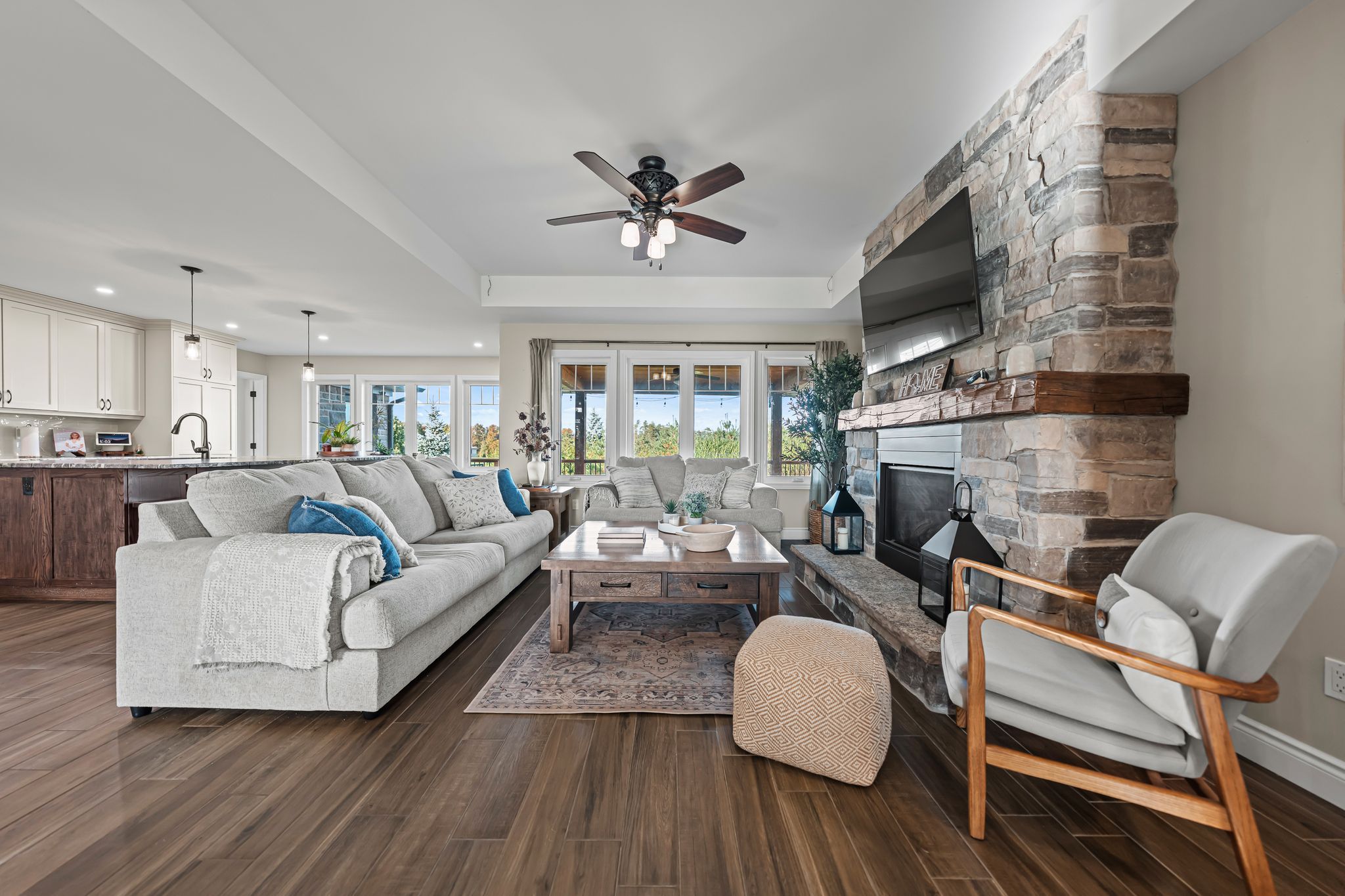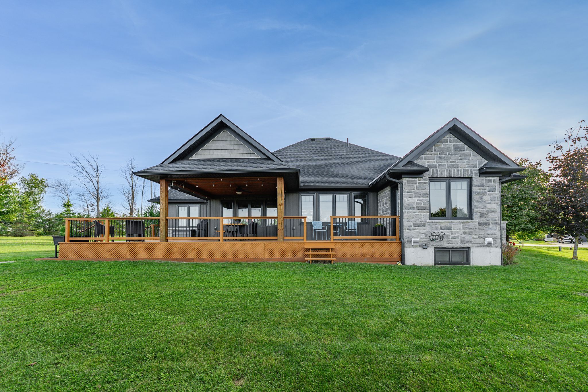 Welcome to this striking custom-built bungalow, set on a picturesque 1. 15 acre lot in the sought-after marshall heights subdivision where relaxed country living offers an exceptional outdoor lifestyle. From the moment you arrive the timber beams and a welcoming front porch set the tone for laid back summer mornings and quiet evening sunsets. A spacious foyer opens to a stunning great room where a floor-to-ceiling stone fireplace creates a warm inviting focal point for gatherings year round. The chef inspired kitchen is designed for connection and celebration featuring an oversized island, beautiful cabinetry and thoughtful finishes-perfect for everything from casual brunches to hosting family and friends. The primary suite offers a peaceful escape, tucked into its own wing with a walk-in closet, spa-like ensuite, and direct access to the deck. Two additional bedrooms and a full bath are thoughtfully positioned in a separate wing, offering privacy for family or guests. The fully finished lower level expands your living space with a flexible floor plan creating the ultimate recreation zone. This level features three additional bedrooms that could be used as an office or gym, a full bathroom, a spacious family room, and plenty of storage. But it's outdoors where this home truly shines. Step out to the expansive deck, complete with a partially covered lounge and dining area, ideal for summer dinners and weekend barbecues, that overlooks your private backyard retreat. The beautifully landscaped property offers endless possibilities with ample space to add a pool, create gardens, or simply enjoy wide-open green space and bonfires. A large shed, plus dedicated rv and boat parking, make it perfect for those who love to explore and entertain. Located between durham and mount forest, you are minutes away from year-round outdoor adventures-hiking, atving, skiing, and snowmobiling. This isn't just a home-it's an escape, your gathering place, and your everyday retreat.