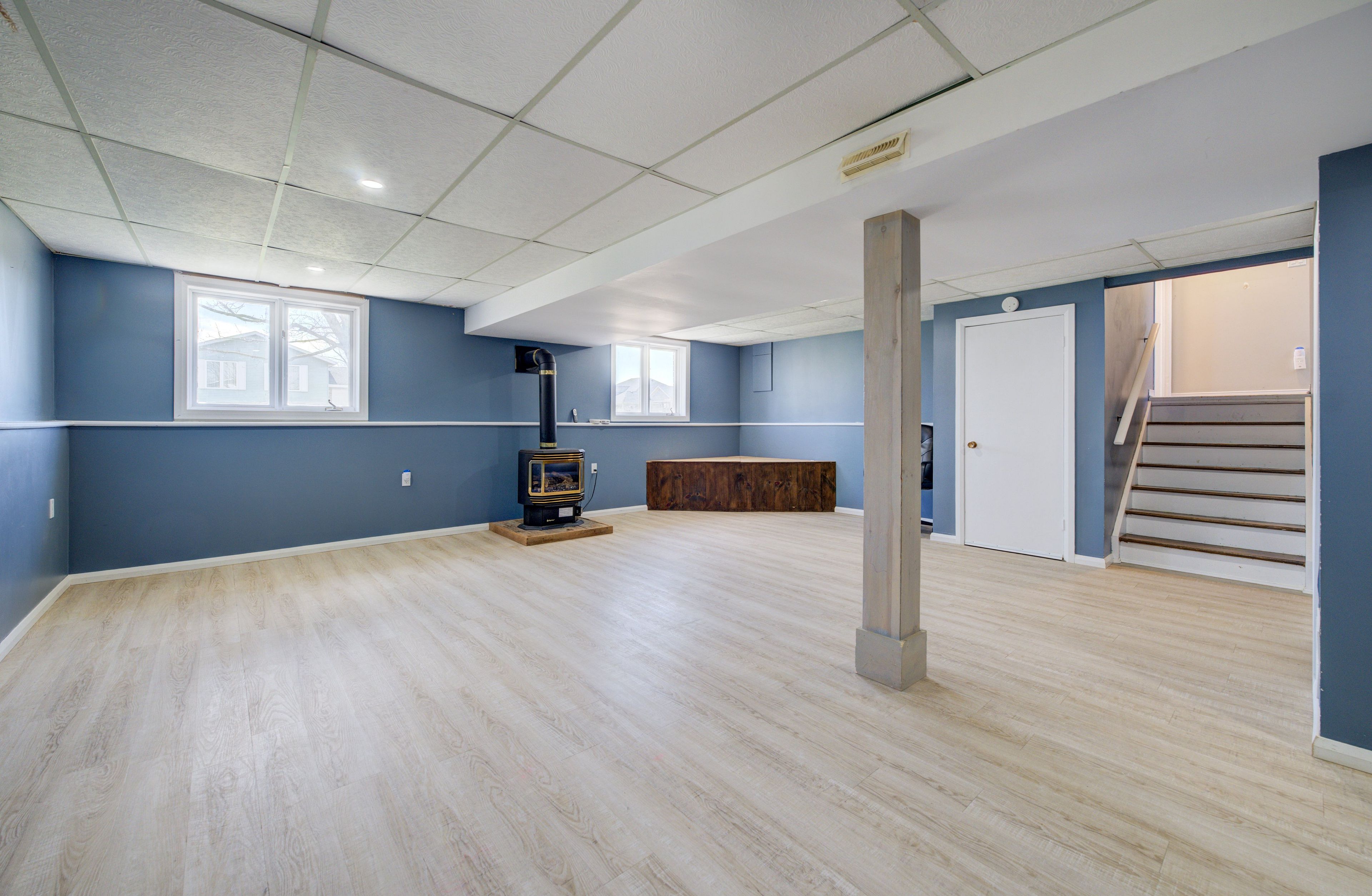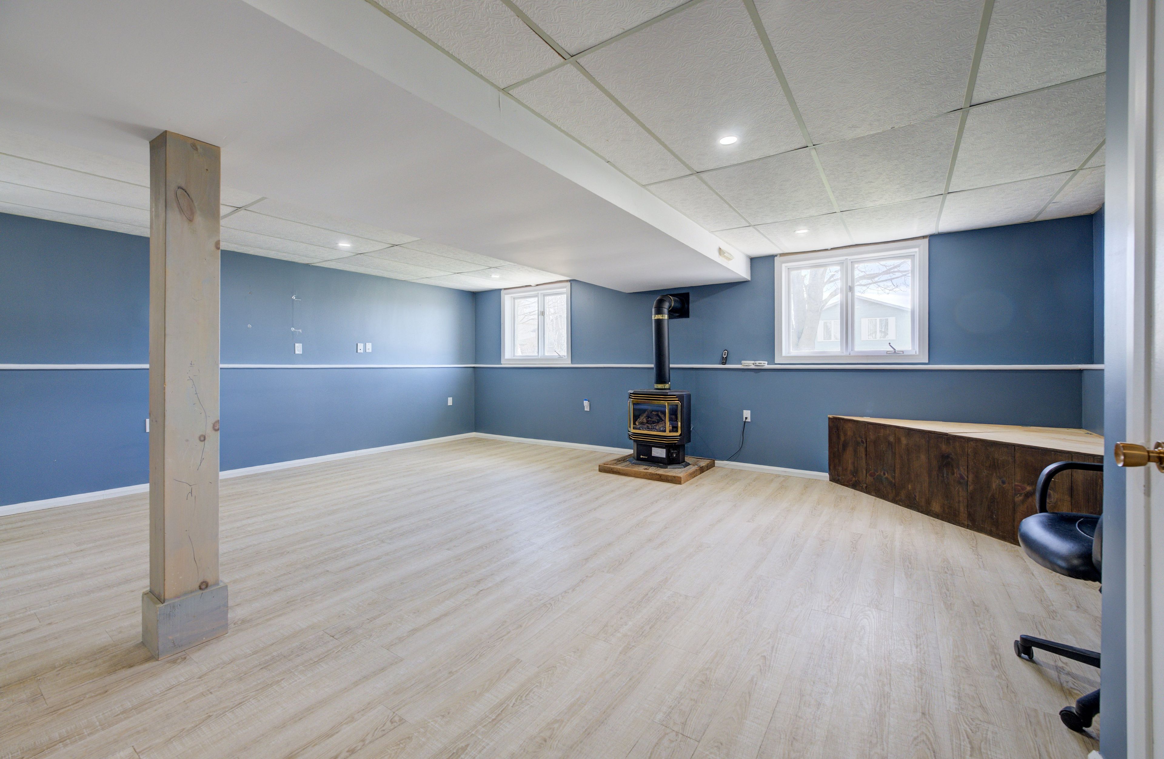 • Expansive family room with cozy gas fireplace and large windows.