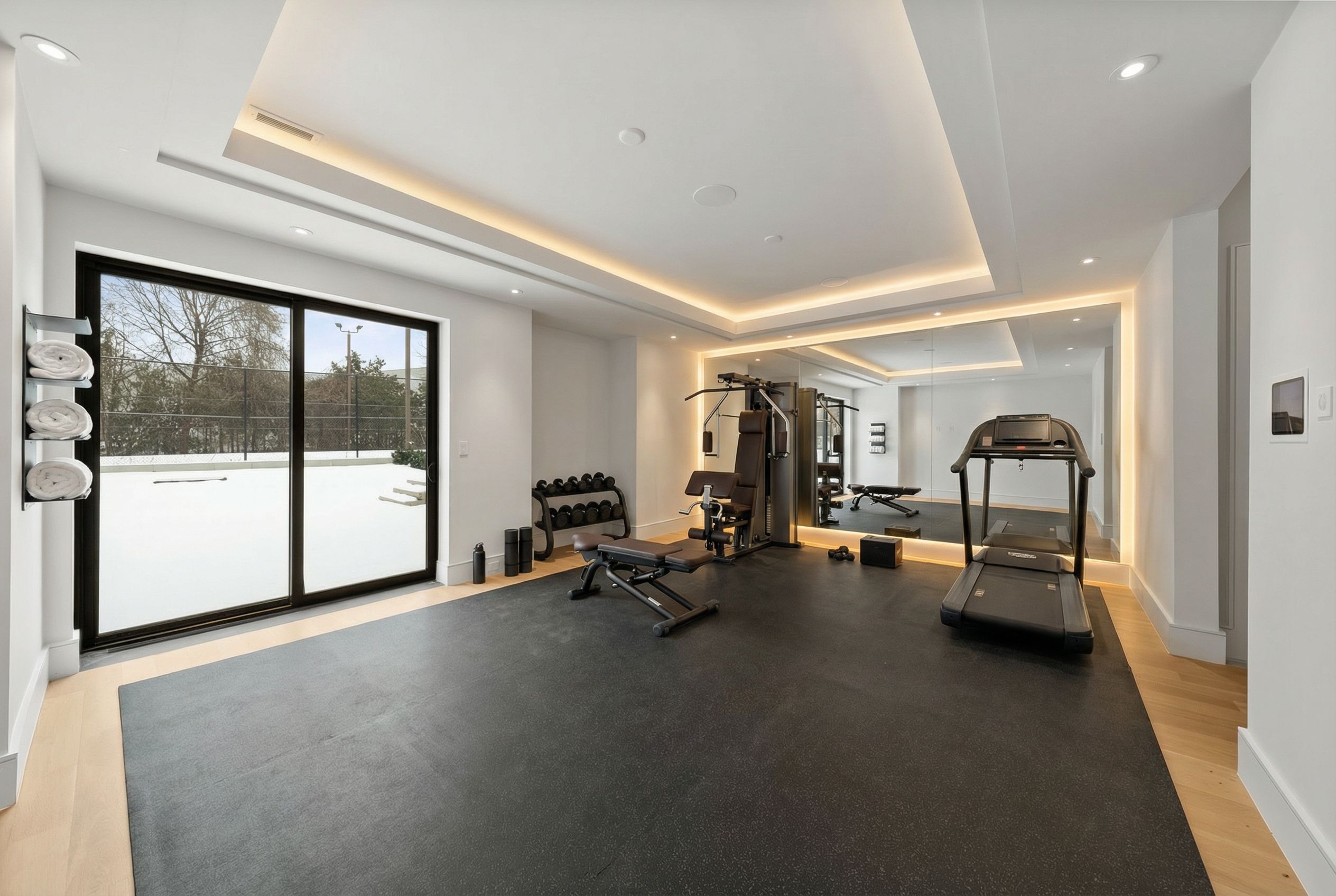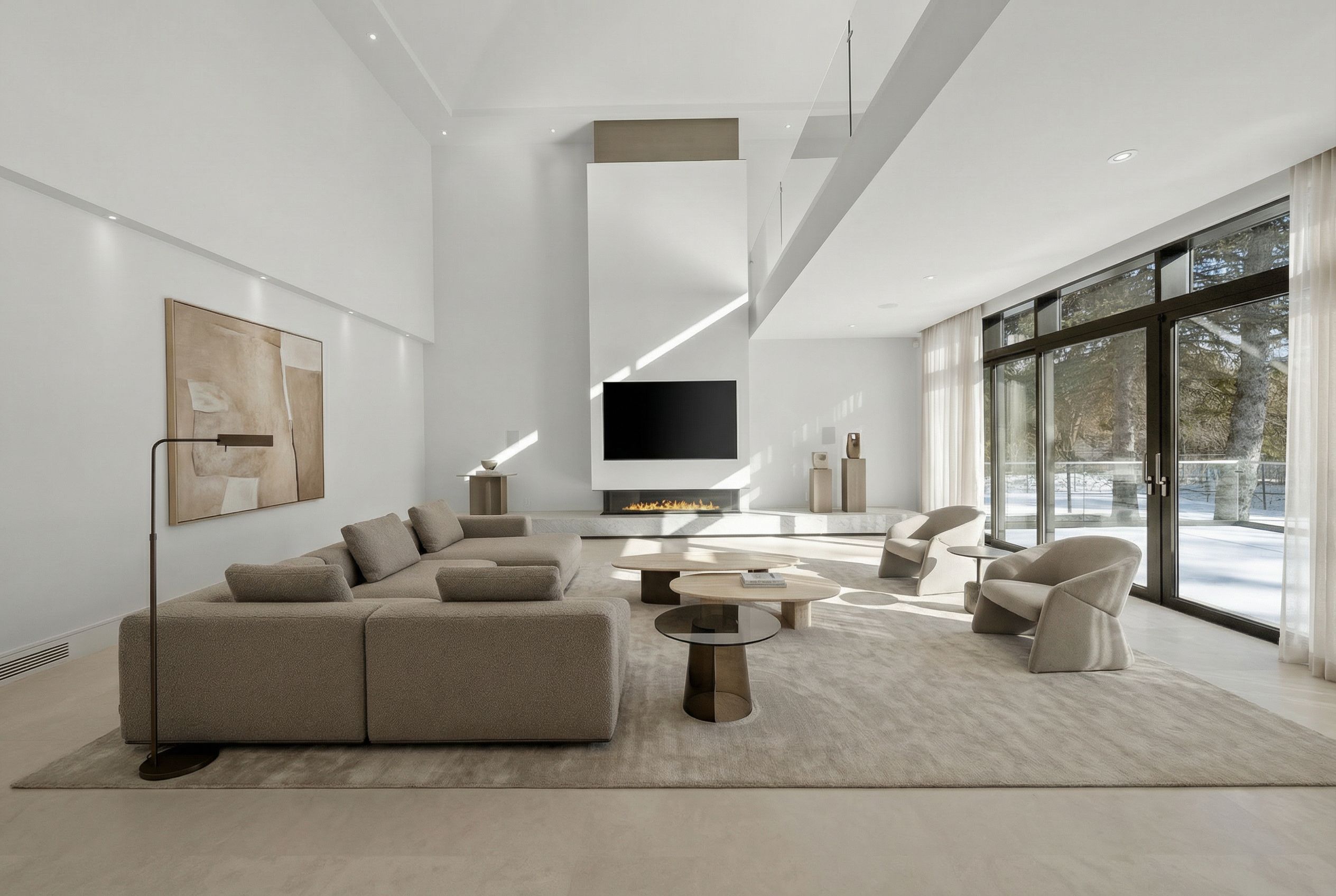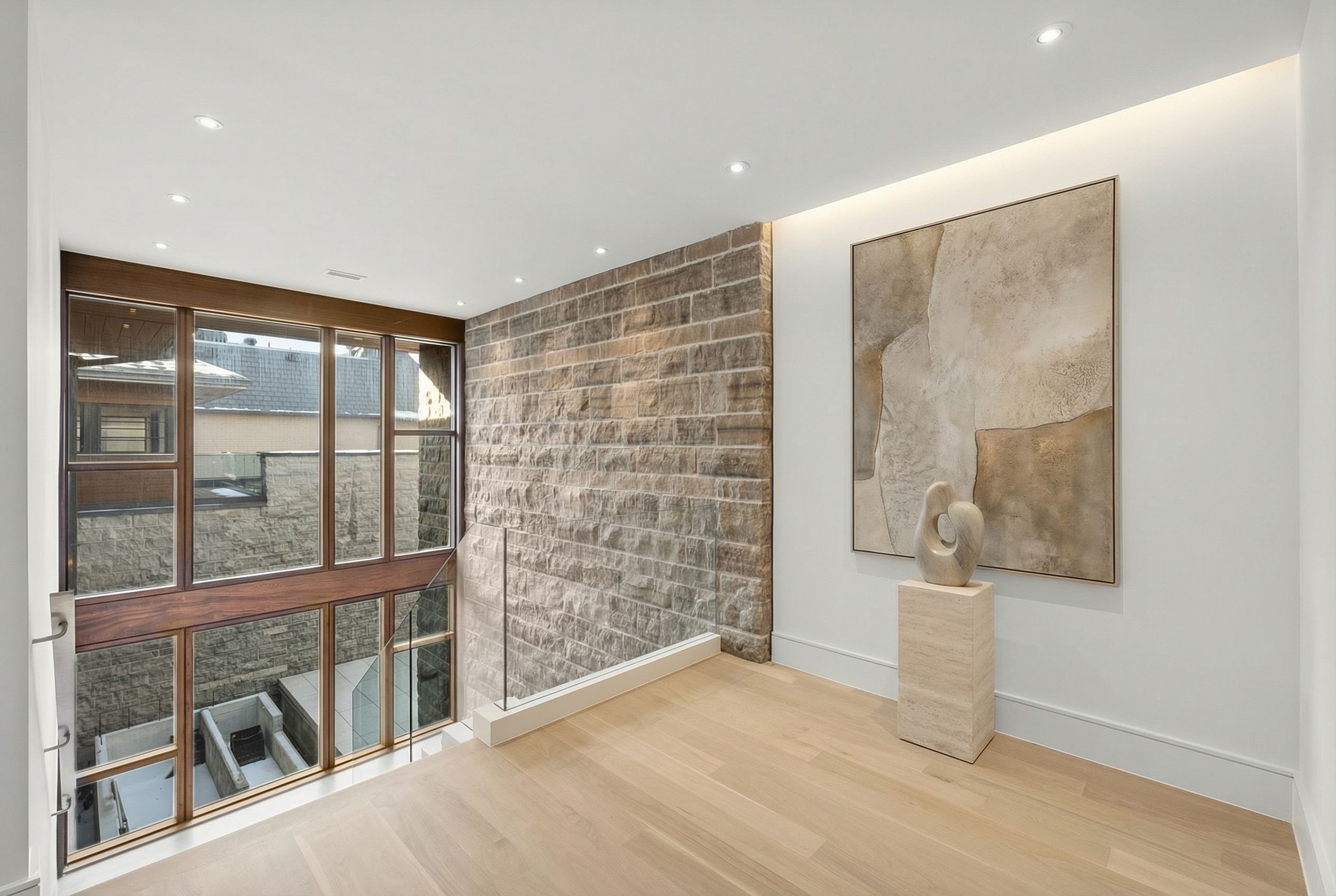 • Floor-to-ceiling windows provide abundant natural light throughout.