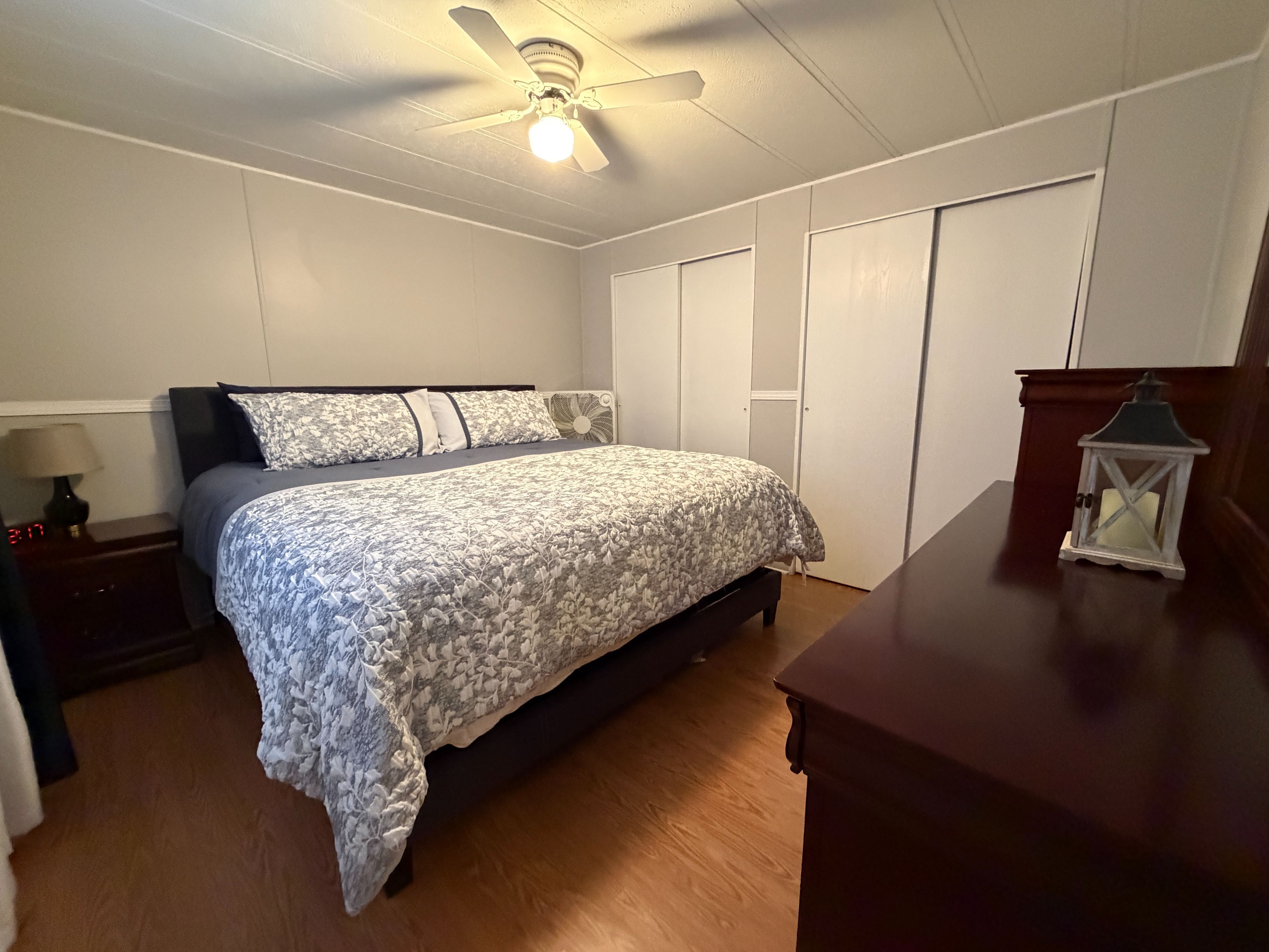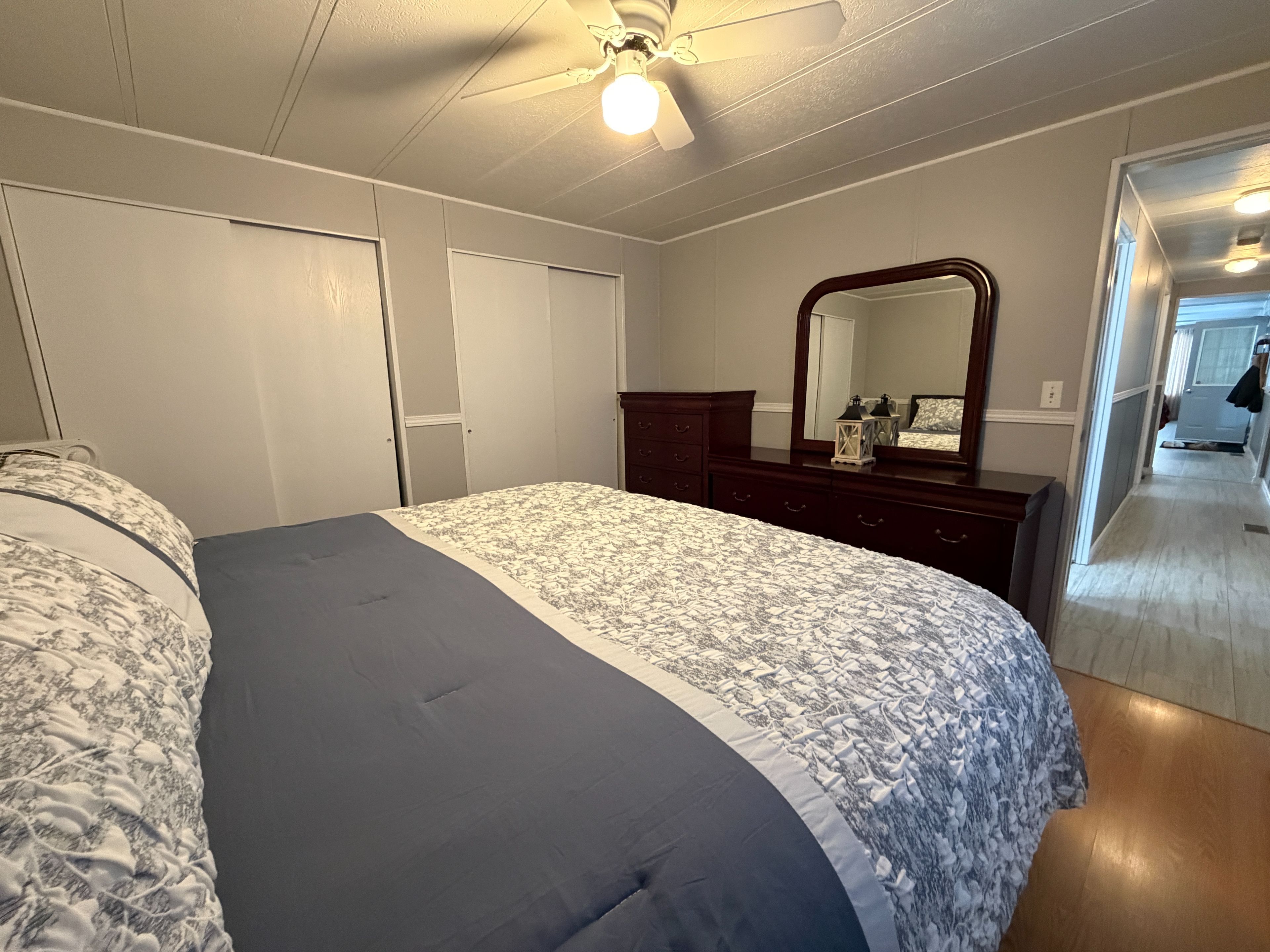 • Spacious primary bedroom with double closets for ample storage.