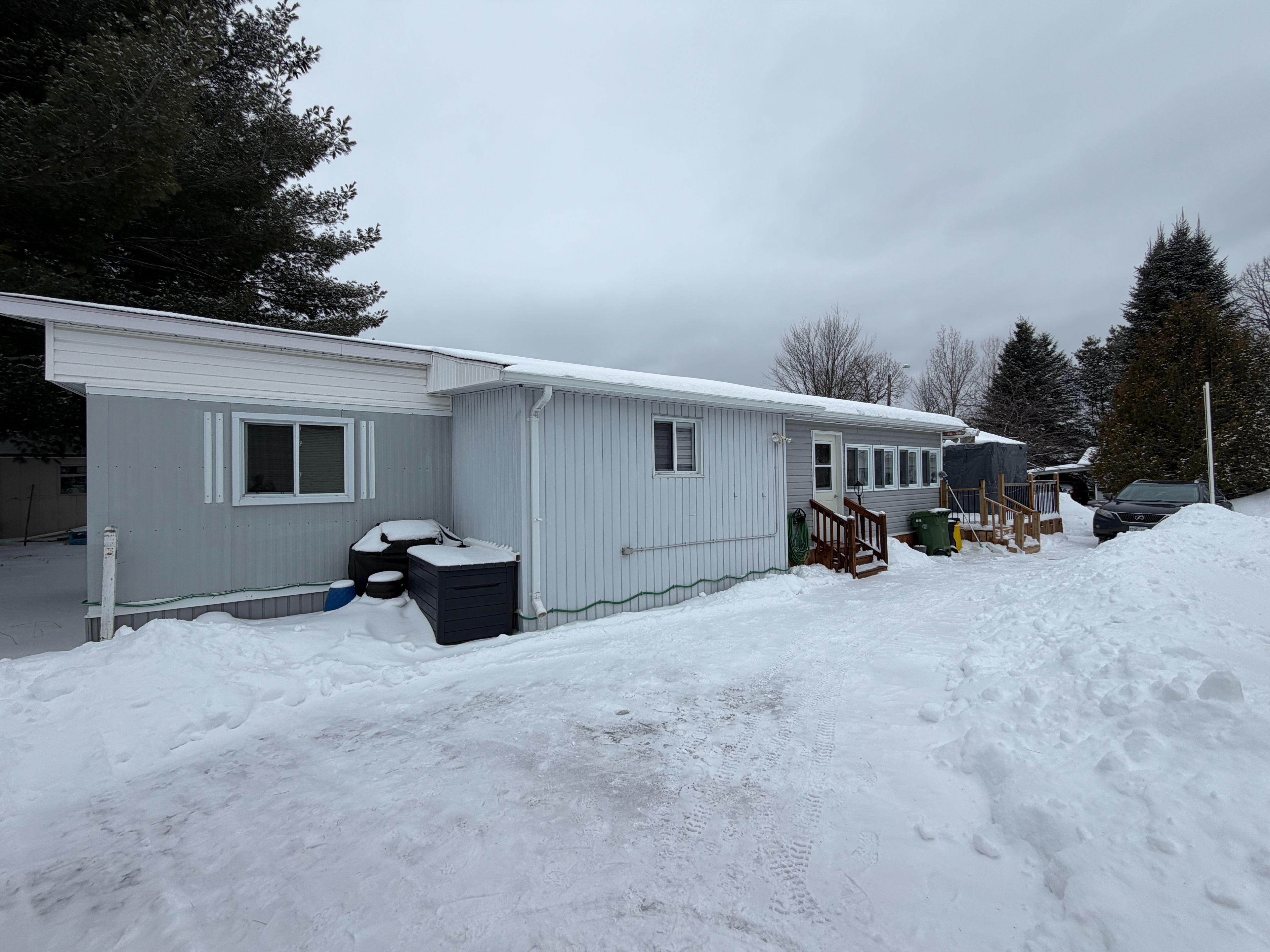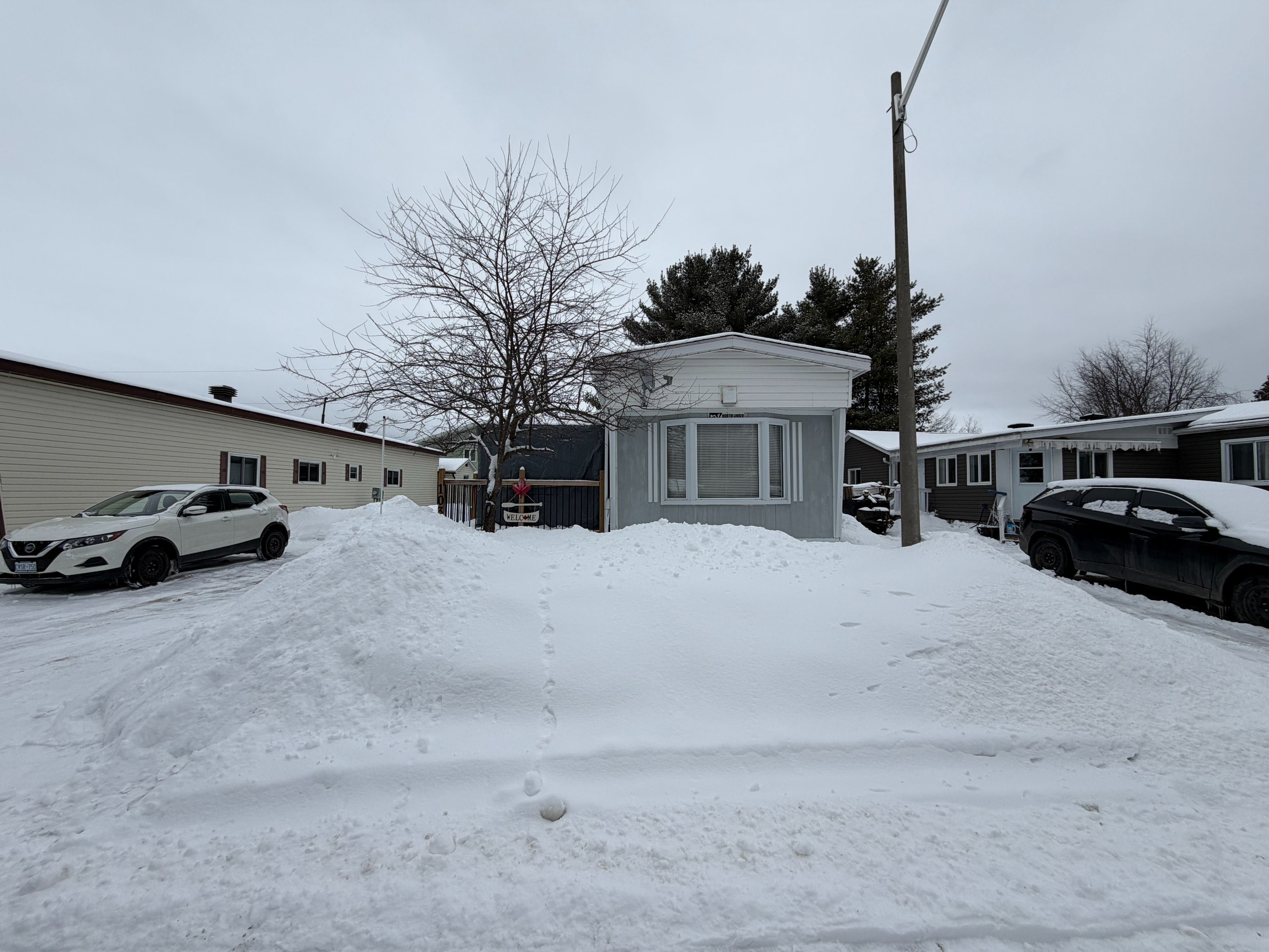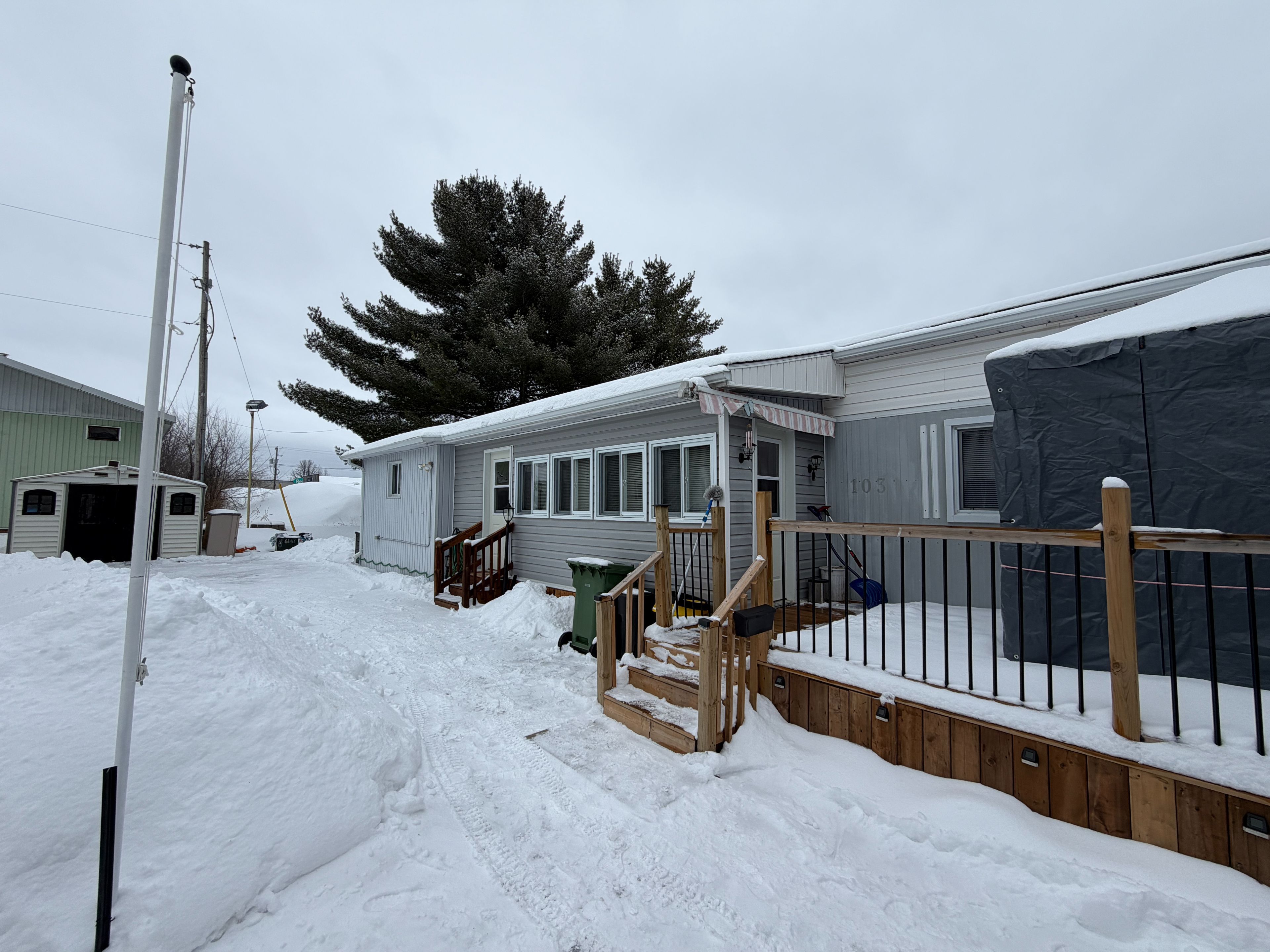 Welcome to 103 pinehurst estates in petawawa, an updated and move-in ready home offering exceptional value and a great location just minutes from key employment hubs including garrison petawawa (approximately 5 minutes) and canadian nuclear laboratories at chalk river (approximately 20 minutes). This well-maintained 2-bedroom home with an additional den or workshop features a spacious primary bedroom with double closets, a full bathroom with convenient in-unit laundry, and a bright, open-concept living space highlighted by modern vinyl floor tile( done in december 2025 ), updated finishes, and a stylish feature wall. The kitchen ( 2 years old) offers ample cabinetry, included appliances, and flows seamlessly into the dining and living areas, creating a functional layout ideal for both everyday living and entertaining. A practical mudroom adds extra storage and convenience, while the inviting front deck provides a great space to relax outdoors under the steel gazebo. Situated on a lot with a double driveway, the property also includes a storage shed, rubbermaid garbage storage, and two additional storage containers offering plenty of room for tools and seasonal items. Perfect for first-time buyers or downsizers this home delivers outstanding affordability, comfort, and location. Quick closing available