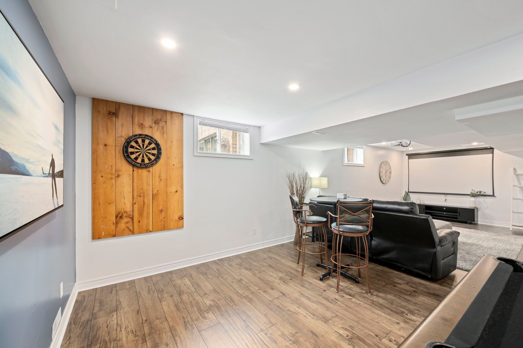 • Finished lower level featuring a bar, games room, and extra bedroom.