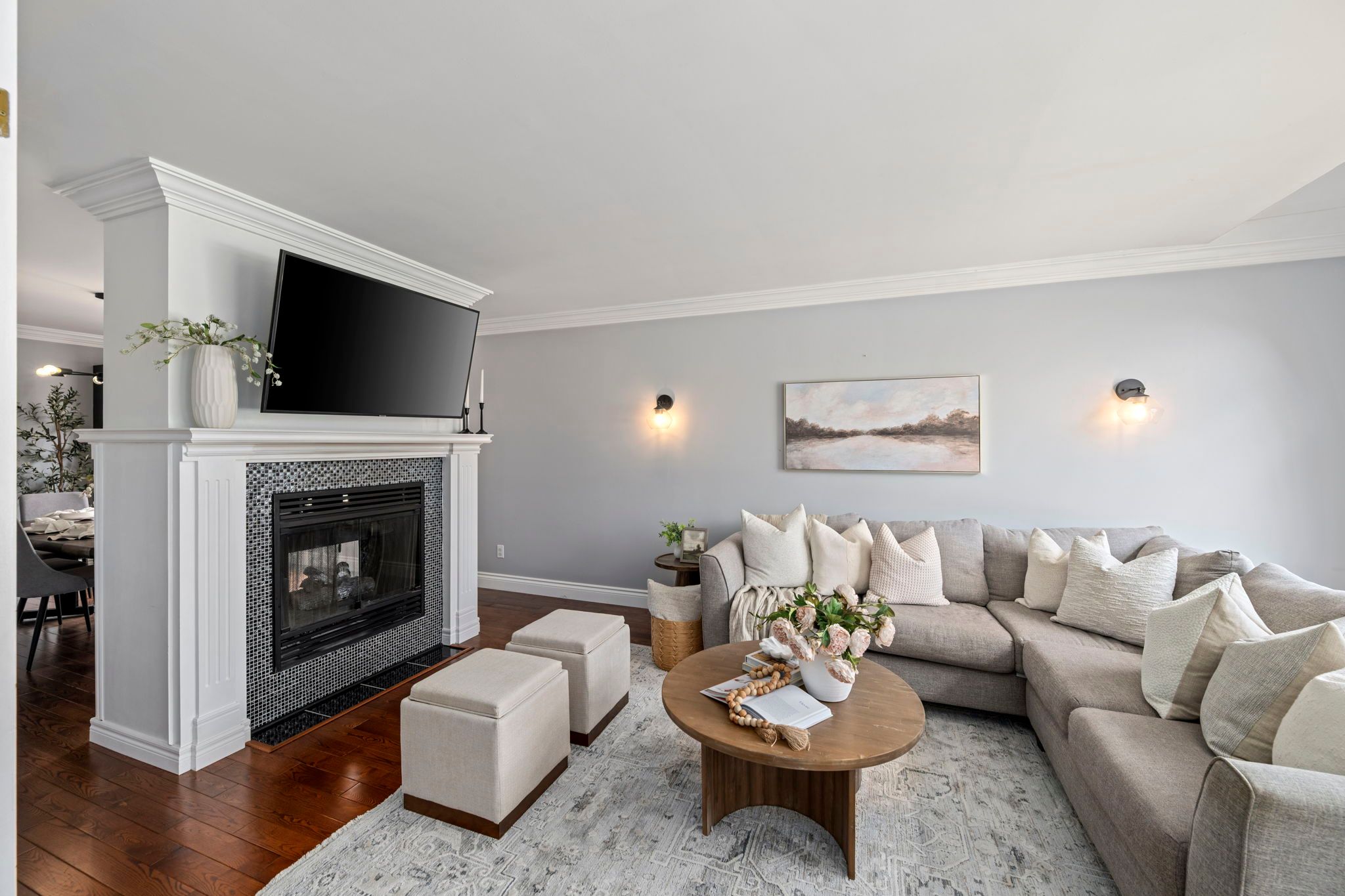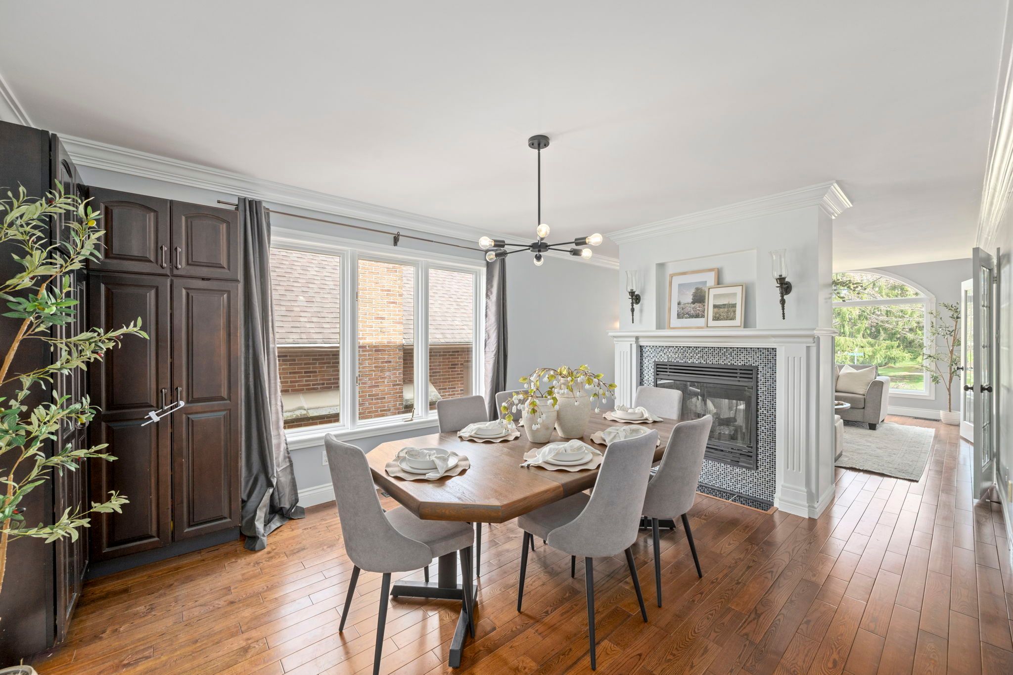 • Split living and dining area with a double-sided gas fireplace for entertaining.