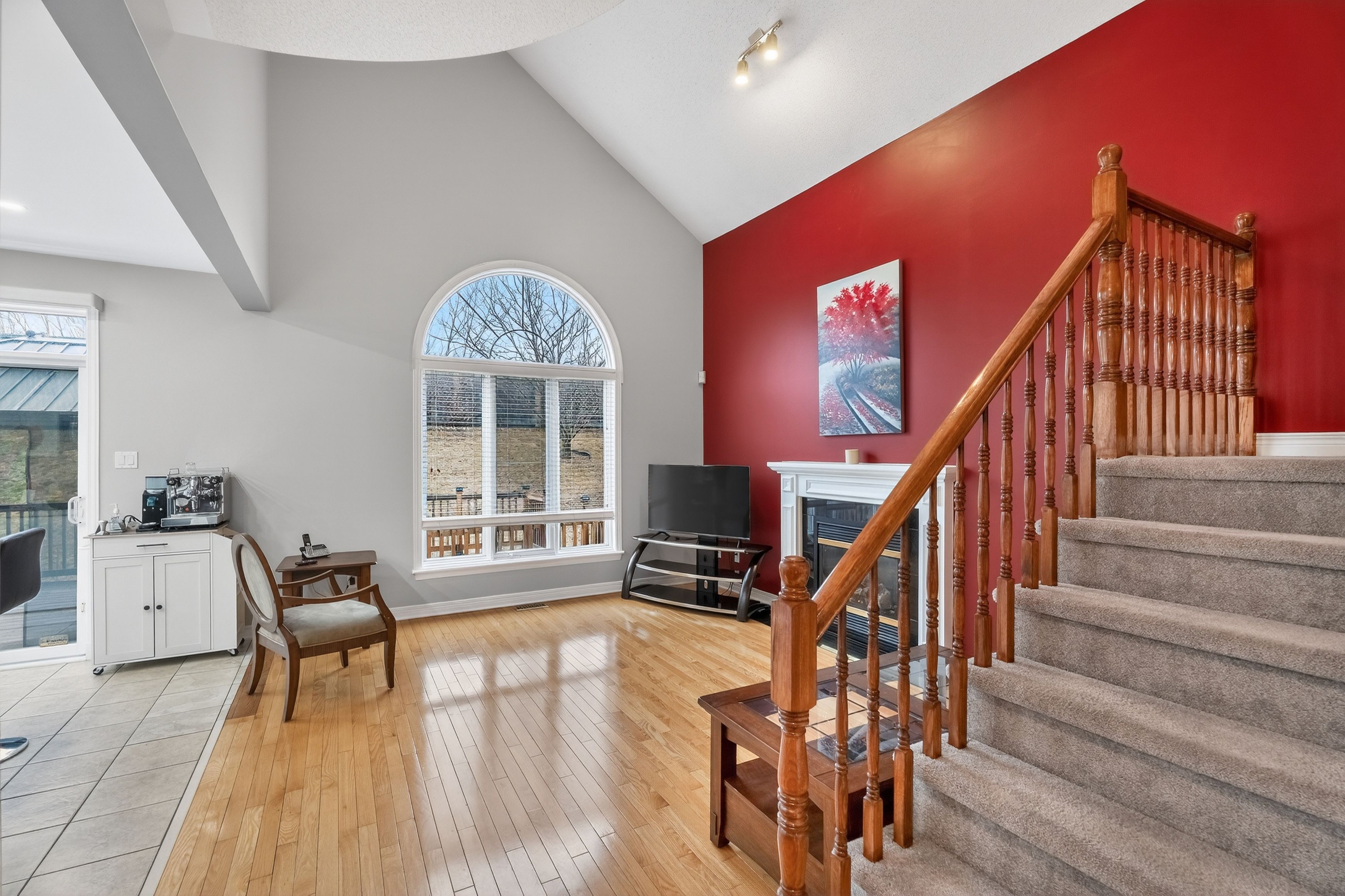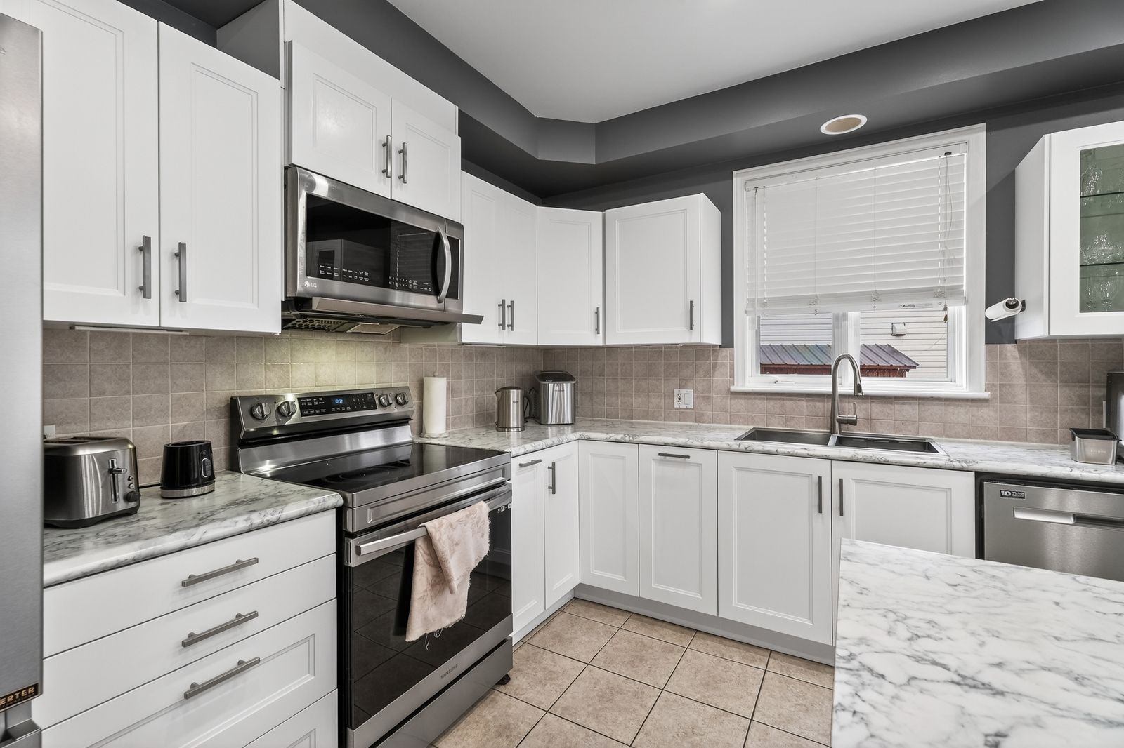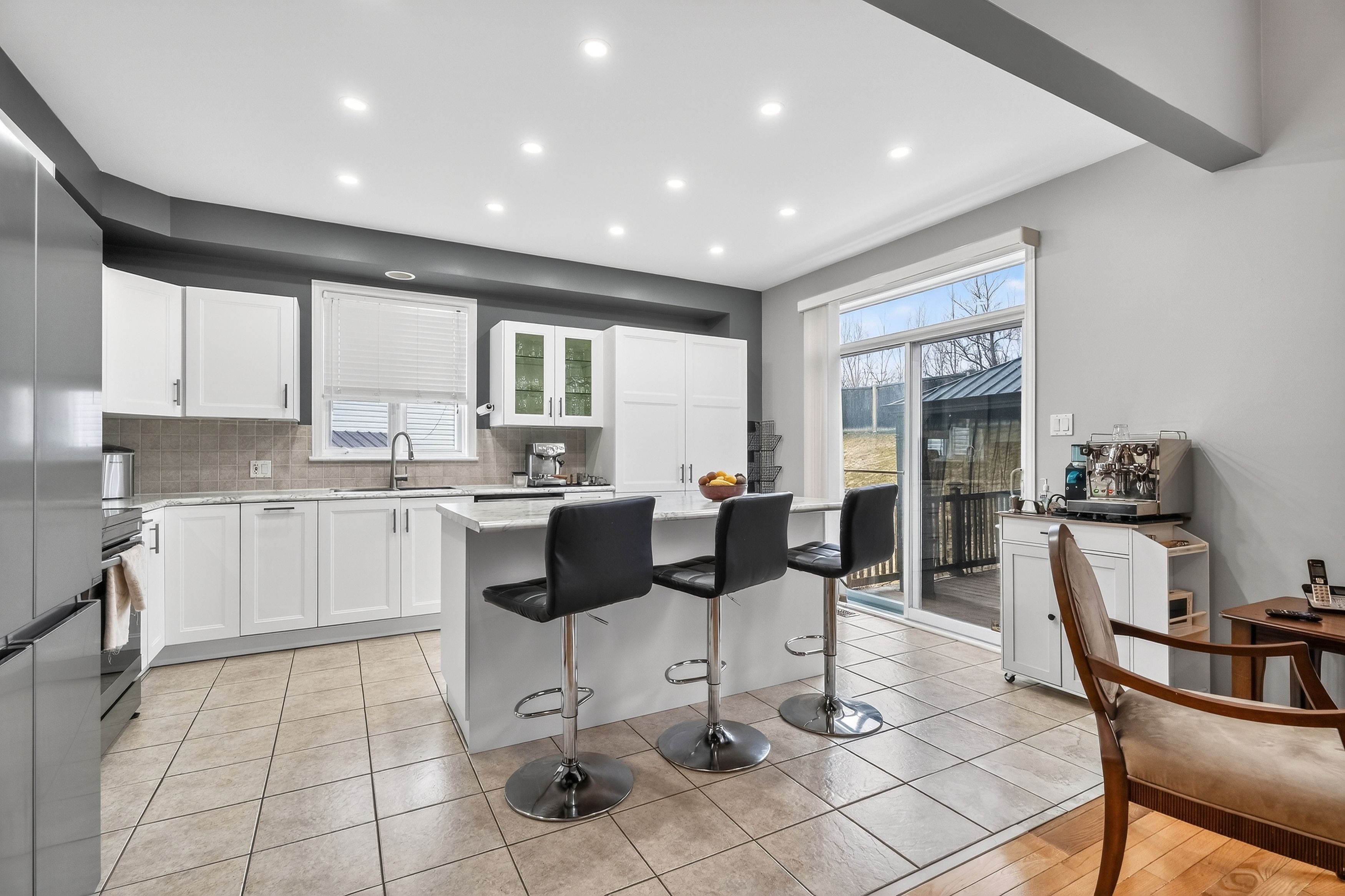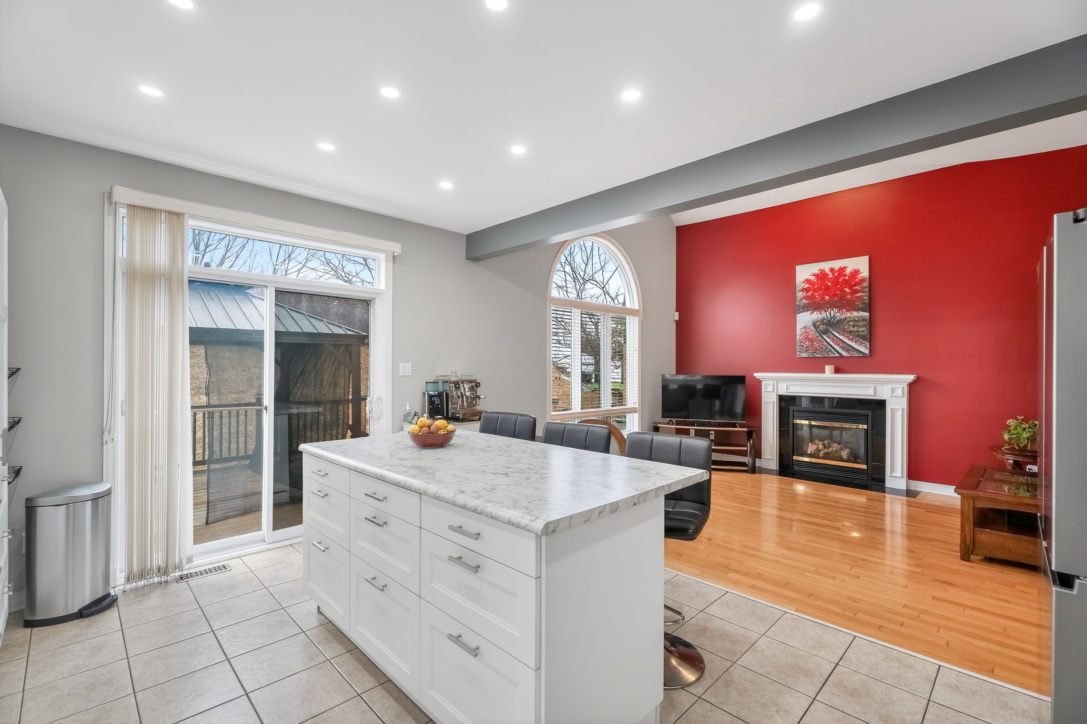 • Modernized kitchen opens to a large family room with a gas fireplace.