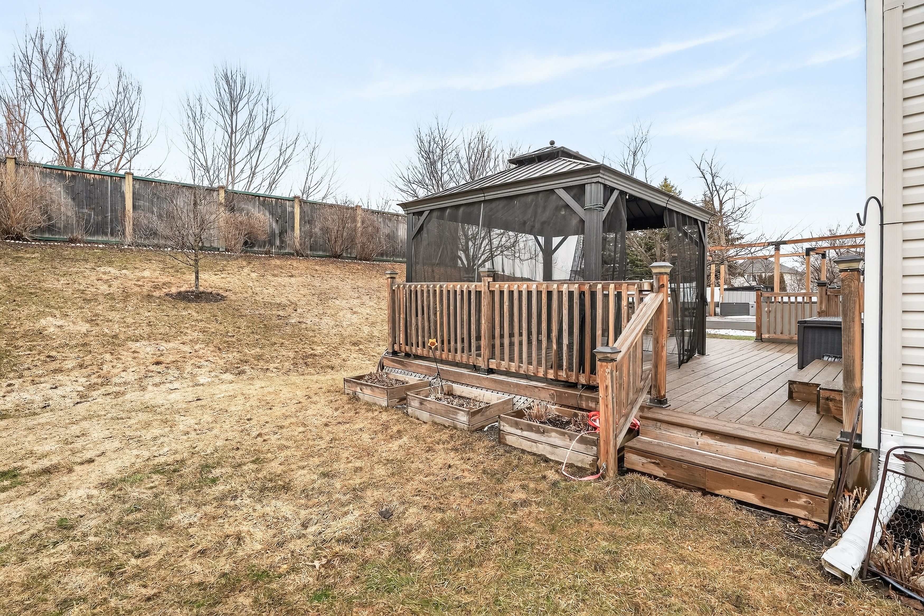 • Massive backyard with a two-tier deck and gazebo, perfect for outdoor fun.