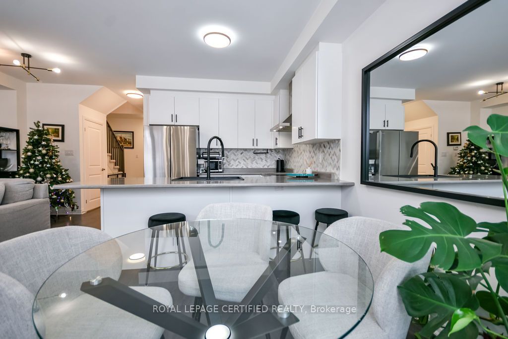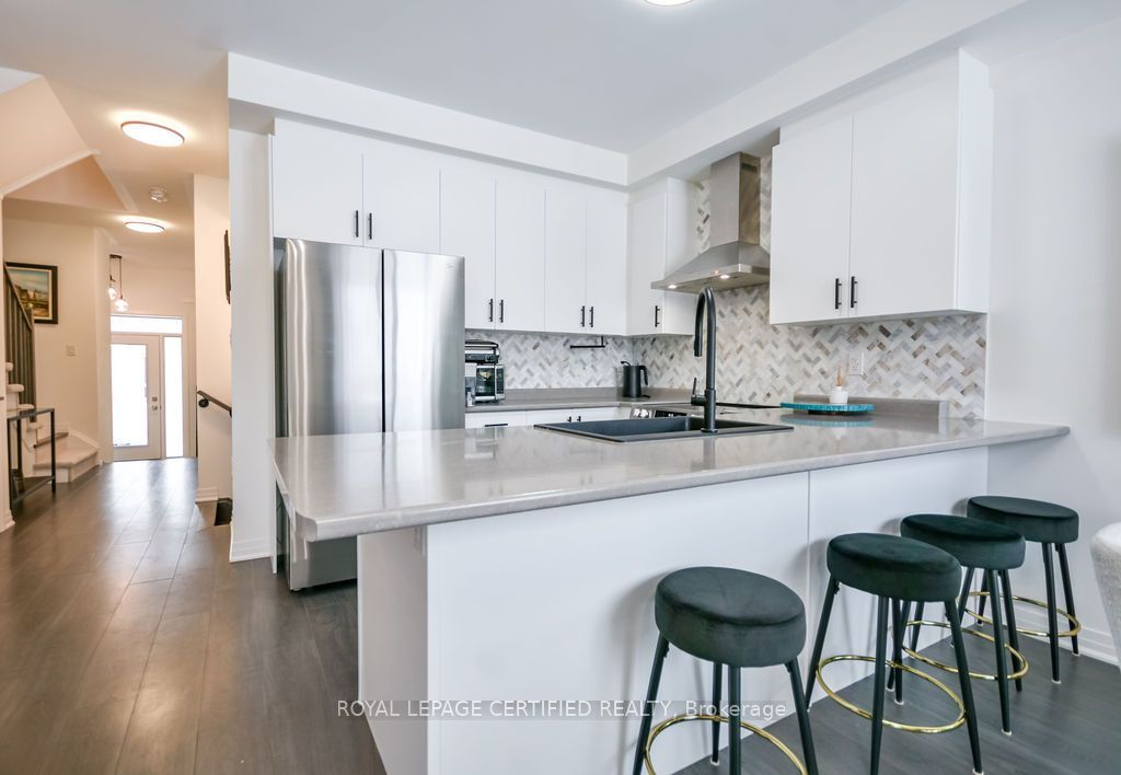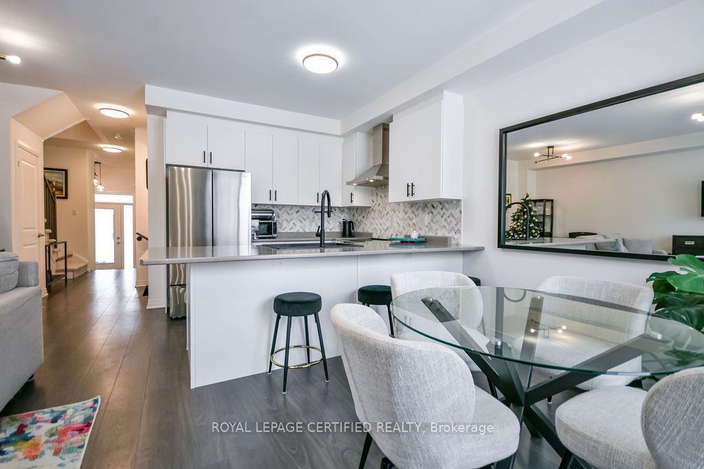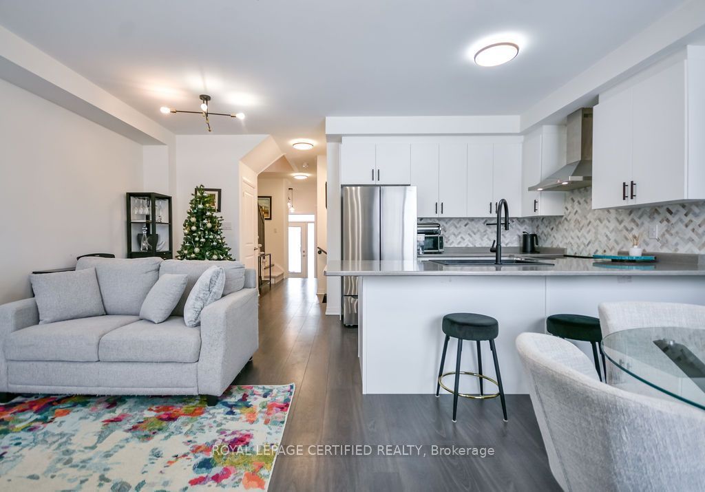 Welcome to 103 sagewood avenue, a beautifully designed 2024-built townhome in a highly desirable, family-friendly south barrie neighbourhood, offering a bright open-concept layout with stylish finishes, upgraded lighting, and neutral décor throughout. The main floor features a spacious eat-in kitchen with a large centre island, upgraded backsplash, and ample cabinetry, seamlessly flowing into the living and dining areas-perfect for everyday living and entertaining. Upstairs, the primary bedroom includes a walk-in closet and private ensuite, along with two additional bedrooms, a full bath, and convenient second-floor laundry. The unfinished basement with bathroom rough-in provides excellent future potential, while additional highlights include a single-car garage, driveway parking, an electric vehicle charging outlet at the front porch, and an exceptional location close to schools, parks, transit, barrie south go station, highway 400, shopping, dining, and year-round recreation at lake simcoe.