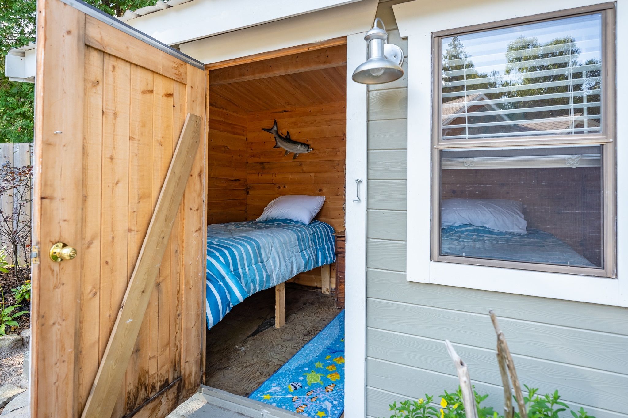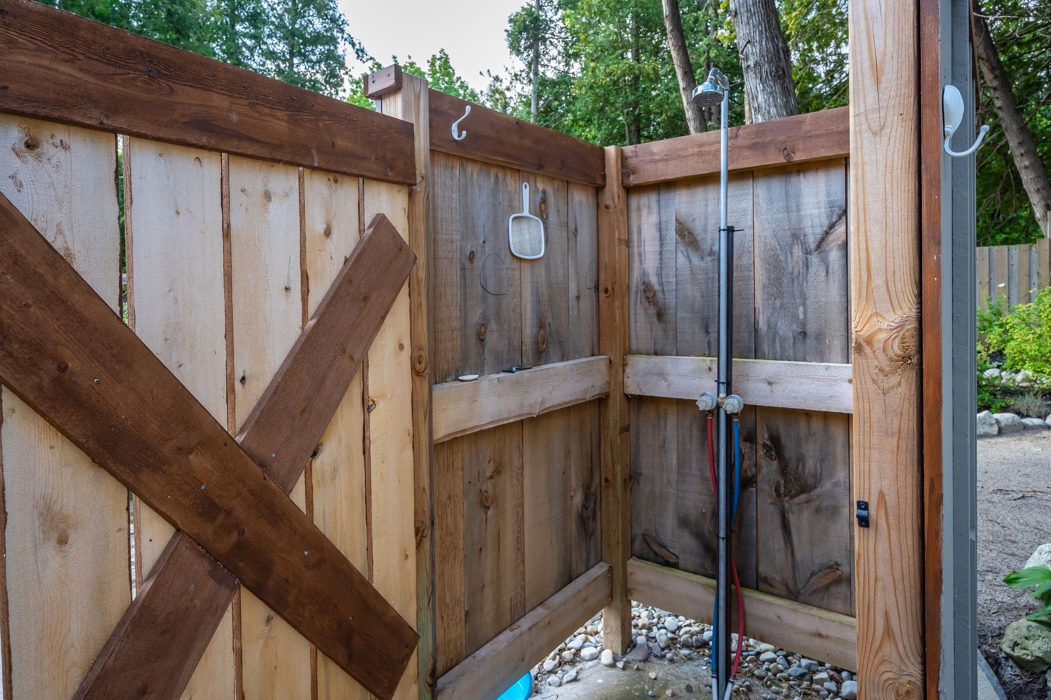• Oversized garage/workshop, bunkie, and outdoor shower for added convenience.