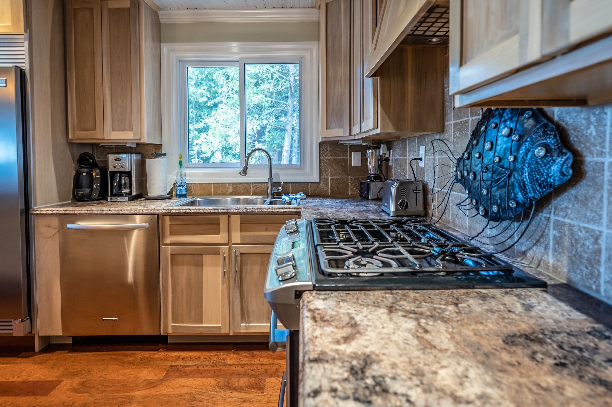Subtype DetachedIndoor Features Auto Garage Door Remote, Carpet Free, Primary Bedroom - Main Floor, Water Heater Owned, WorkbenchOutdoor Features Landscaped, Patio, Privacy, Year Round Living, Recreational AreaOwnership FreeholdViews Beach, Creek/Stream, Lake, Trees/Woods, WaterWaterfront DirectBasement Crawl SpaceFoundation Concrete, PiersHeating / Cooling Forced AirHeating Fuel GasSewer Septic