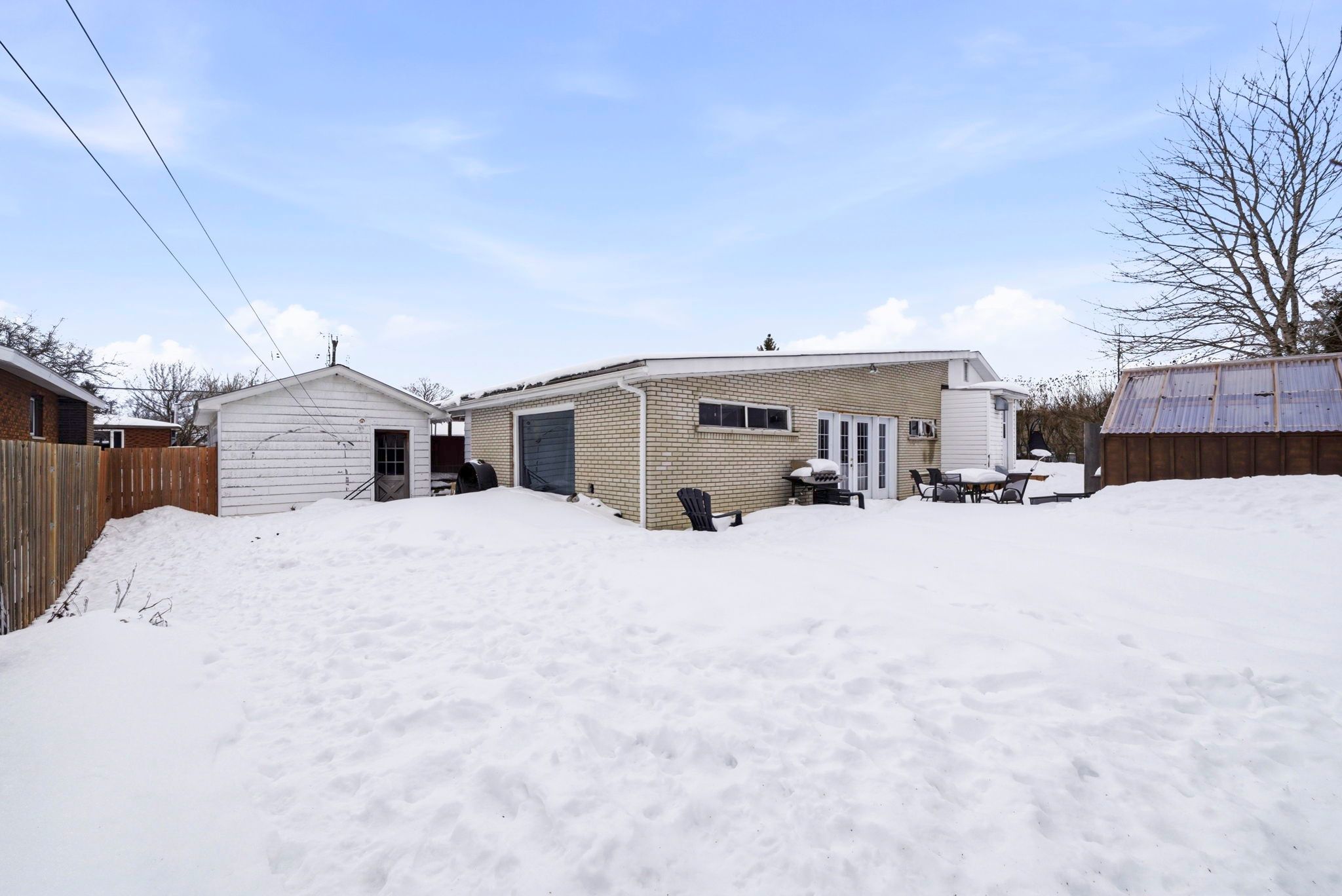 • Large fenced yard with hot tub, garage, and carport.