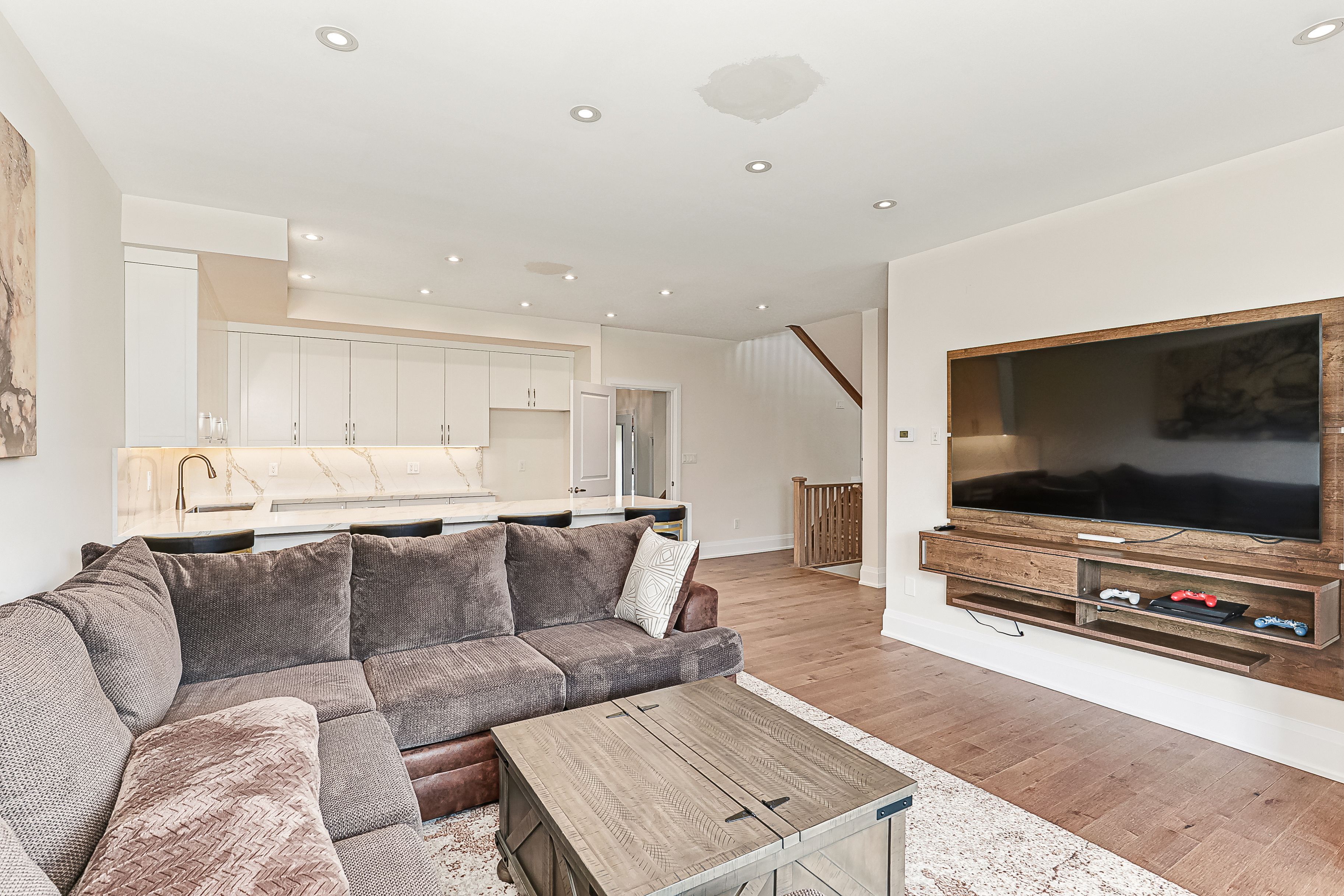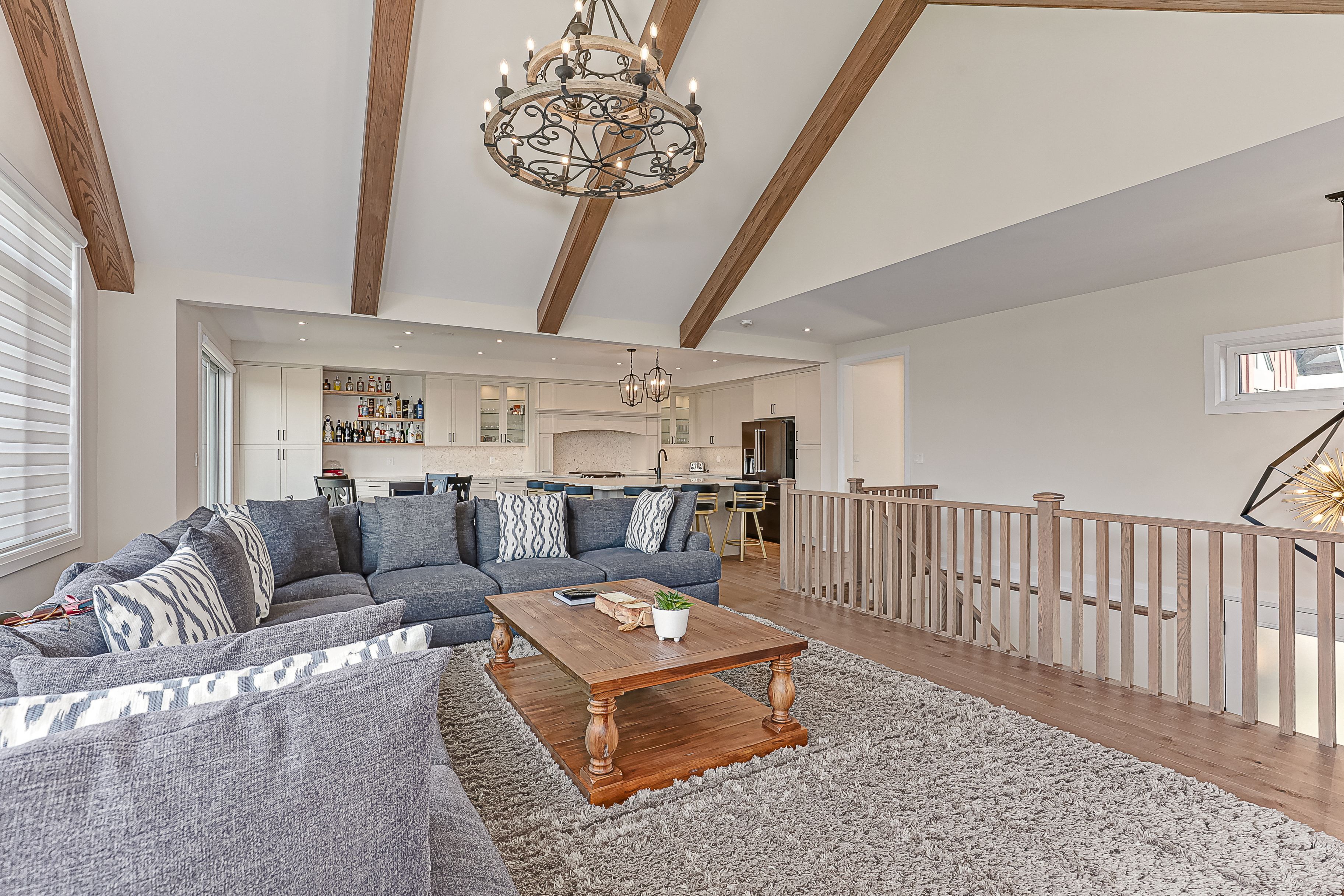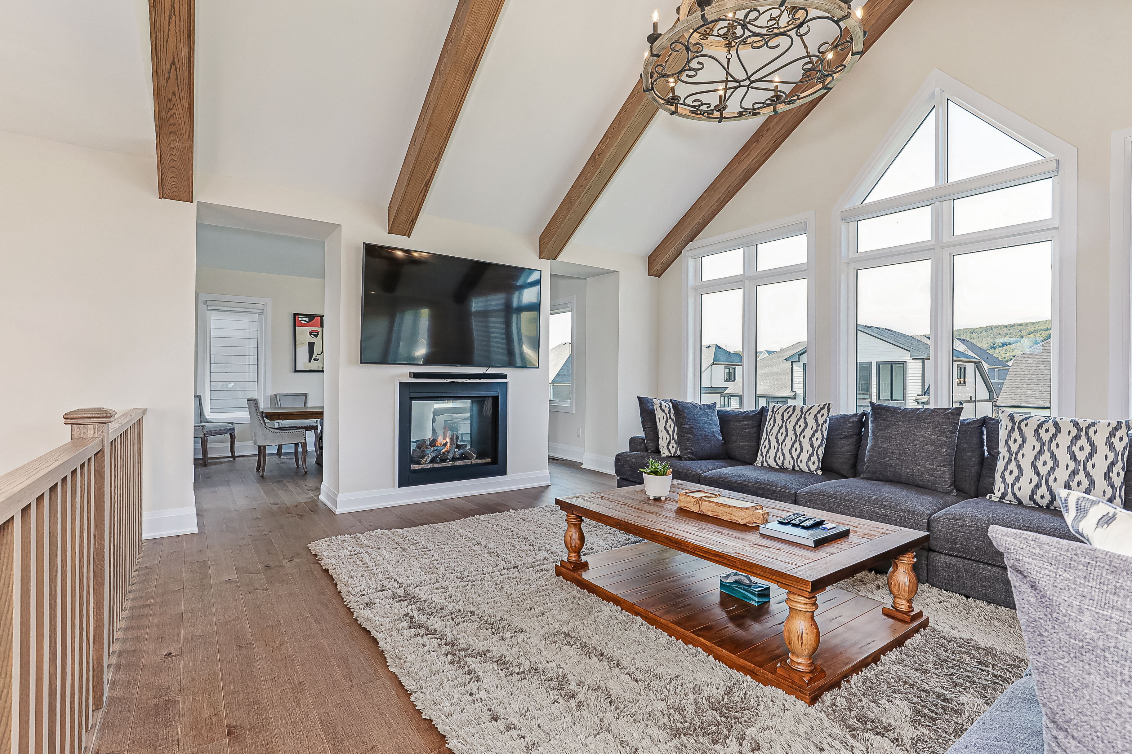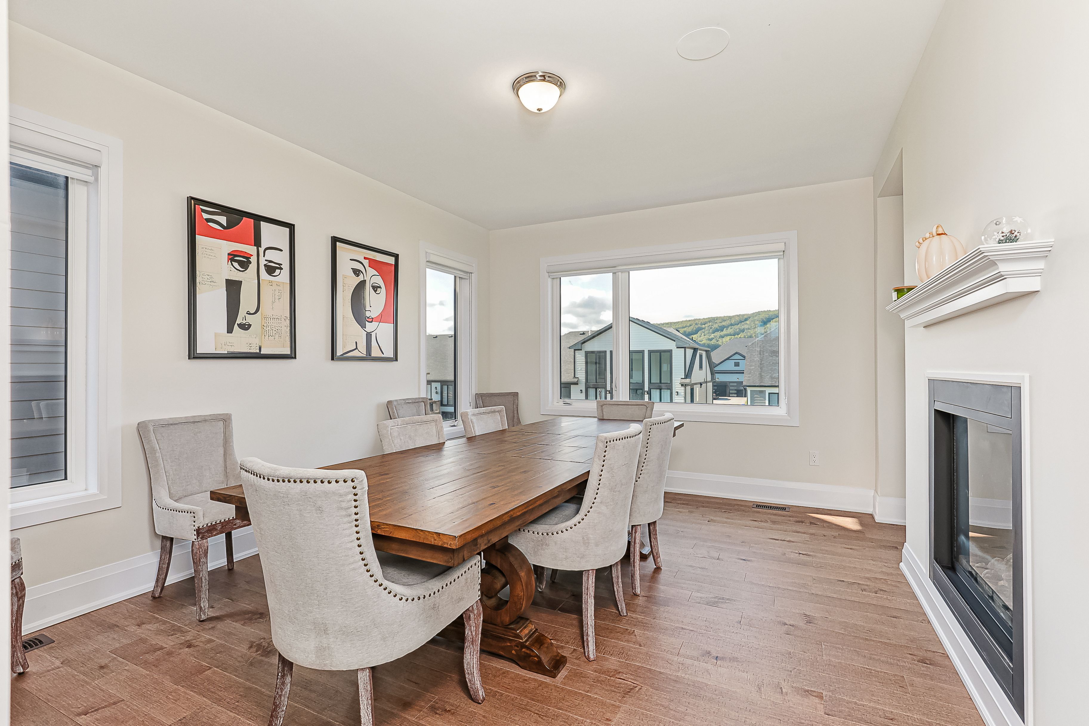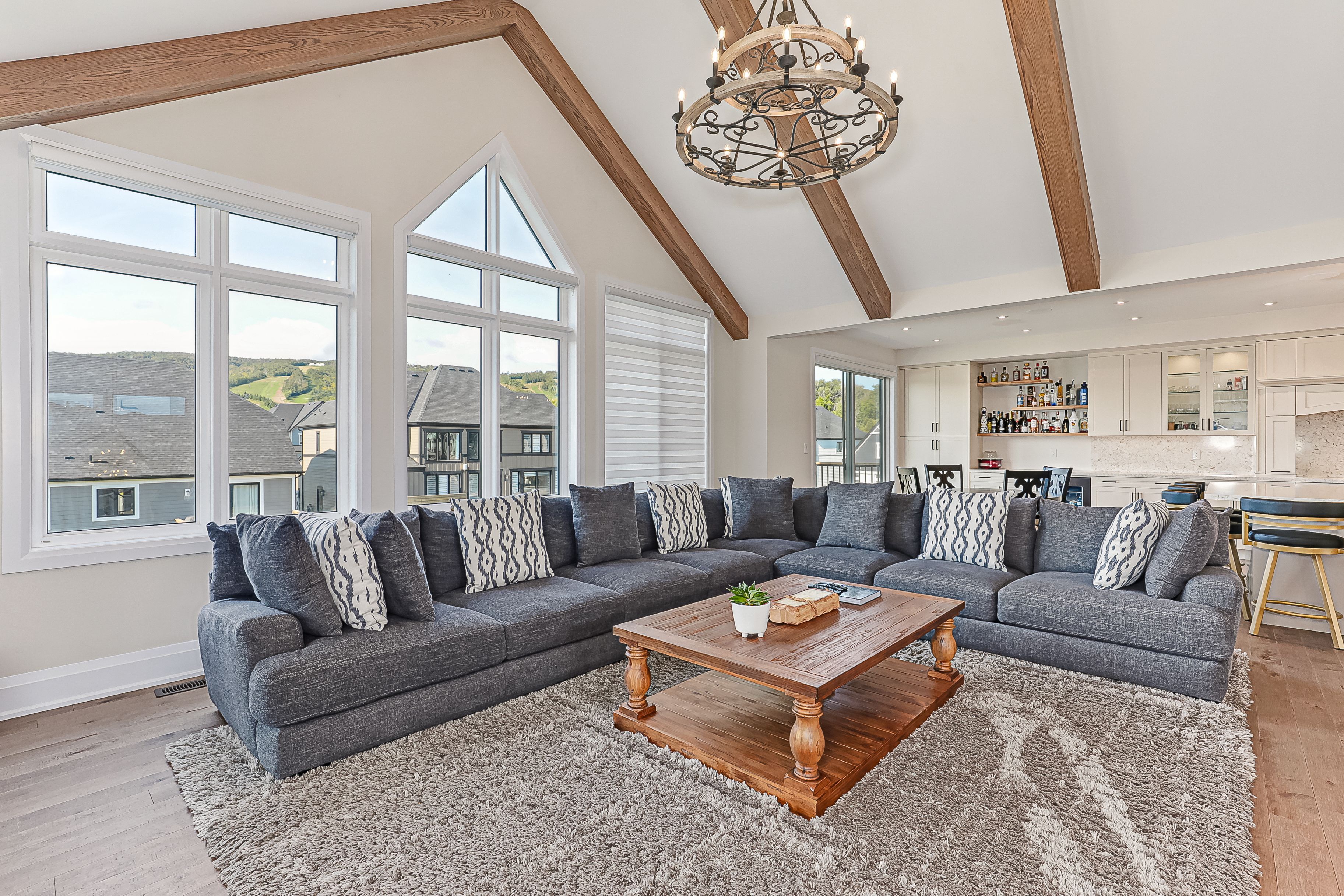 Set in the heart of ontario's premier four-season playground, this exceptional seven-bedroom residence delivers effortless living & year-round adventure. Just steps from the village at blue, monterra golf, & the ski hills, this turnkey, move-in-ready home provides instant access to everything the blue mountains lifestyle offers, without the need for a single upgrade or renovation. When the snow falls, you're minutes from world-class skiing, snowshoeing, & après-ski at the village. After a day on the slopes, return to a home designed for comfort & connection: soaring ceilings in the great room showcase stunning mountain views, & a dramatic two-sided fireplace warms both the dining area & lounge, a perfect backdrop for winter gatherings. W/seven spacious bedrooms & five beautifully finished bathrooms, there's ample room for family & guests to settle in & unwind. As the seasons change, so does your playground. Georgian bay's sparkling shoreline invites sailing, swimming, paddling, & kayaking all summer long. Fall brings colourful hiking & cycling trails right to your doorstep. Inside, the chef's kitchen flows effortlessly into bright, open living spaces, creating the ideal setting for everything from lively entertaining to quiet mornings w/ coffee & mountain views. The lower-level recreation room offers a cozy retreat for movie nights, games, or well-earned relaxation after a day outdoors. A two-car garage ensures convenience through every season, while the complimentary shuttle service provides easy access to the village, the ski hills, & select private amenities, including the exclusive blue mountain beach. Minutes from thornbury's acclaimed restaurants, boutiques, & marina & just two hours from toronto, this home embodies the best of four-season living. Here, the mountains meet the bay, adventure meets comfort, & every day feels like a holiday. Move in, unpack, & start living the lifestyle immediately. This is not just a home. It's a ready-made, year-round retreat.